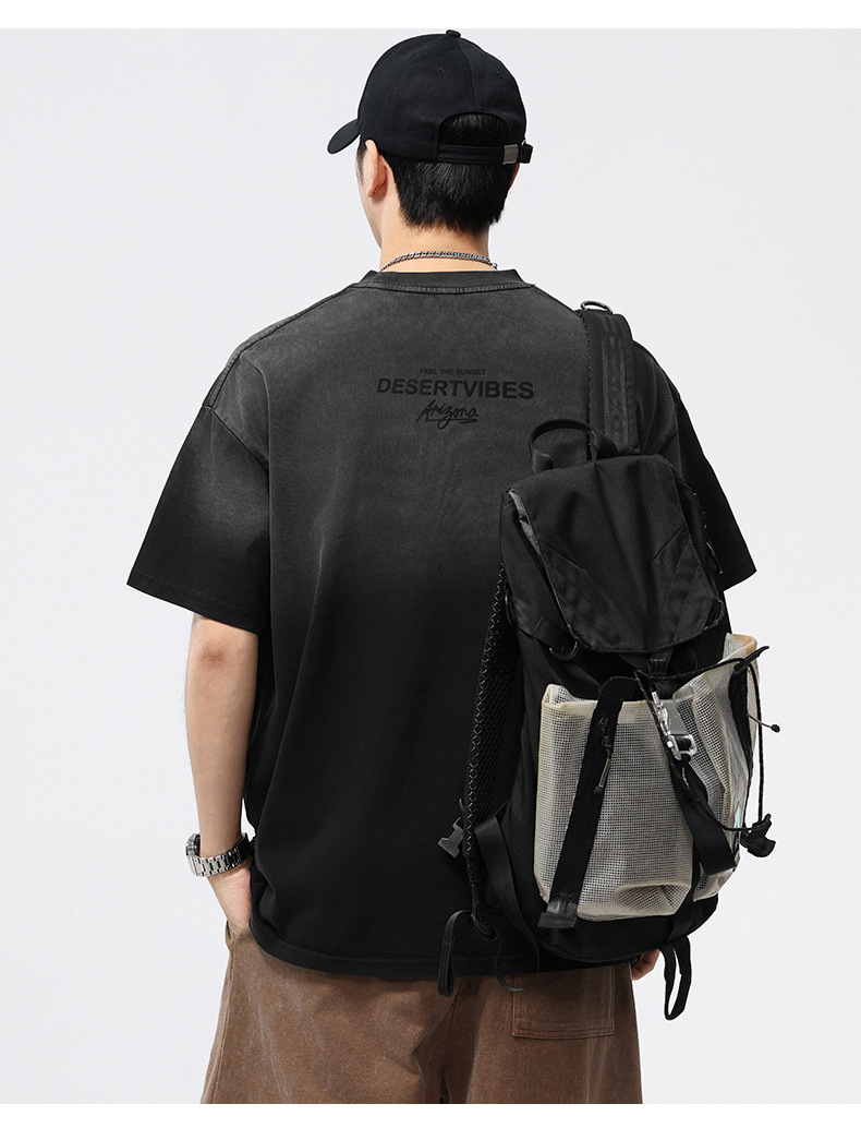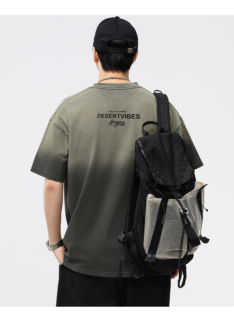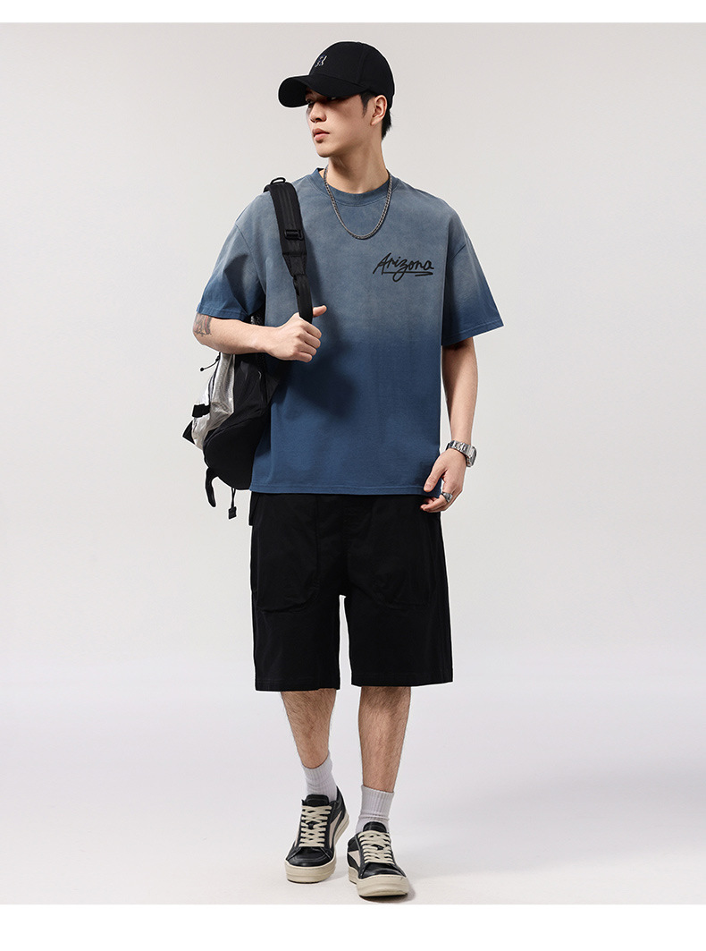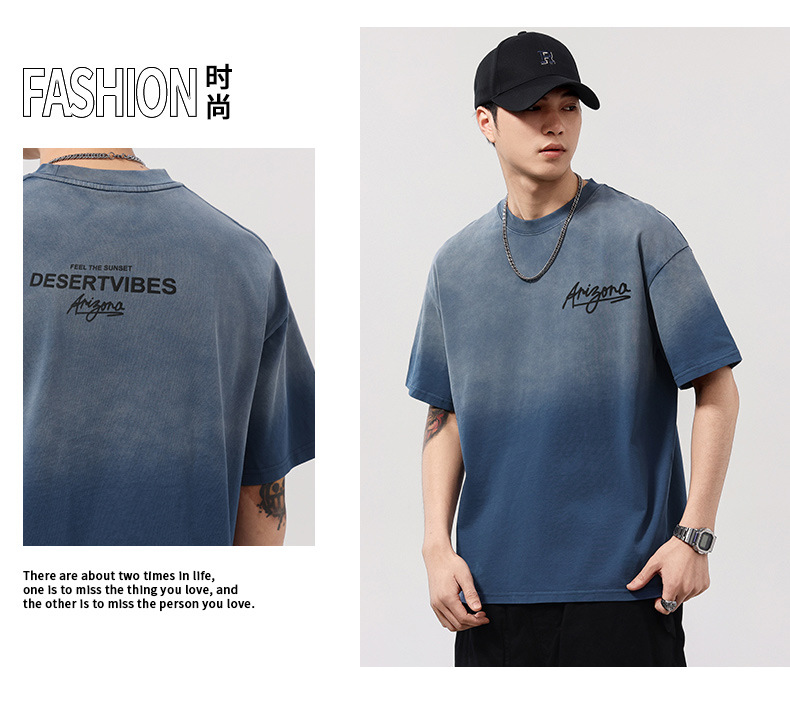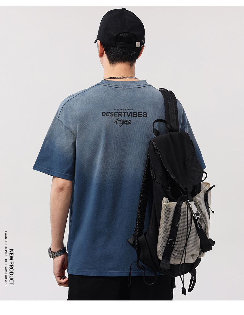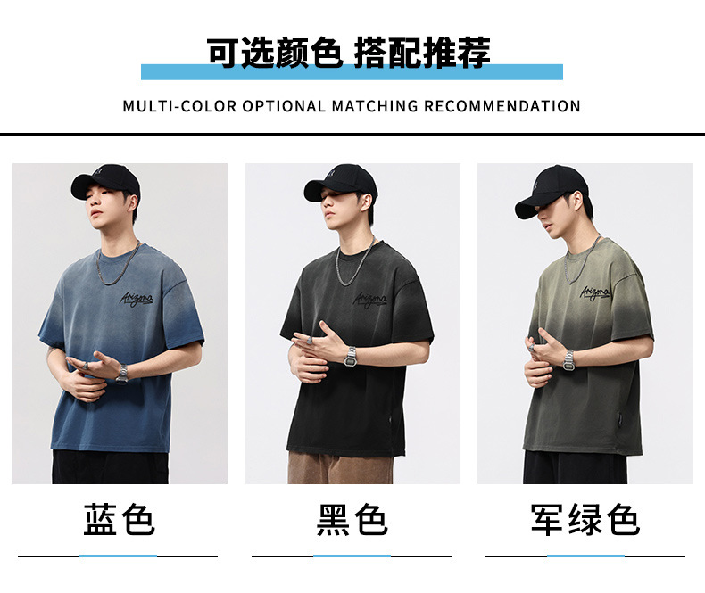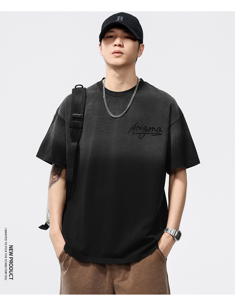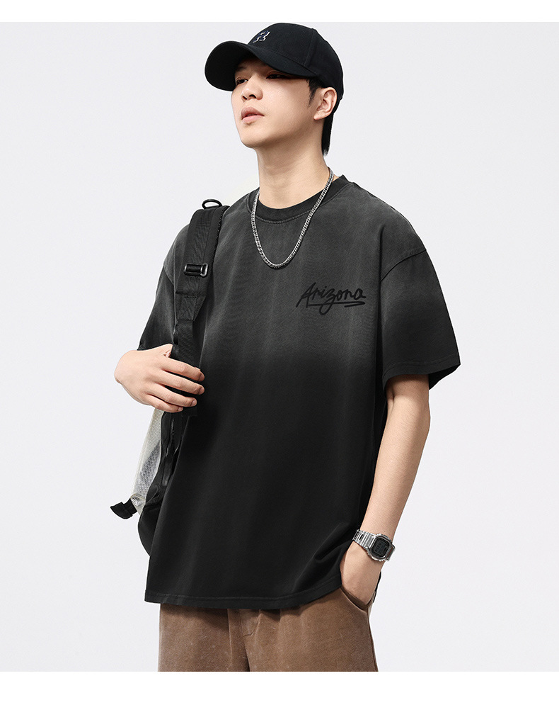 【100%棉】【DQ】大依优型大码男装染洗渐变圆领T恤男260G重磅宽松印花短袖半袖夏季新品上衣男士胖子潮流