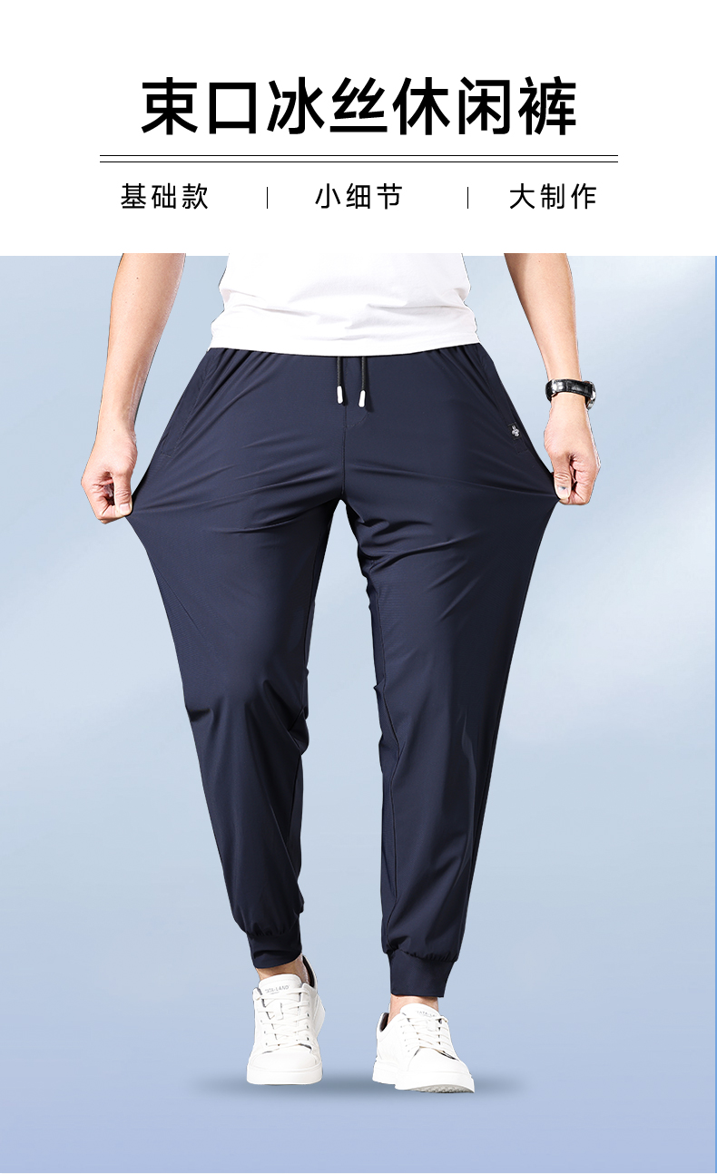 【新款DZP】大依优型大码夏季冰丝速干休闲裤束口运动长裤加肥加大弹力舒适男装