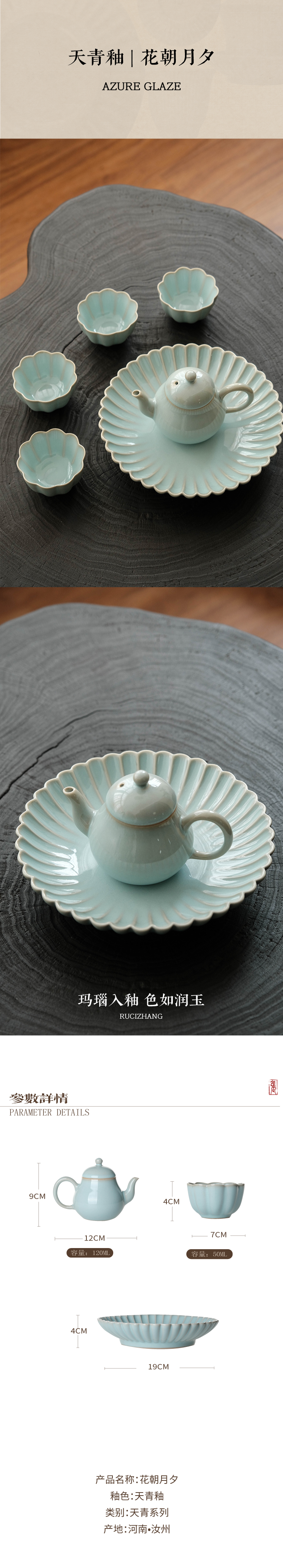 汝瓷 玛瑙天青釉 开片茶具花朝月夕套组 雅致