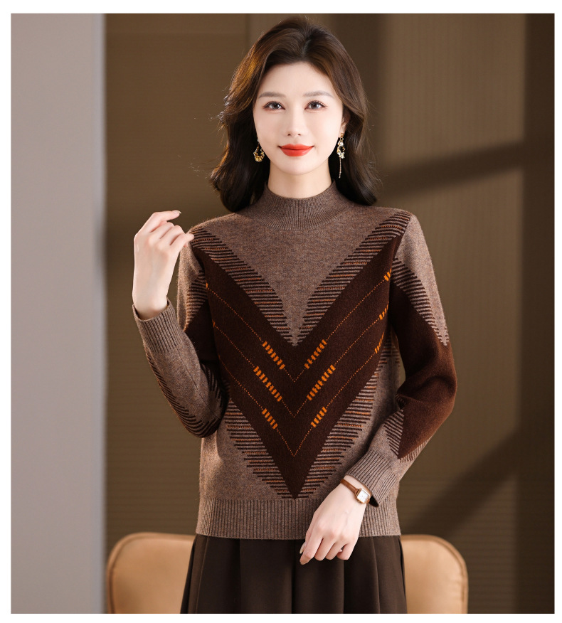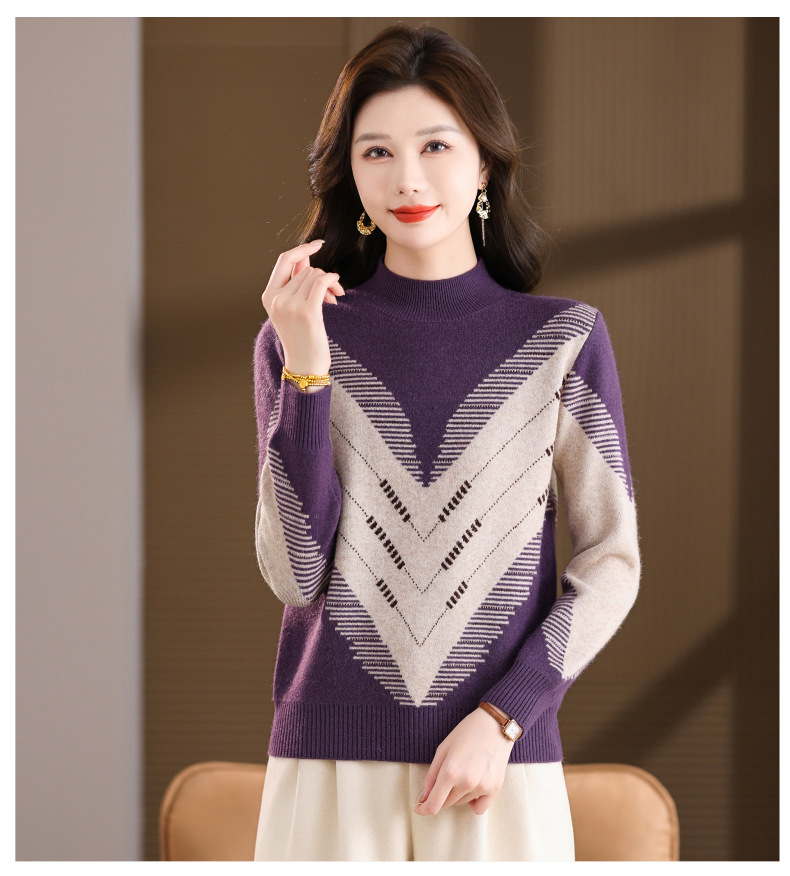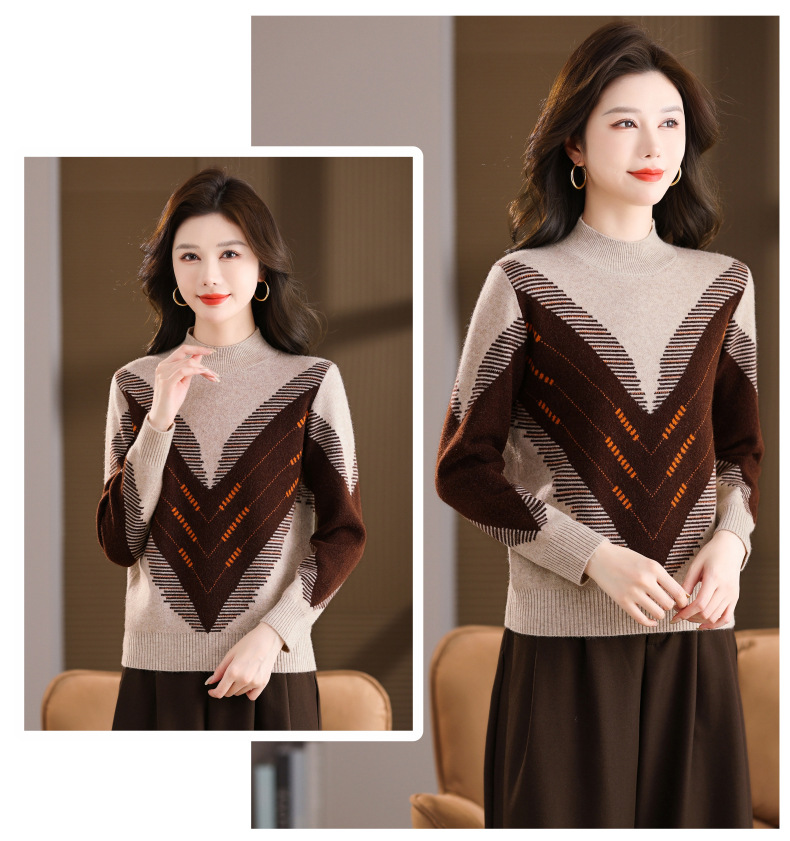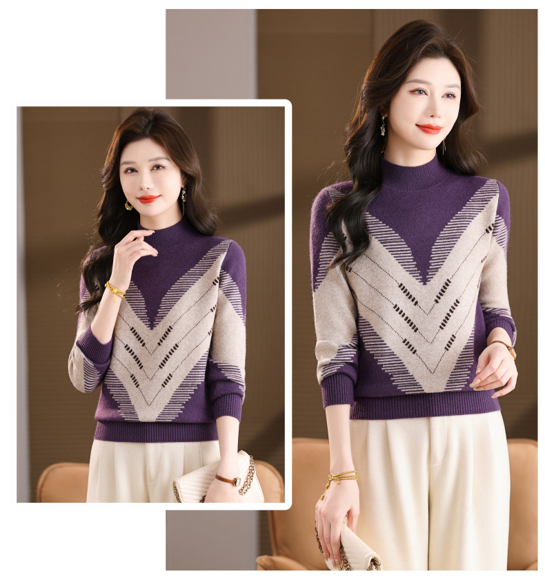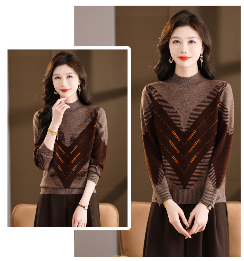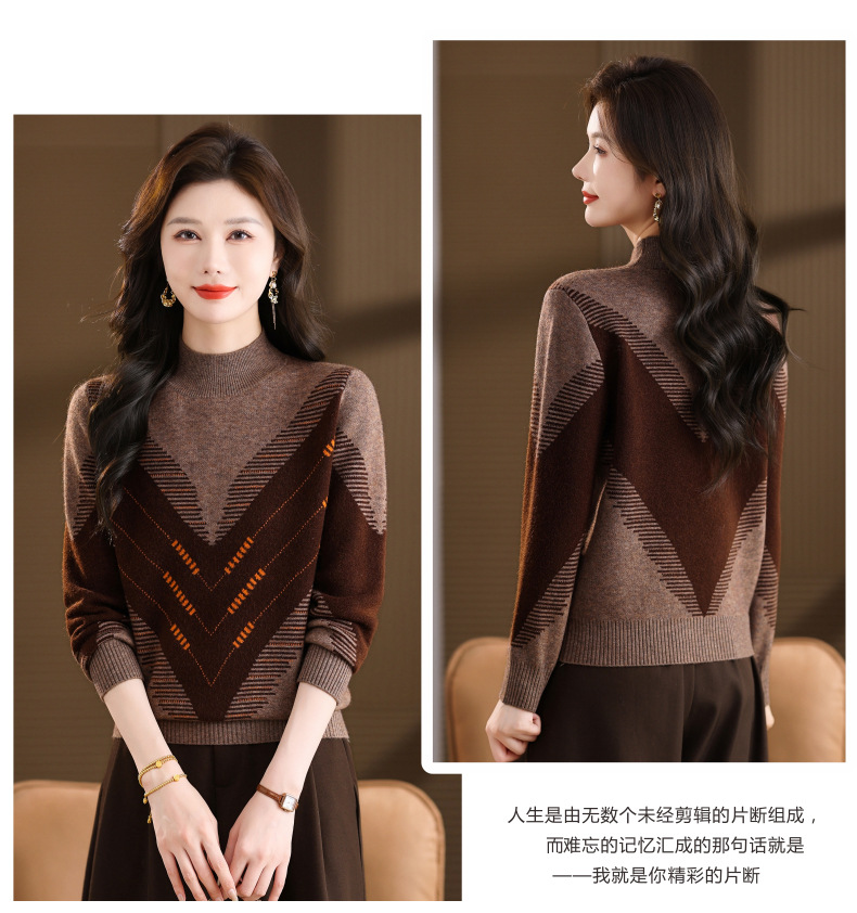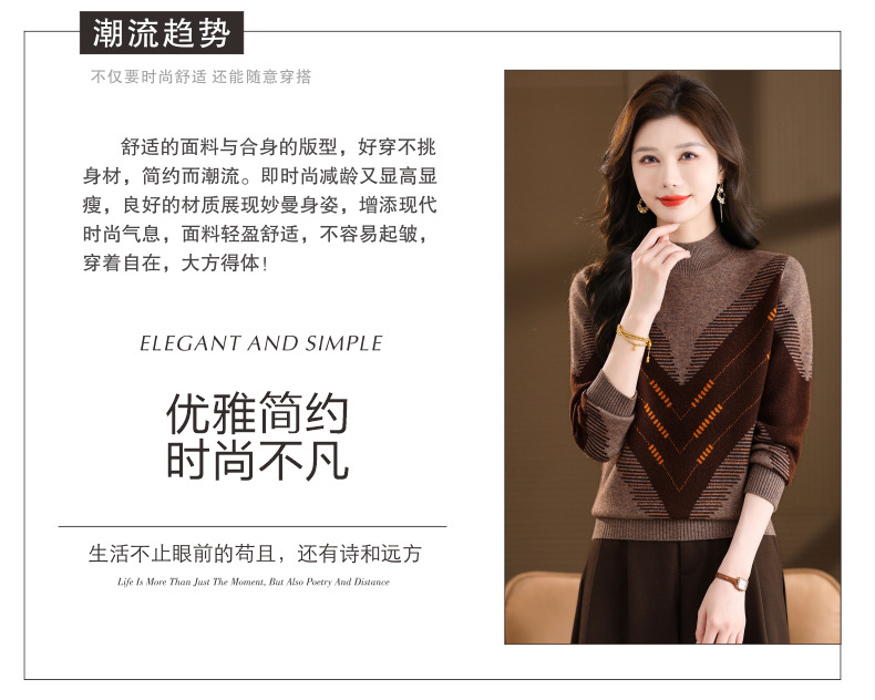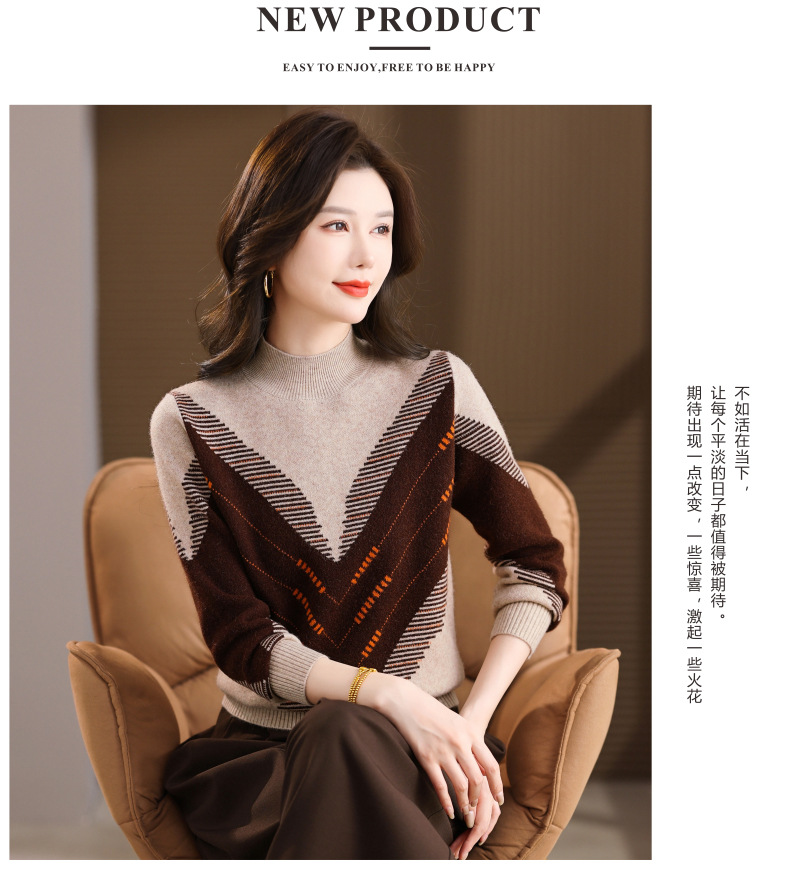 CC2025秋冬半高领撞色菱形提花毛衣女短款长袖针织衫保暖内搭打底衫