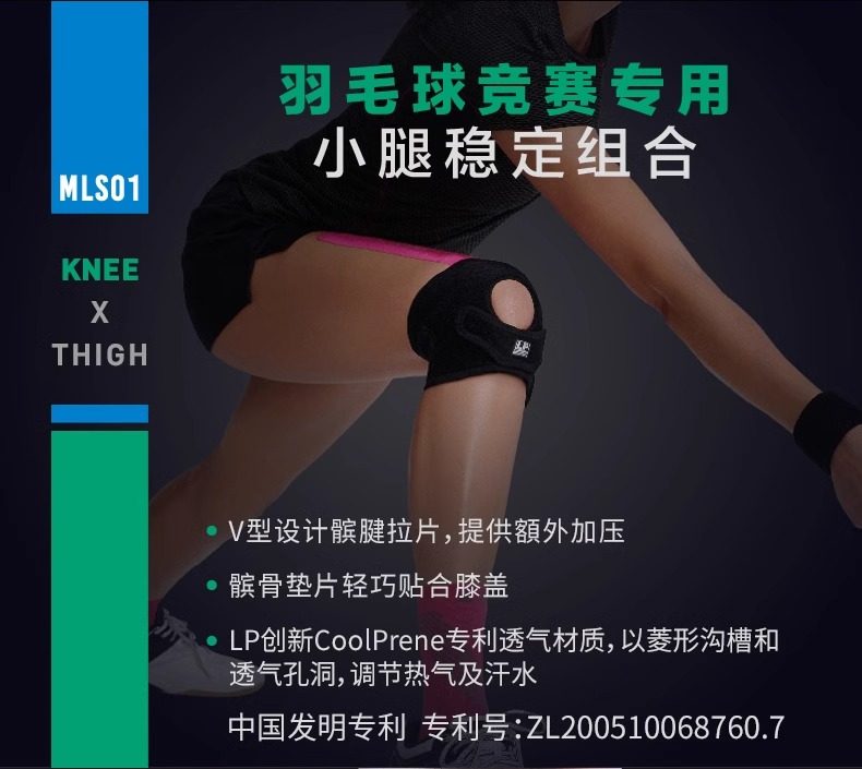LP 羽毛球专用运动护膝 髌骨加压防护可调式轻便护膝 MLS01