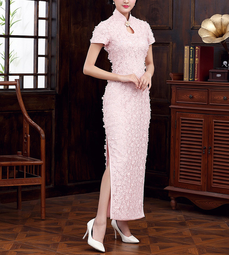 QC1697236春季新款新款改良时尚蕾丝立体花影视精品长款旗袍