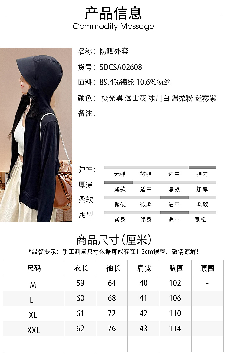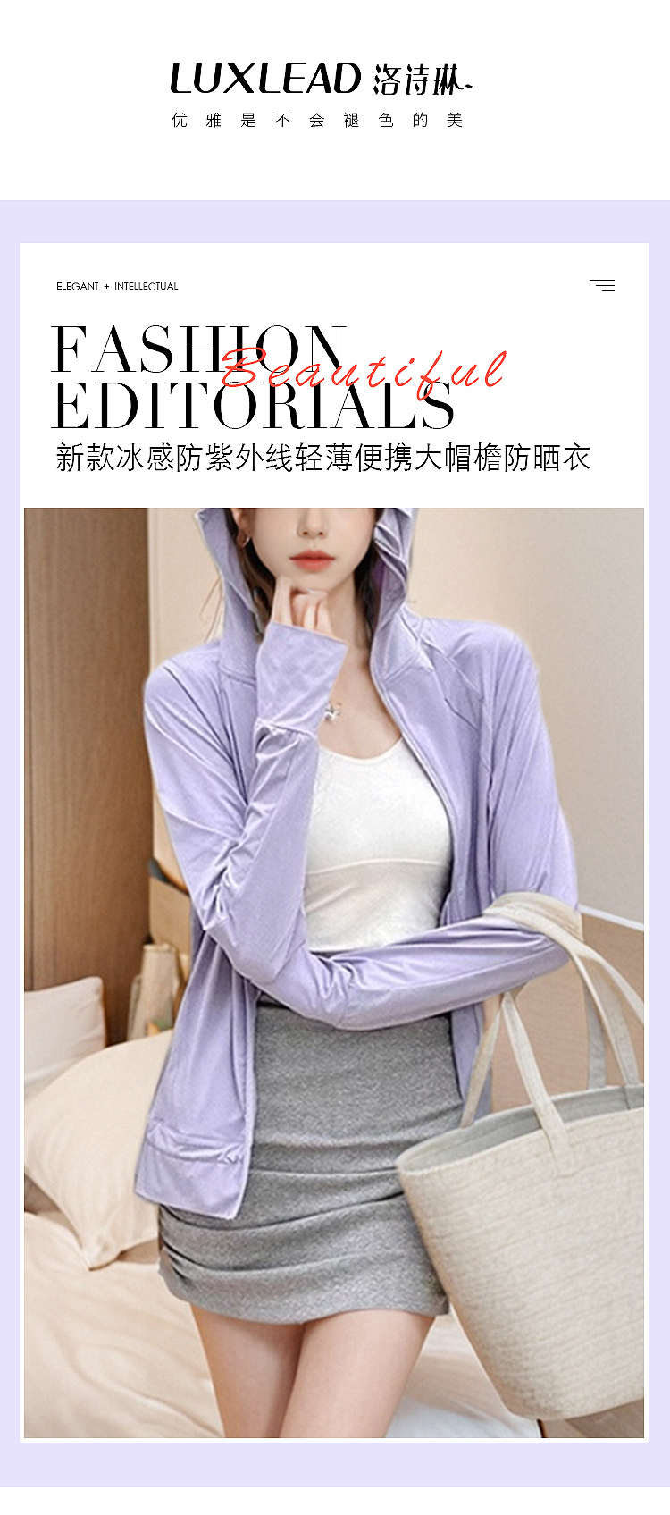 【洛诗琳福利款】【旗舰店同款249元 洛诗琳福利价99元 直降150元】洛诗琳黑胶大帽檐防晒衣2025户外原纱冰感防紫外线轻薄防晒服女02608