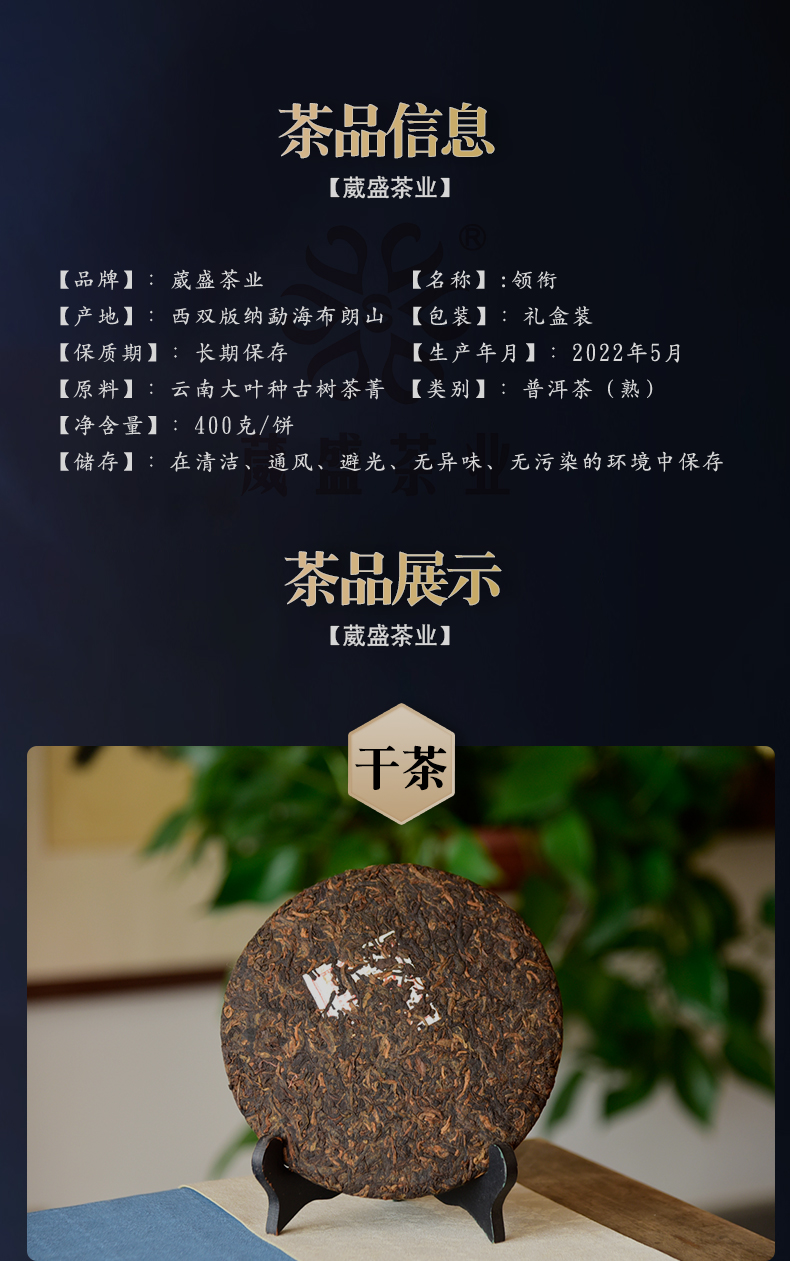 葳盛茶业2022年领衔·布朗山原味普洱熟茶400g