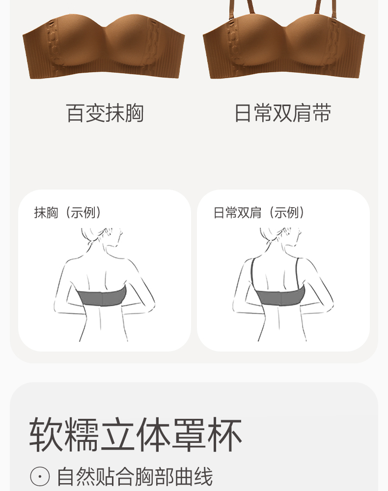 芬腾女抹胸内衣上托光面防滑收副乳文胸性感舒适无肩带无钢圈胸罩