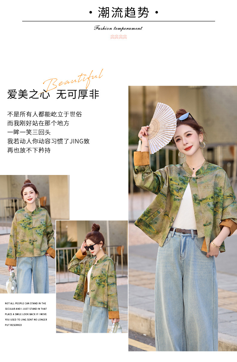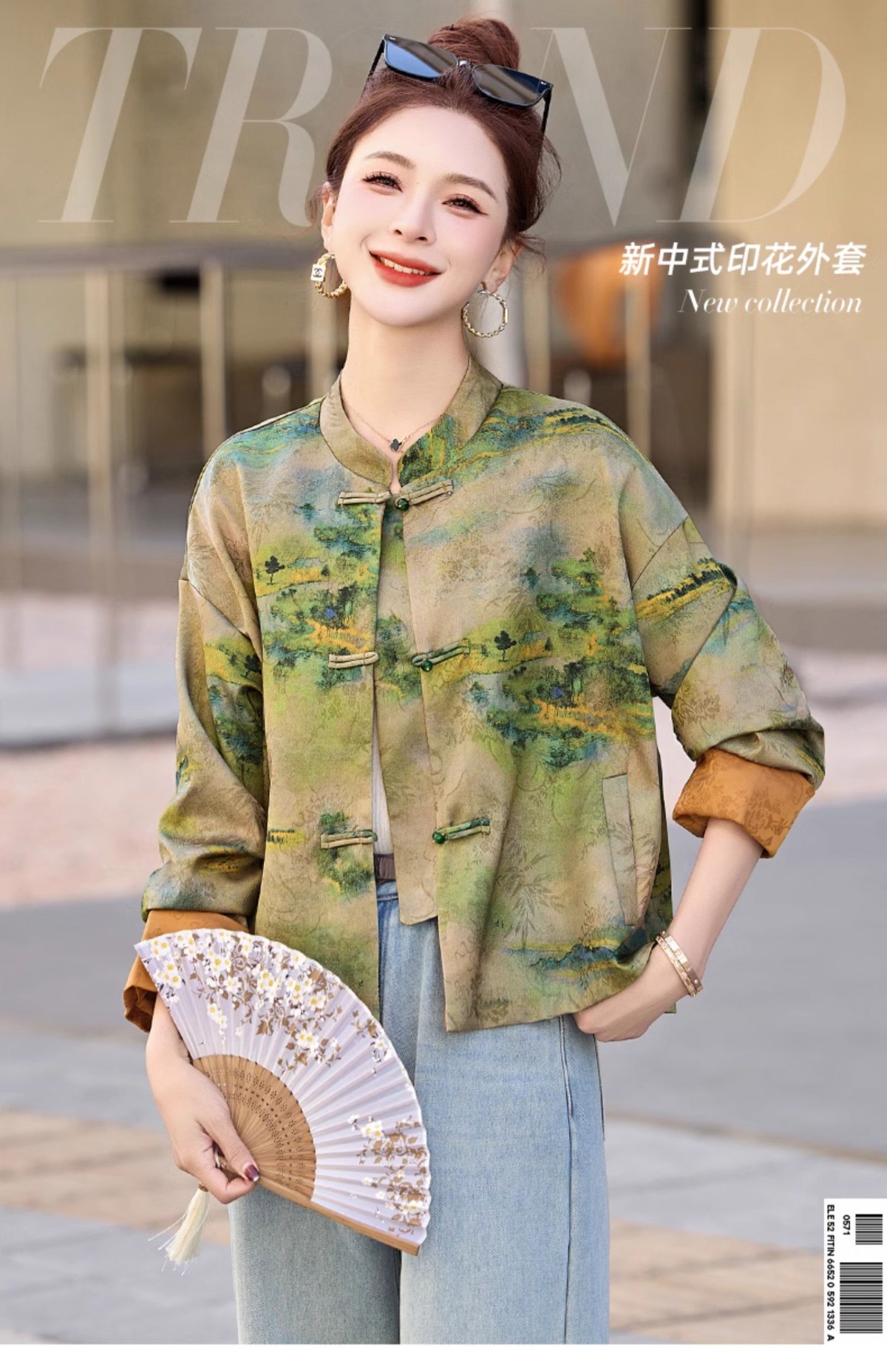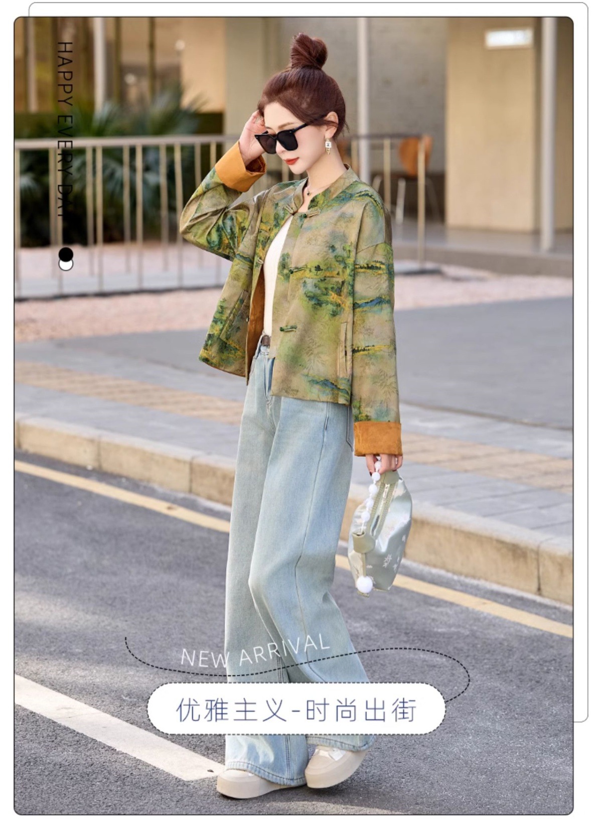 新中式国风外套,高级感气质显瘦短款印花唐装上衣HR-BBL2503
