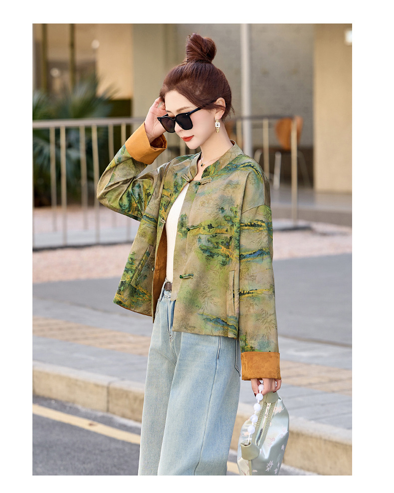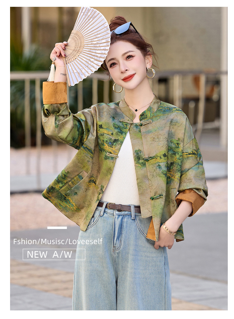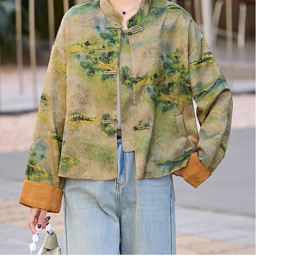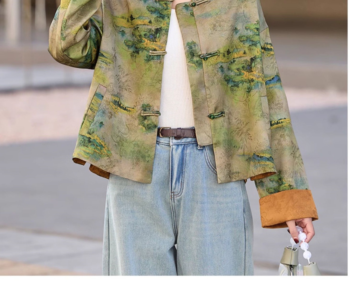 新中式国风外套,高级感气质显瘦短款印花唐装上衣HR-BBL2503