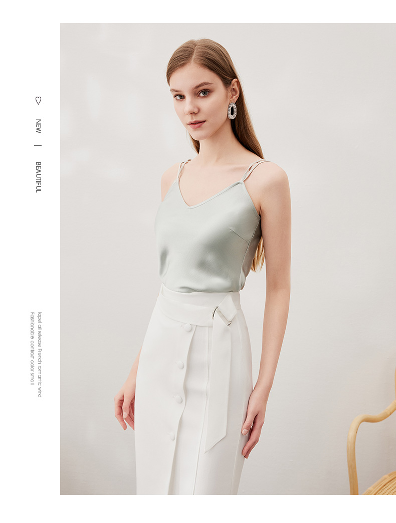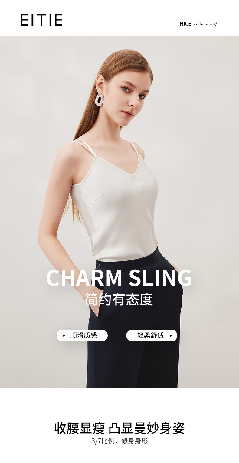 EITIE爱特爱夏季新款V领雪纺显瘦舒适内搭背心吊带小上衣7013703