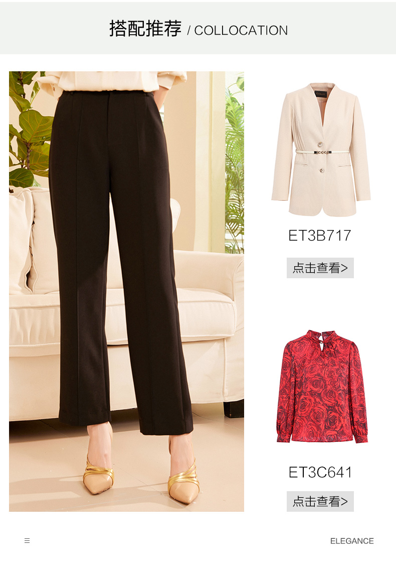 乔万尼秋新款休闲裤黑色直筒西裤ET3F627