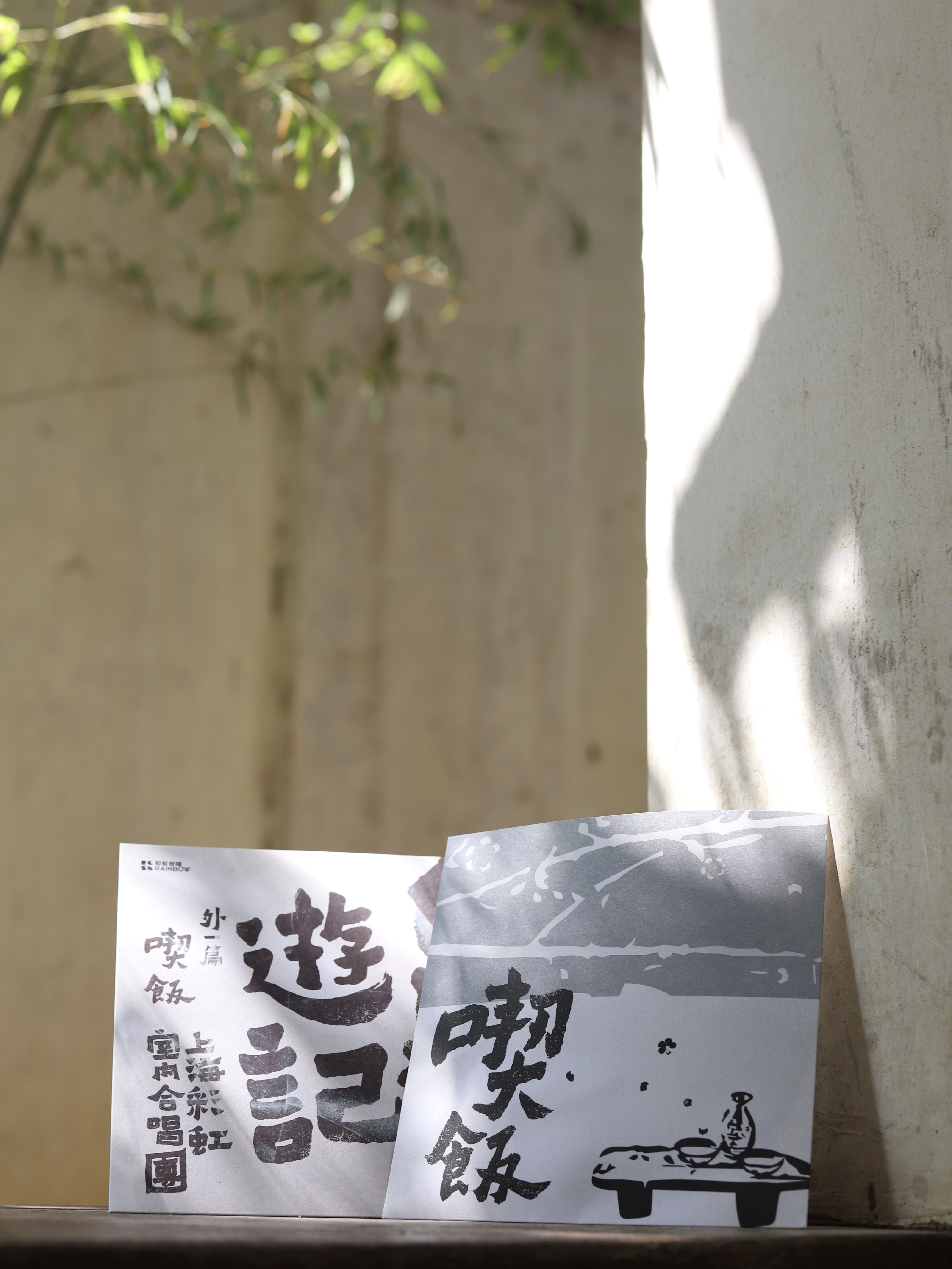 与《白马村游记》唱片一样,《吃饭》沿用民国碑派书法体作为主要视觉元素,“略不规整”的字体与民国“丧系”青年顾远山的经年一梦相互应和,并配合民国大师丰子恺风格的插画。