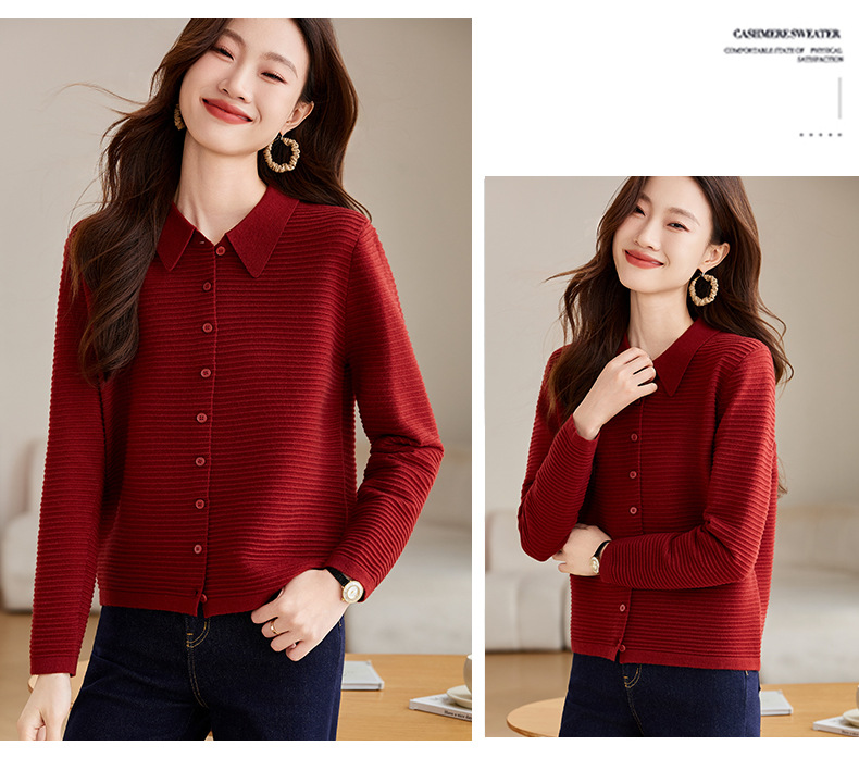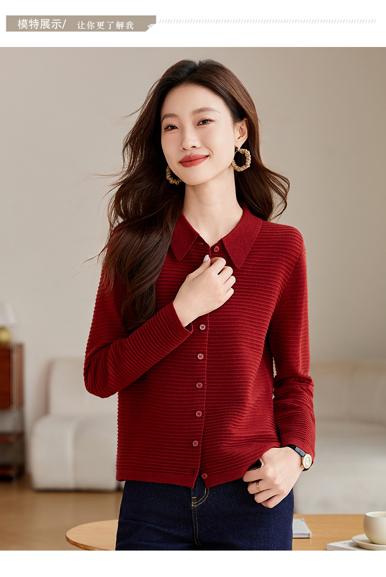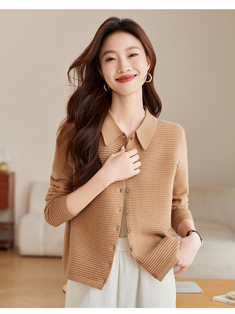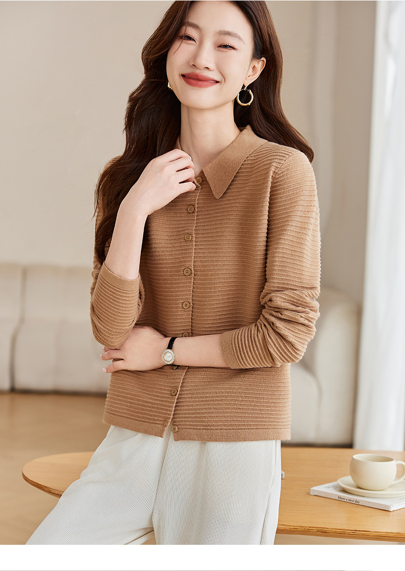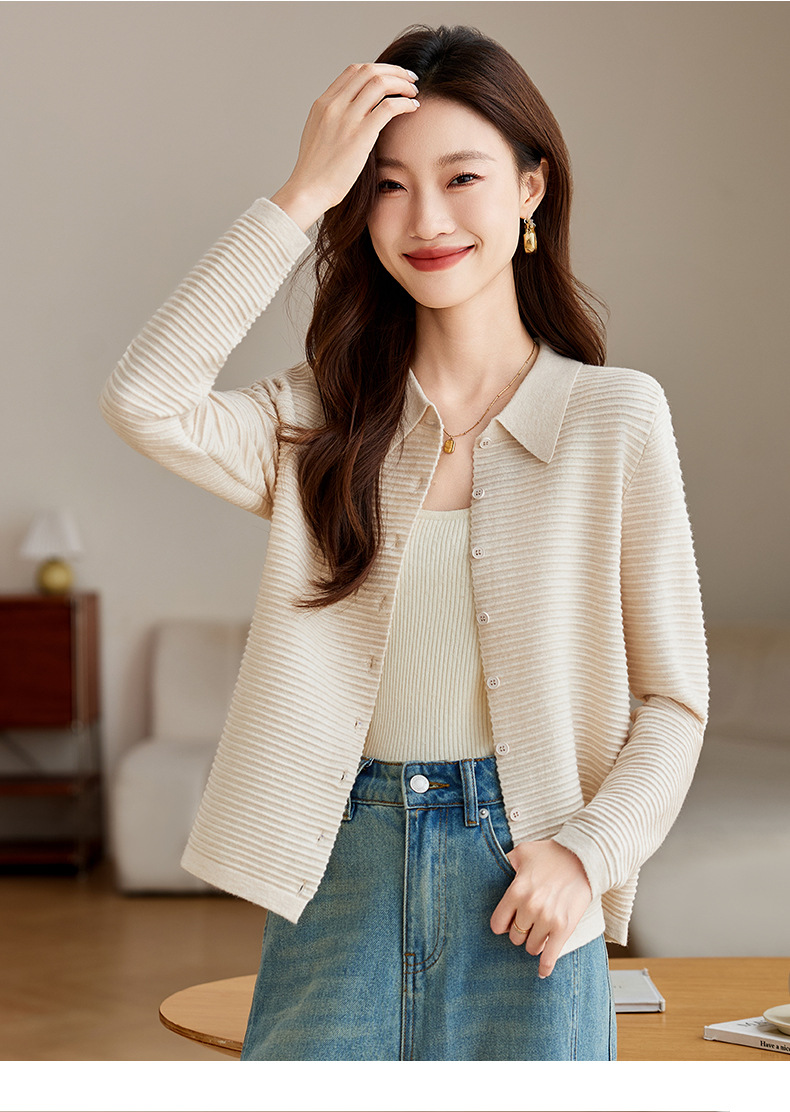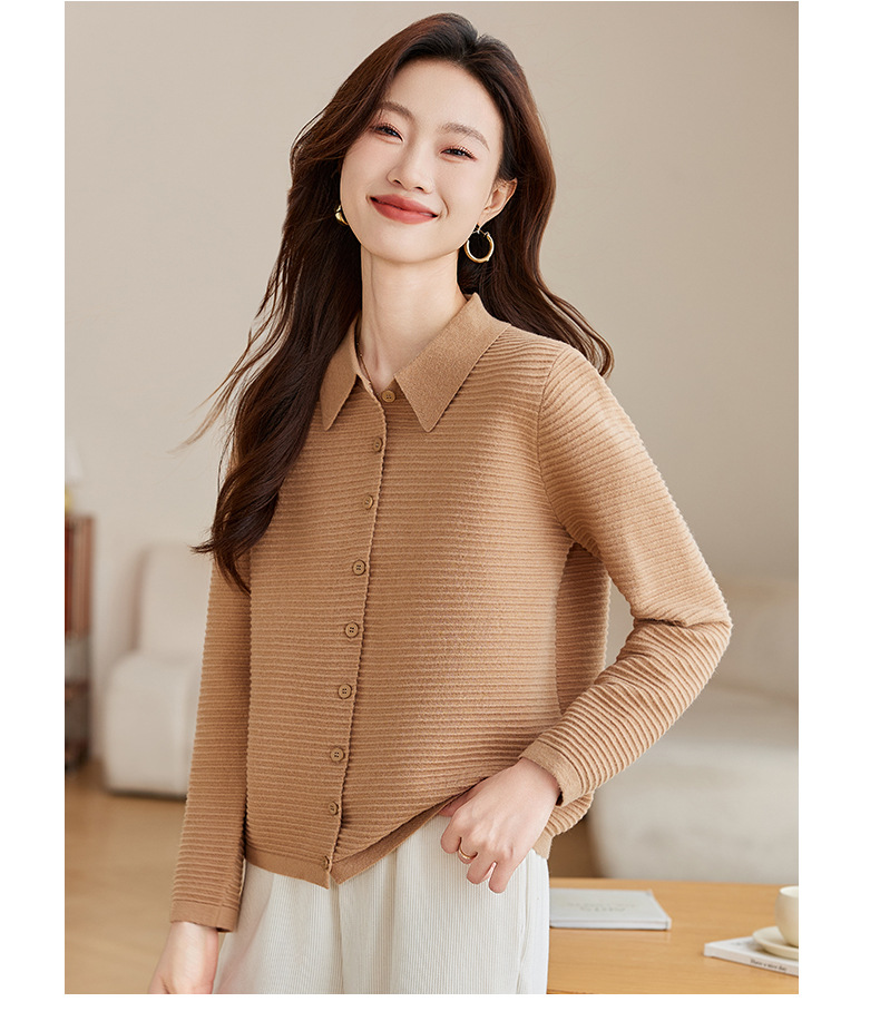 衬衫领毛衣外套短款,设计感别致长袖针织开衫CCJ982