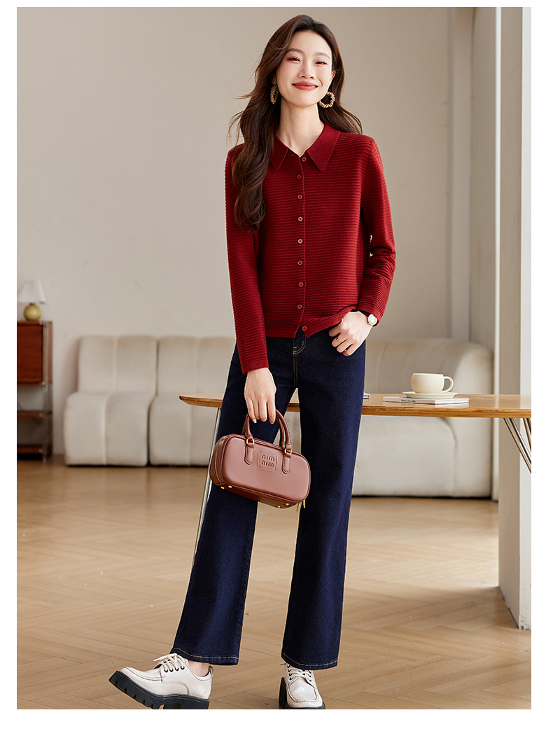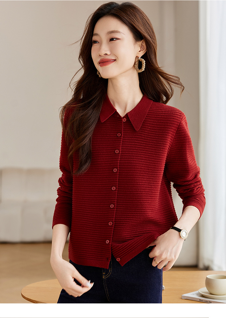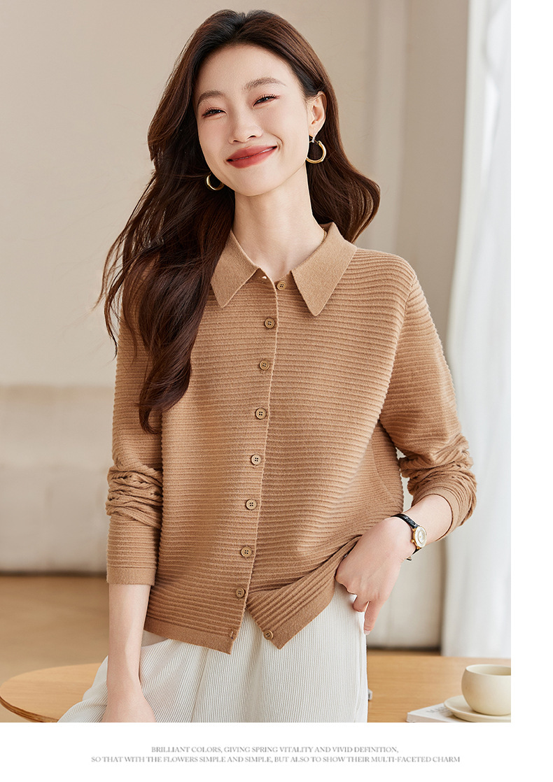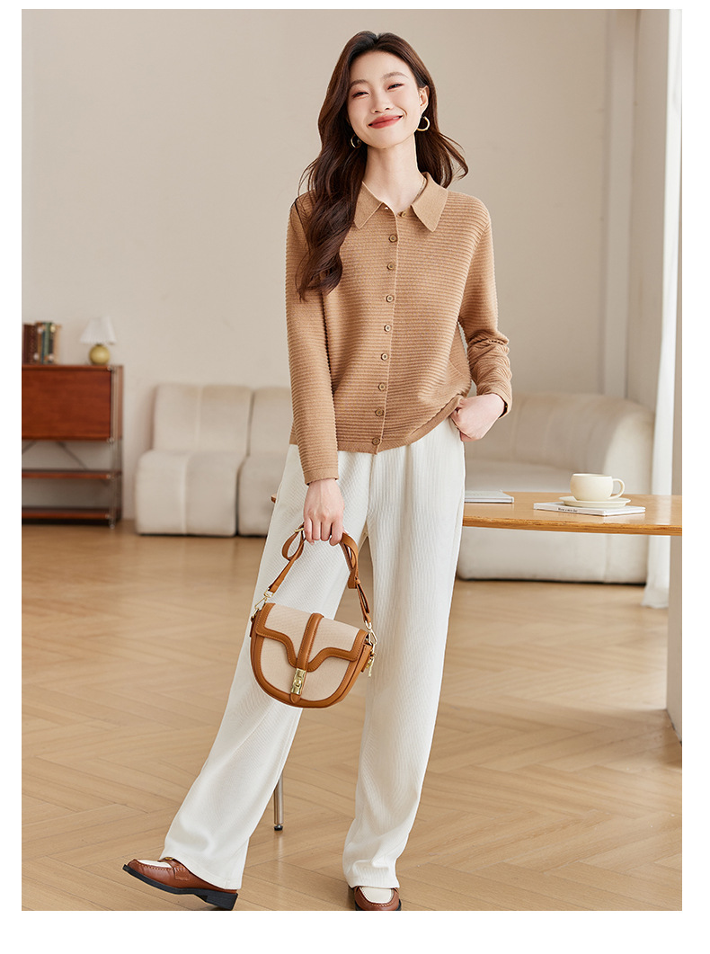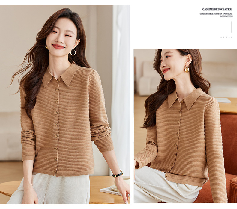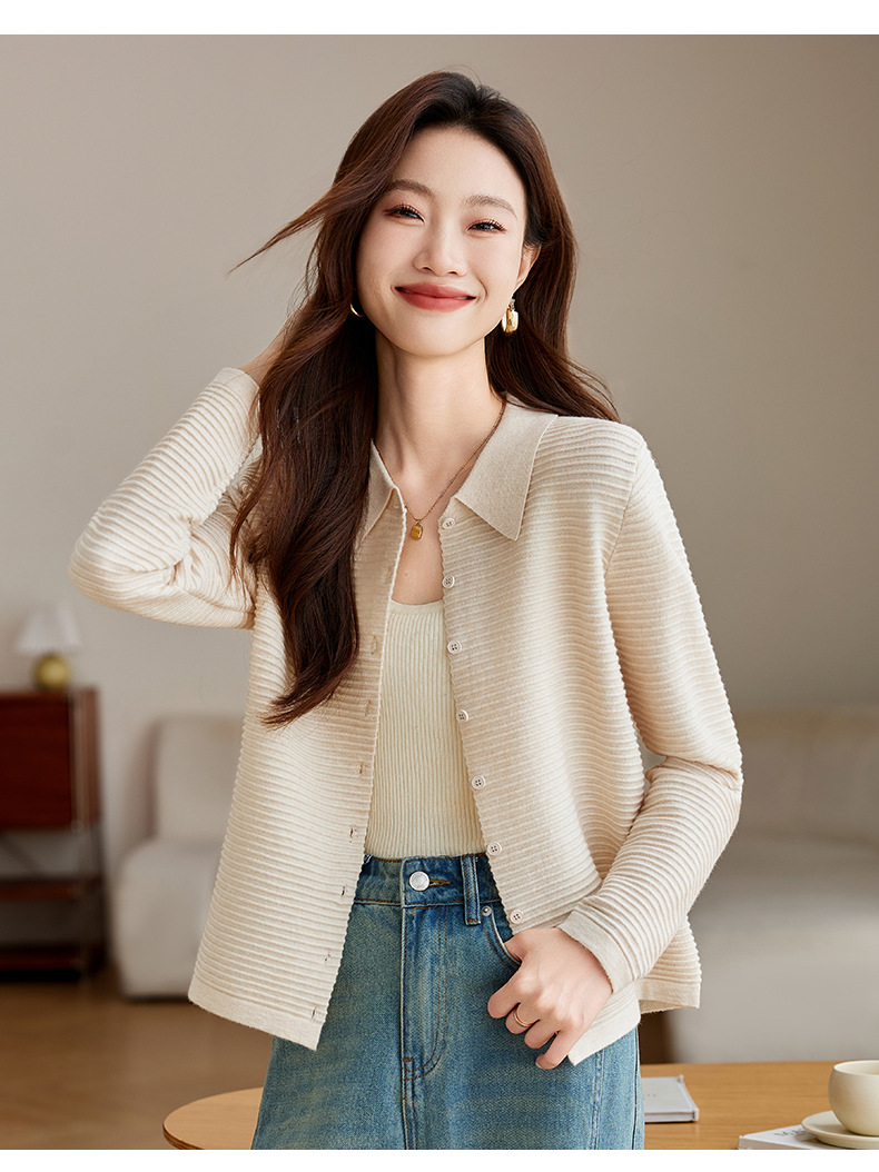 衬衫领毛衣外套短款,设计感别致长袖针织开衫CCJ982