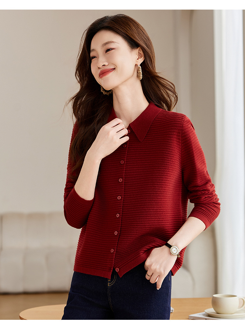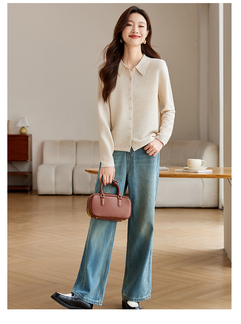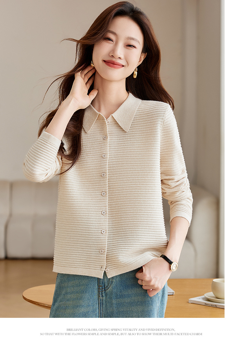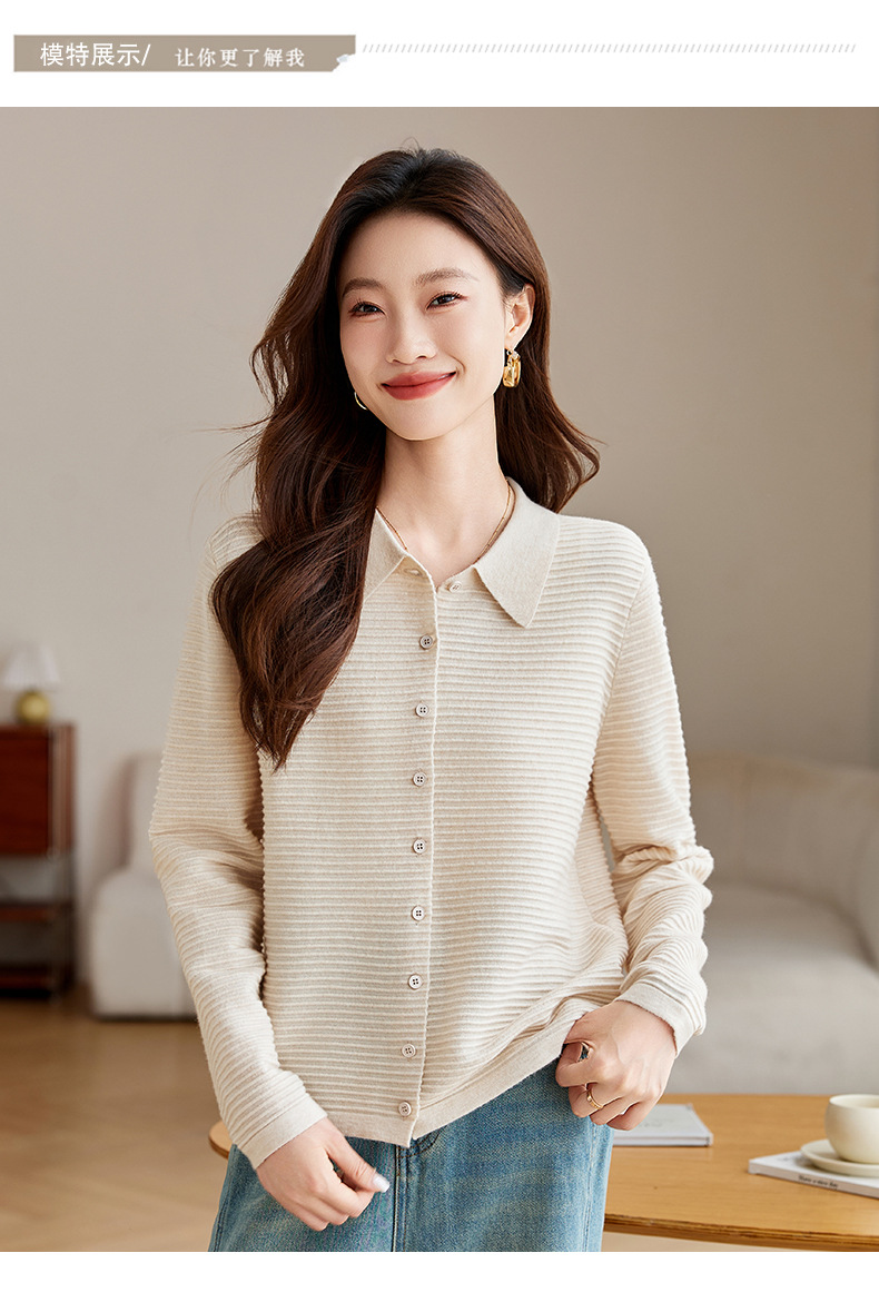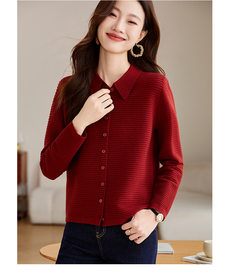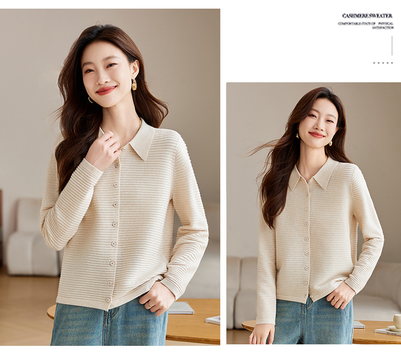 衬衫领毛衣外套短款,设计感别致长袖针织开衫CCJ982