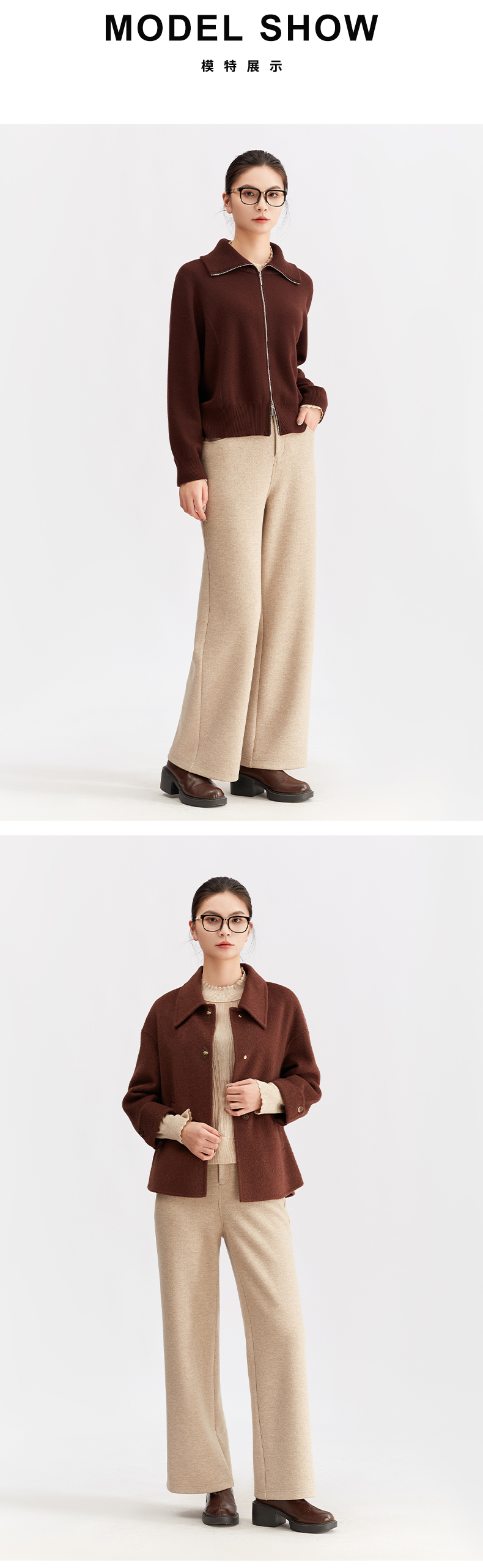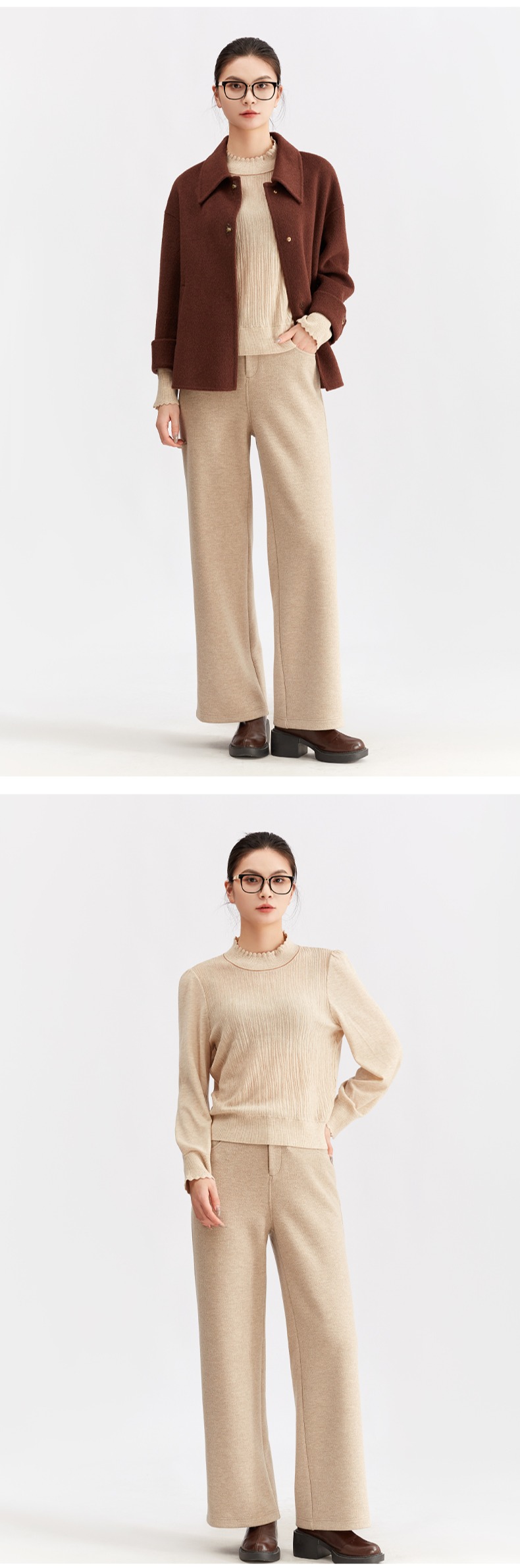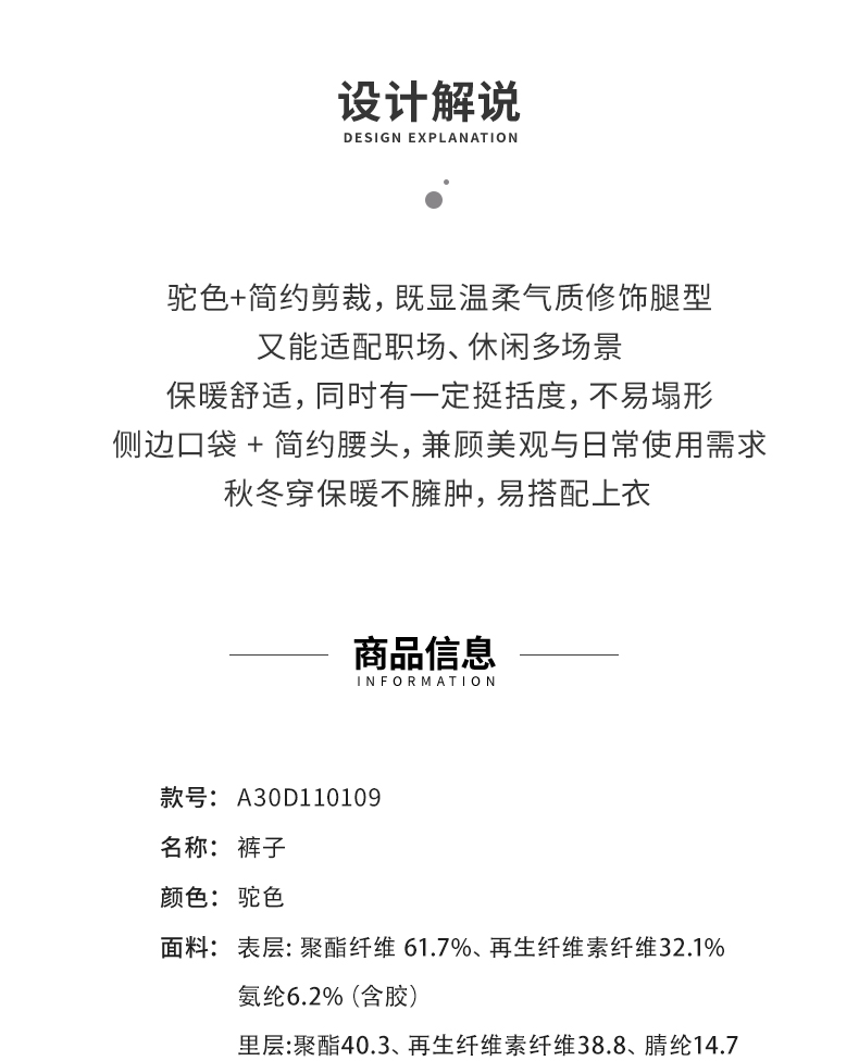【商场同款】阿菁娜冬季新款简约感驼色长裤立体剪裁显腿直侧袋设计通勤松弛感氛A30D110109