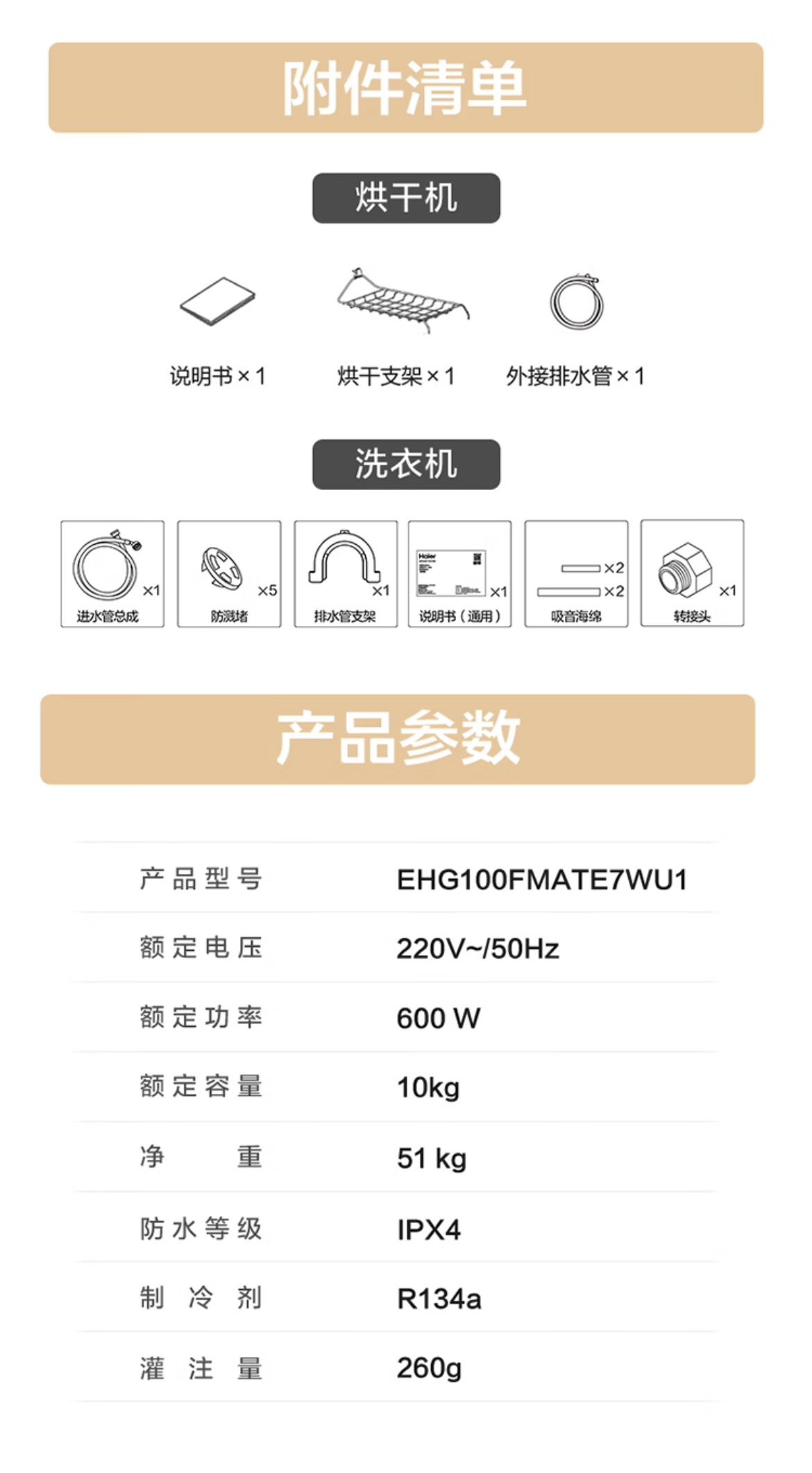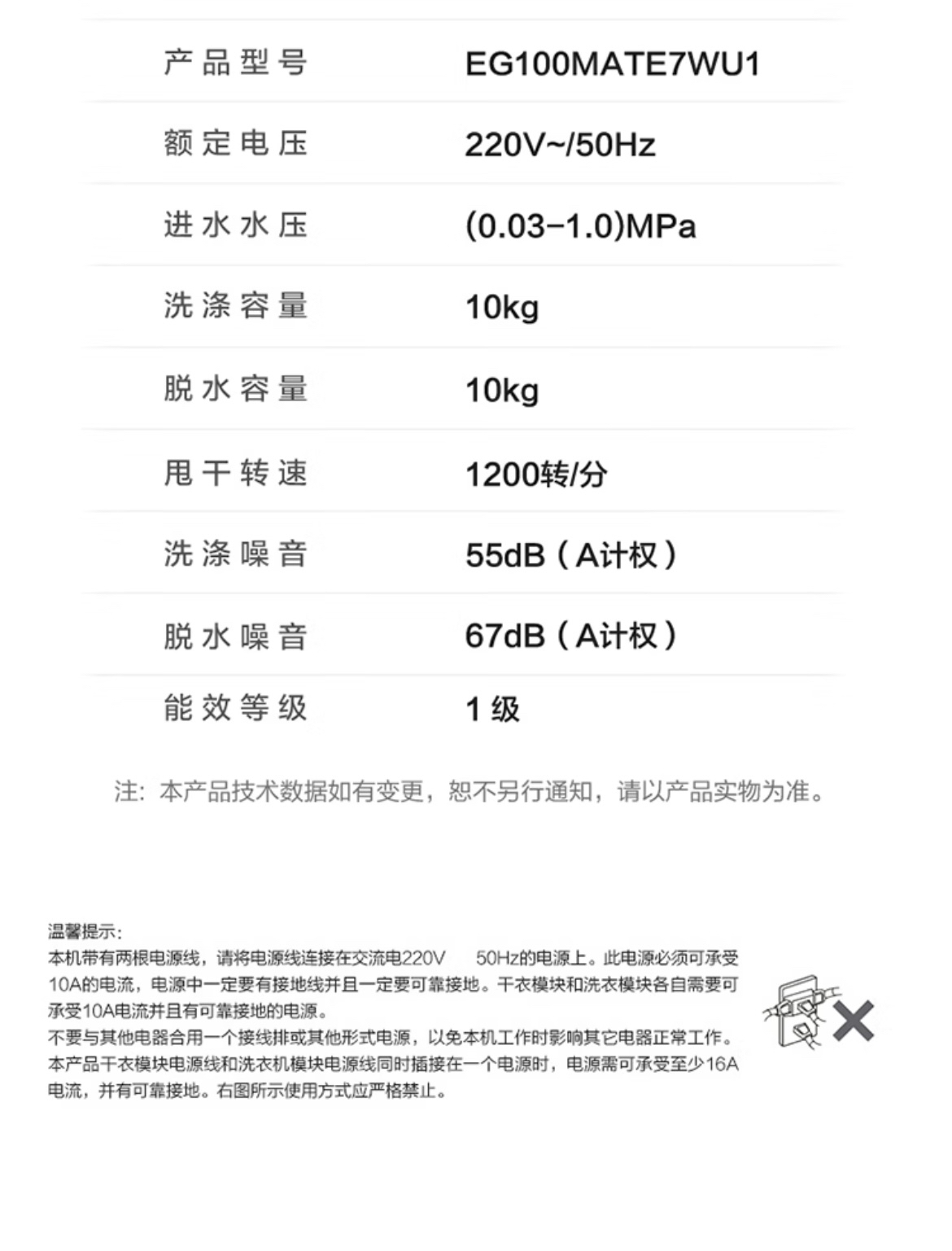 海尔(Haier)洗烘套装 EG100MATE7WU1+EHG100FMATE7WU1