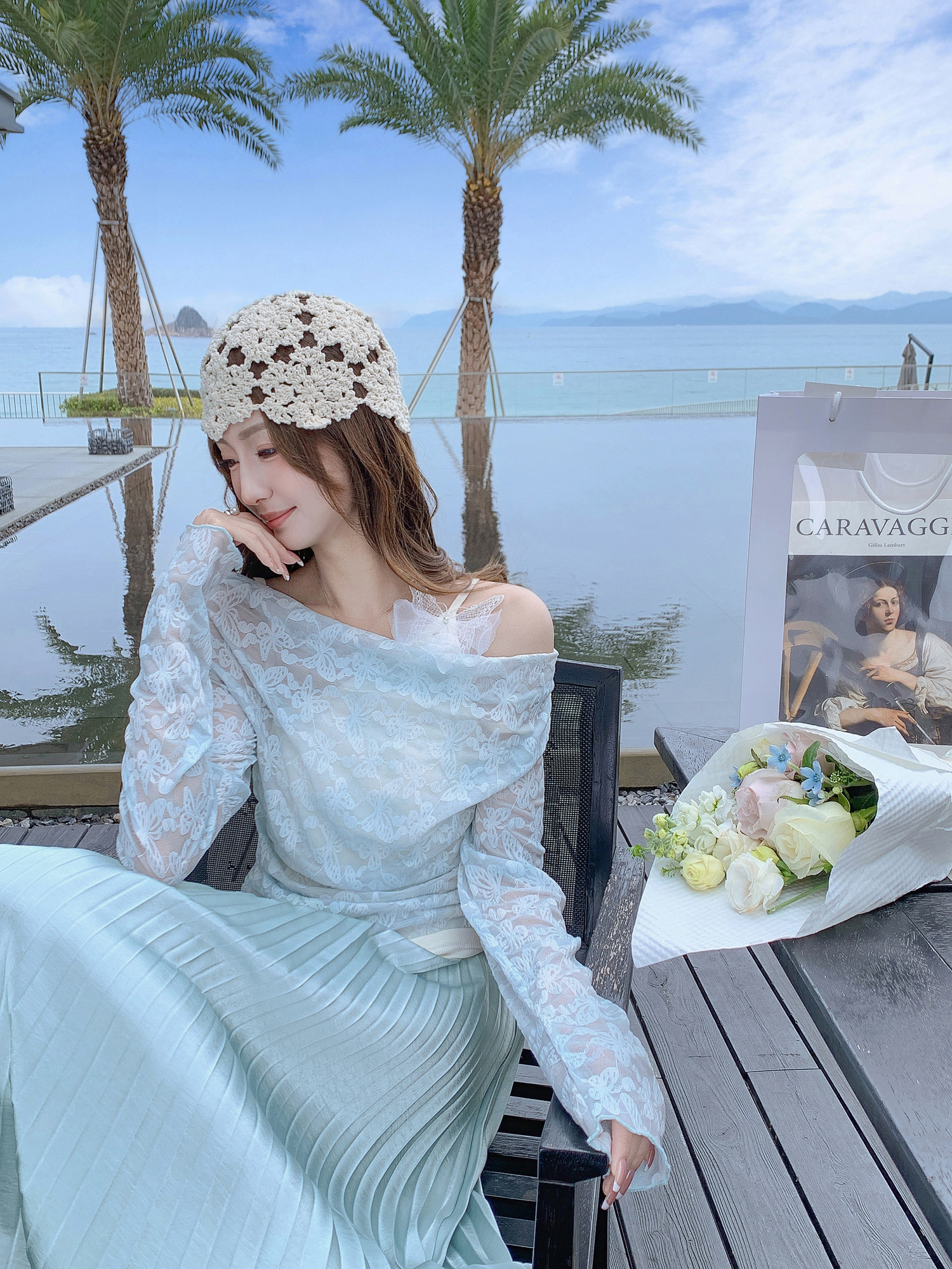 张心子【浪漫马黛】高级感荡领飞袖上衣女夏新款气质洋气小衫 U2406001
