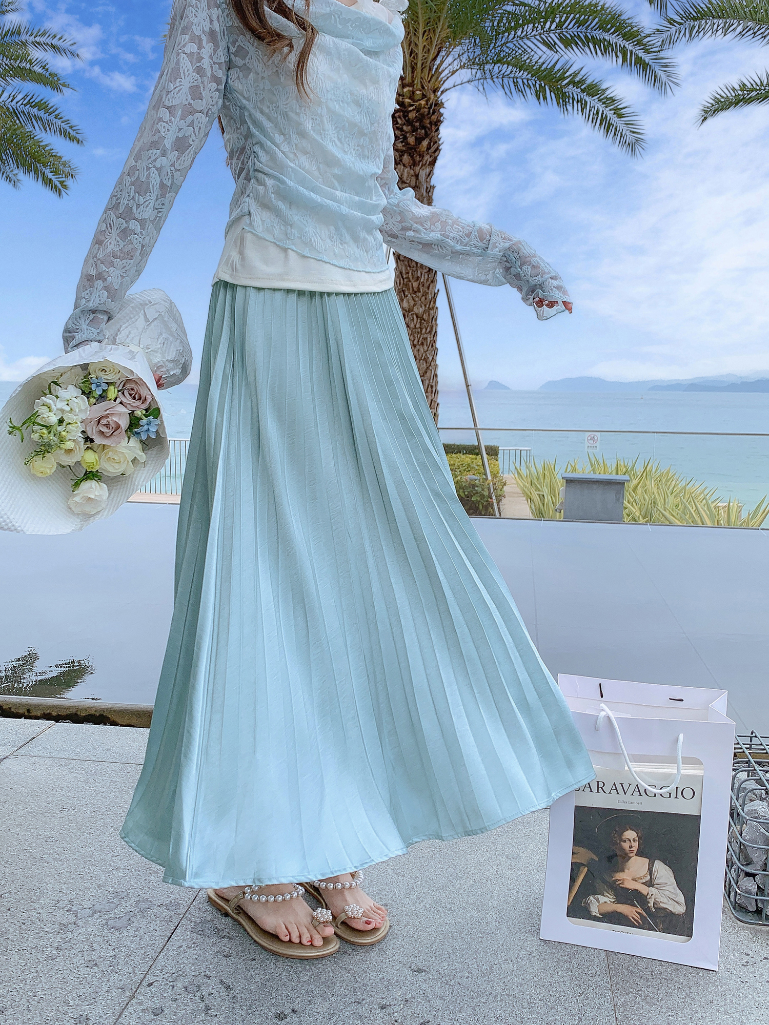 张心子【摇曳鱼尾】高腰弹力酸缎面百褶裙半身裙 U2502042