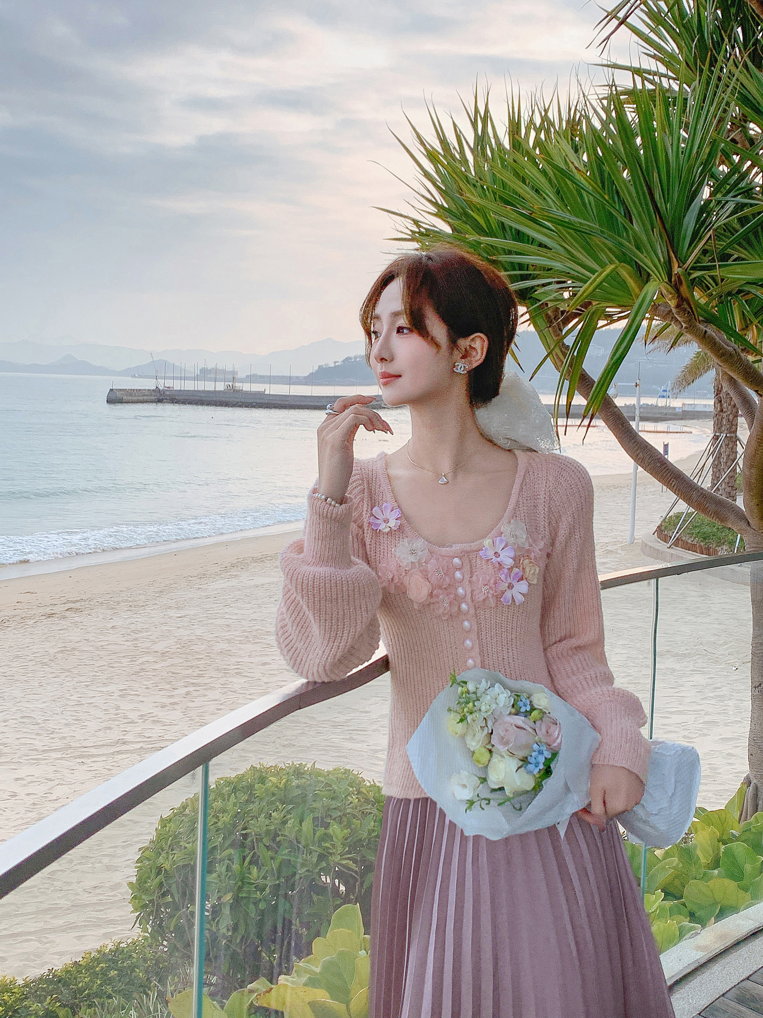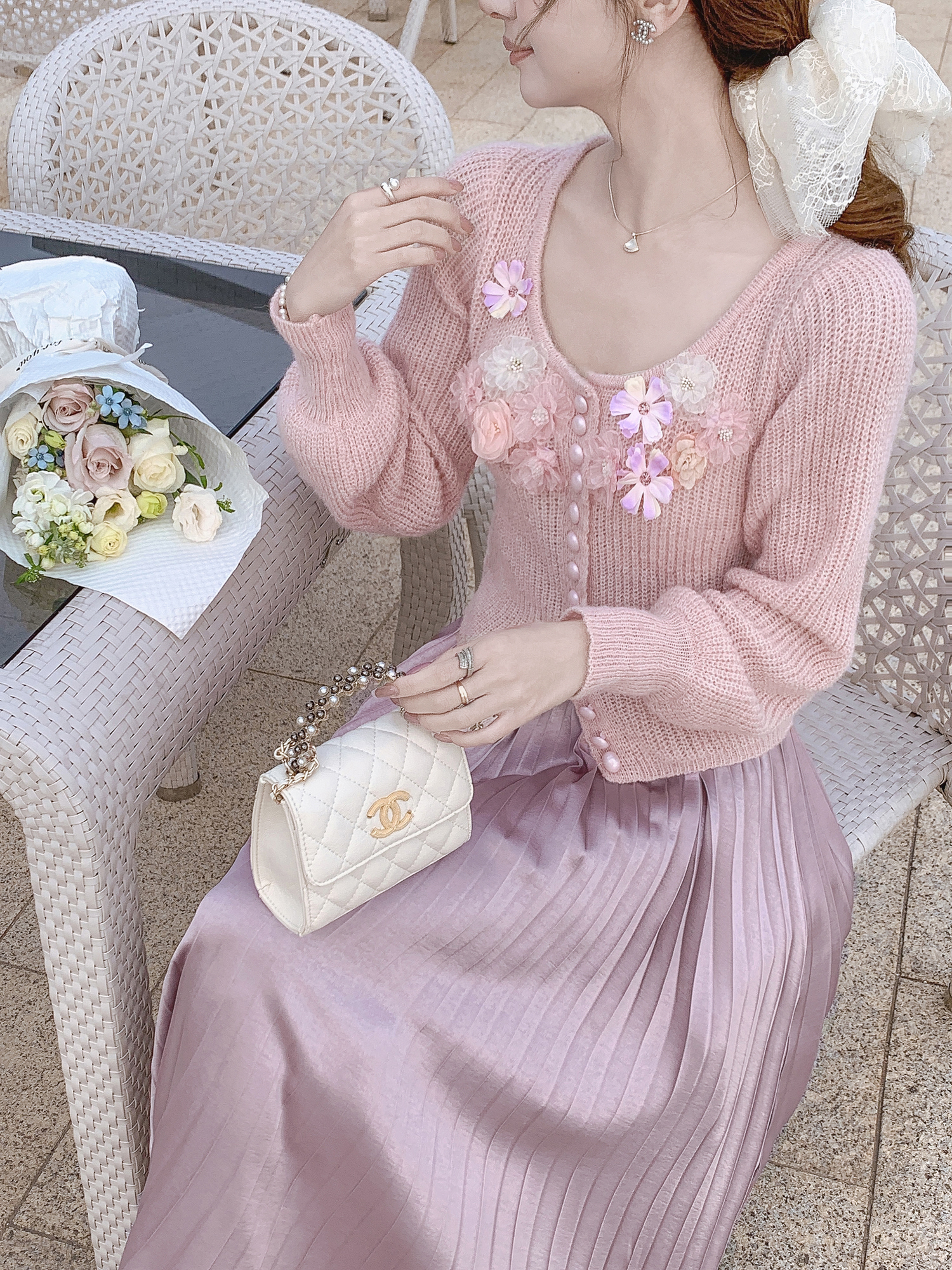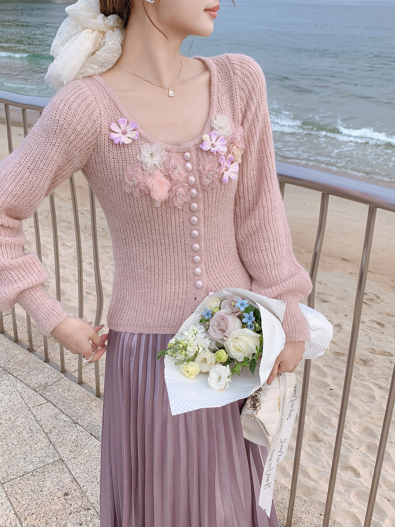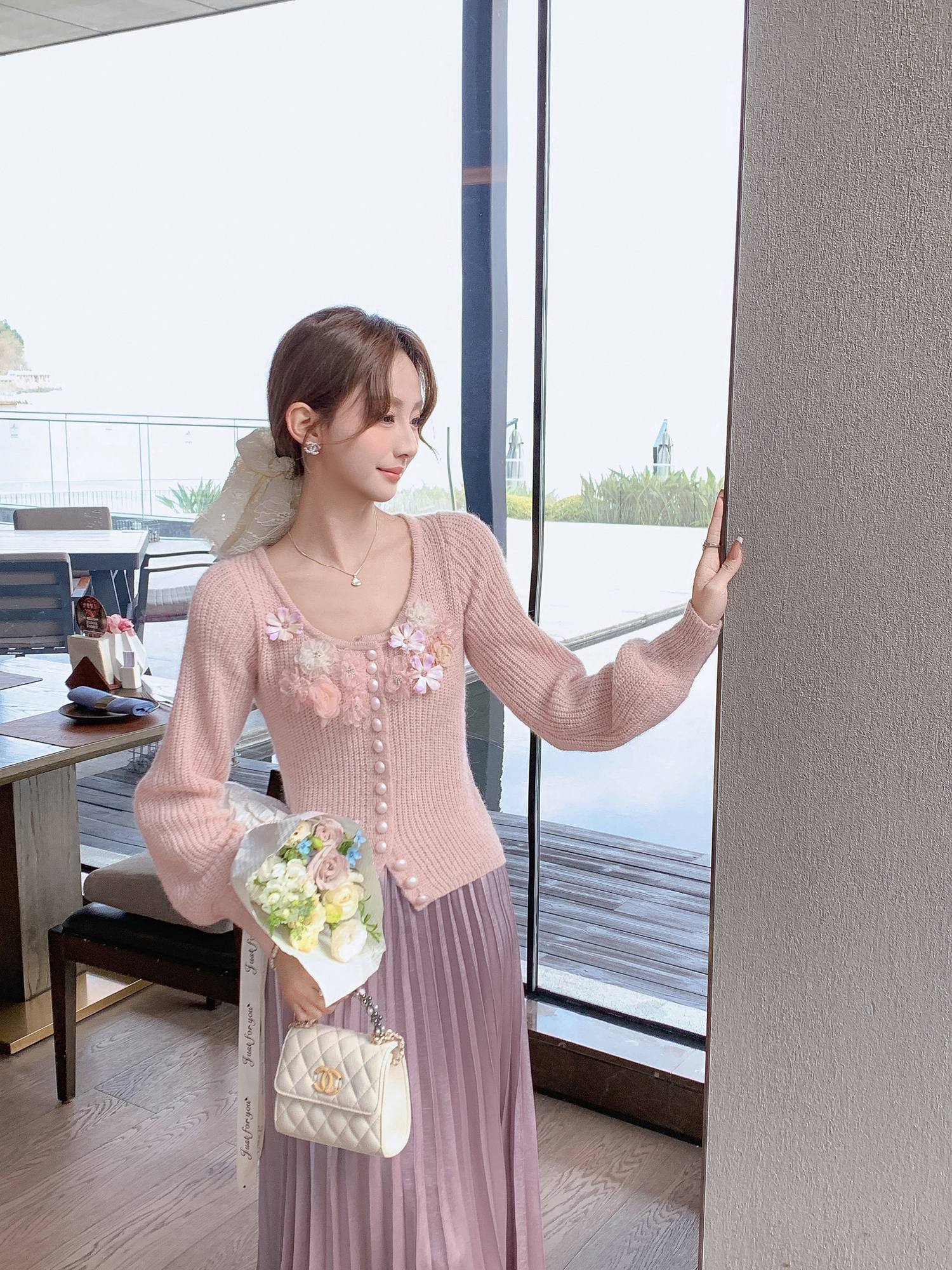 张心子【午后花园】法式立体花气质秋款长袖女新款显瘦百搭针织衫 U2508010