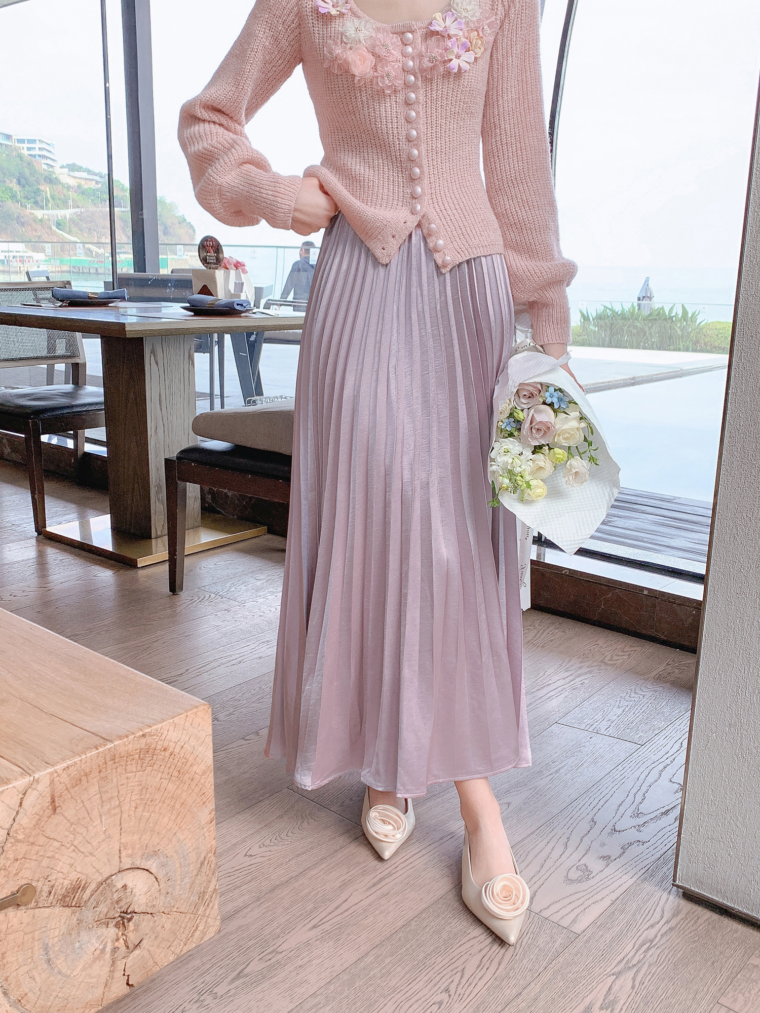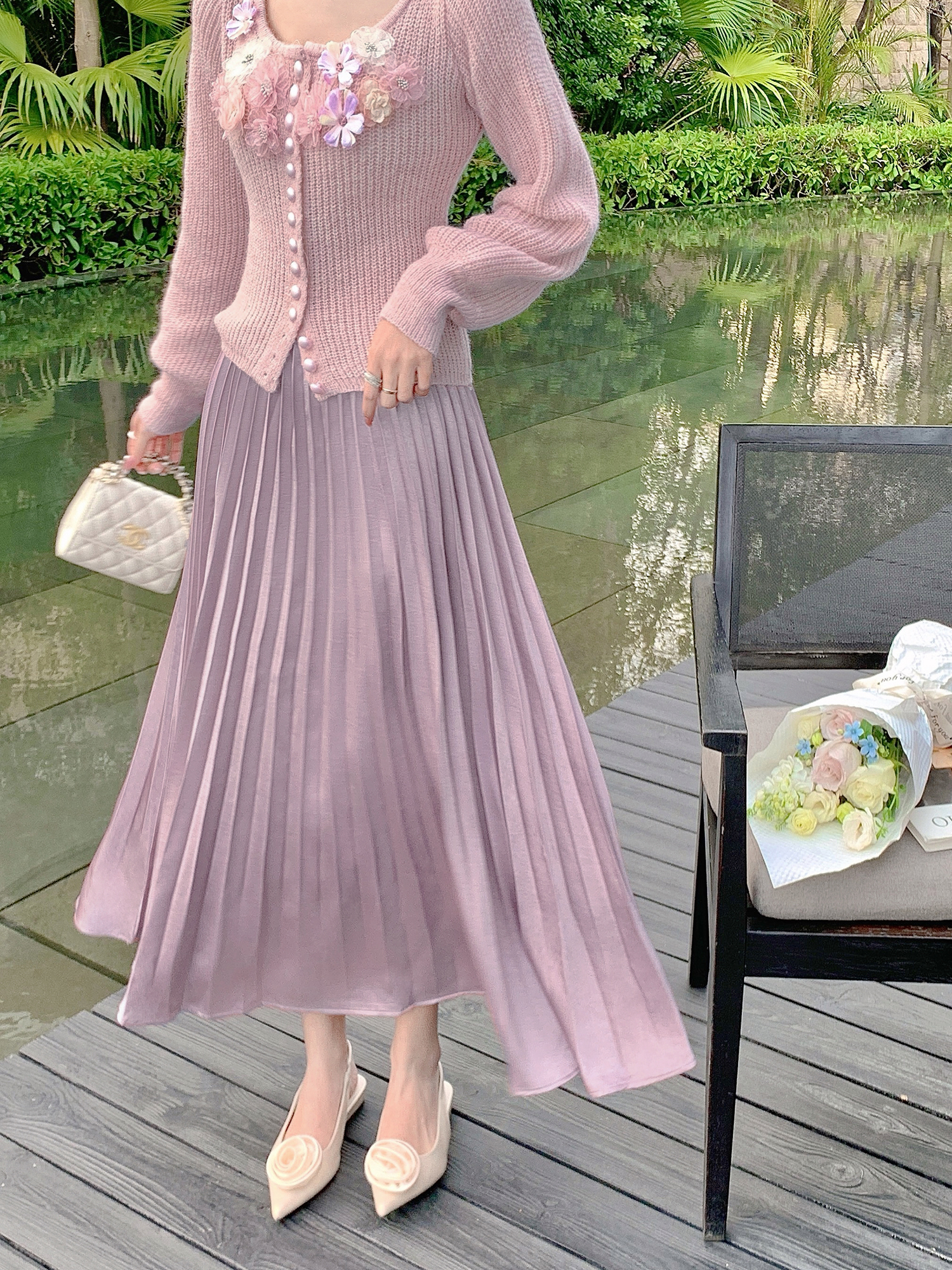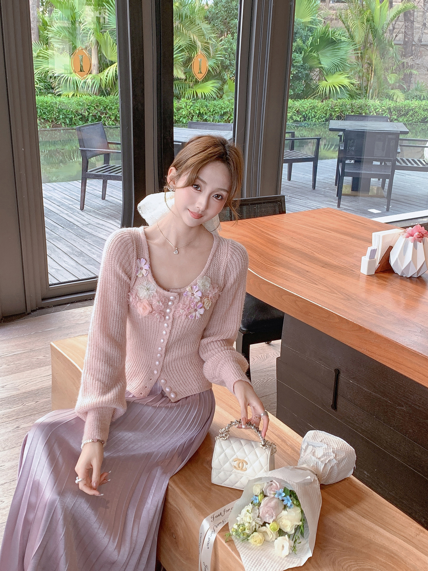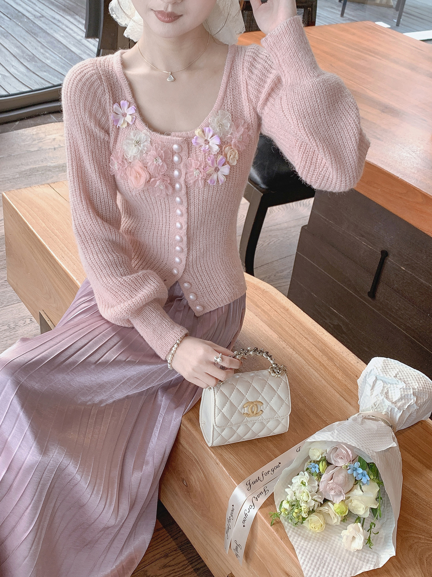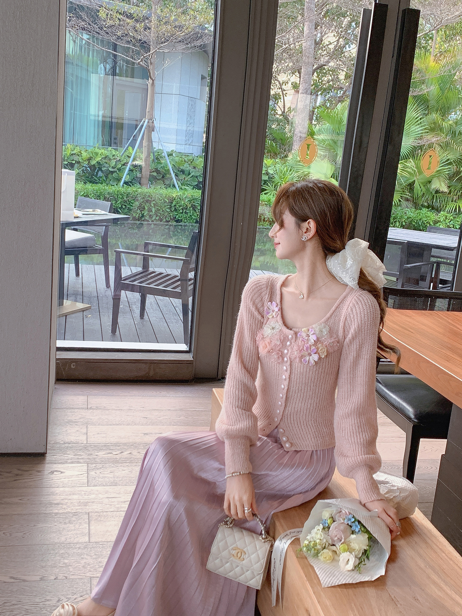 张心子【午后花园】法式立体花气质秋款长袖女新款显瘦百搭针织衫 U2508010