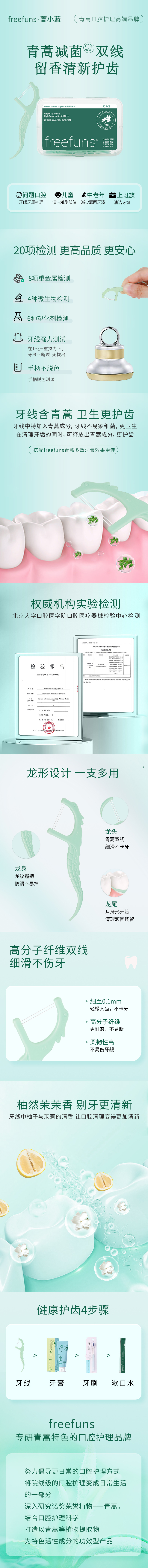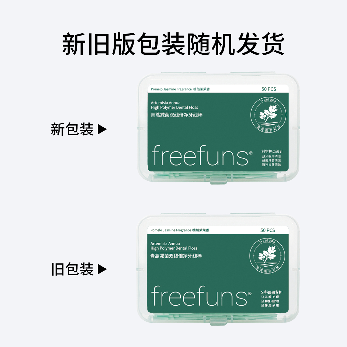 freefuns青蒿减菌双线倍净牙线棒 50支/盒 双线设计 清洁无残留 柚然茉莉香