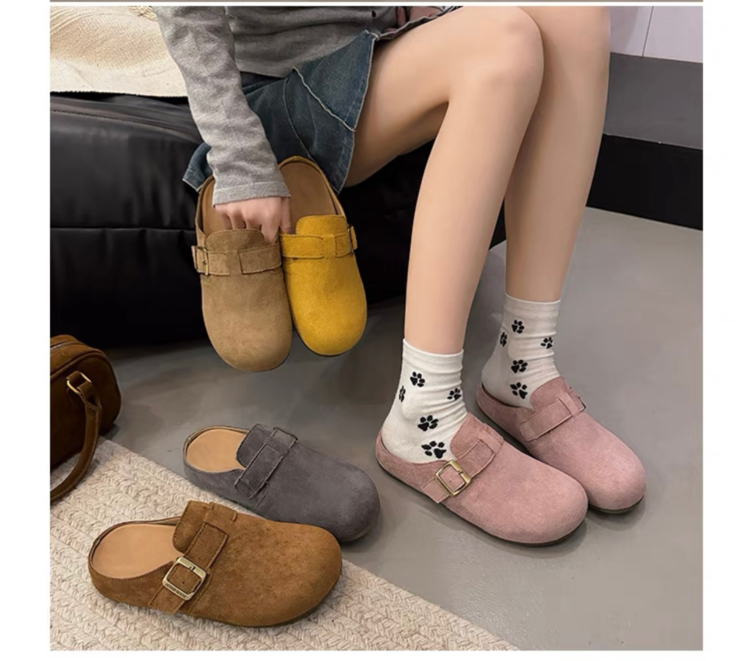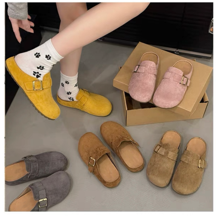 【款式】XG9725复古文艺厚底勃肯包头半拖
