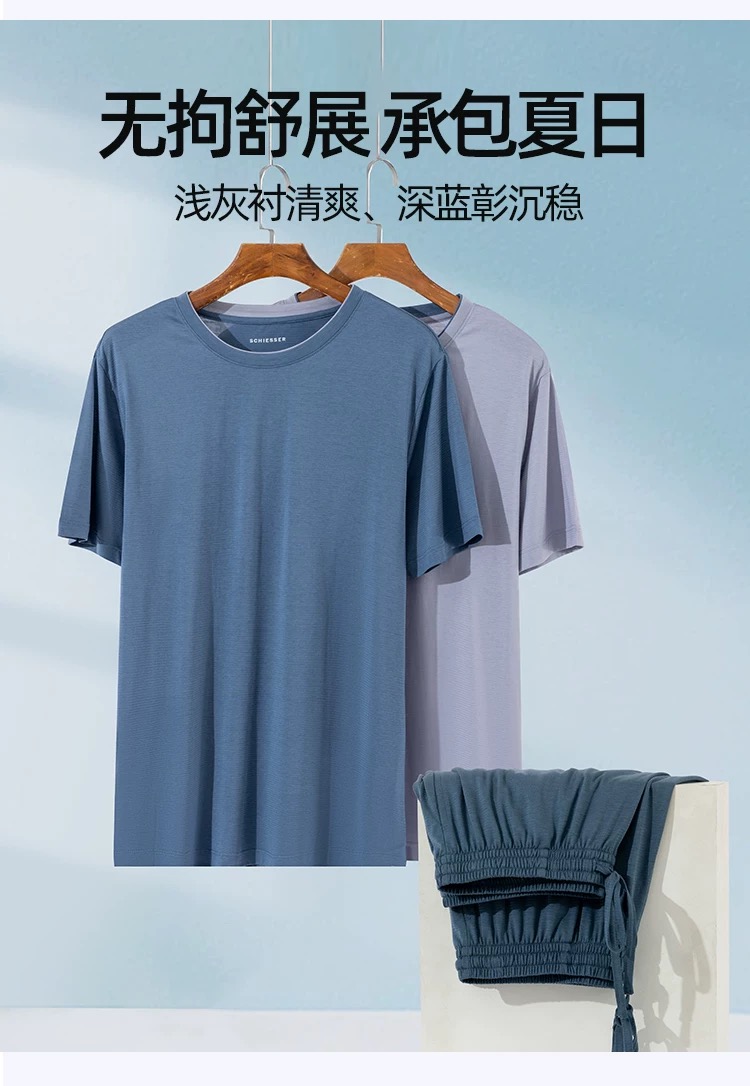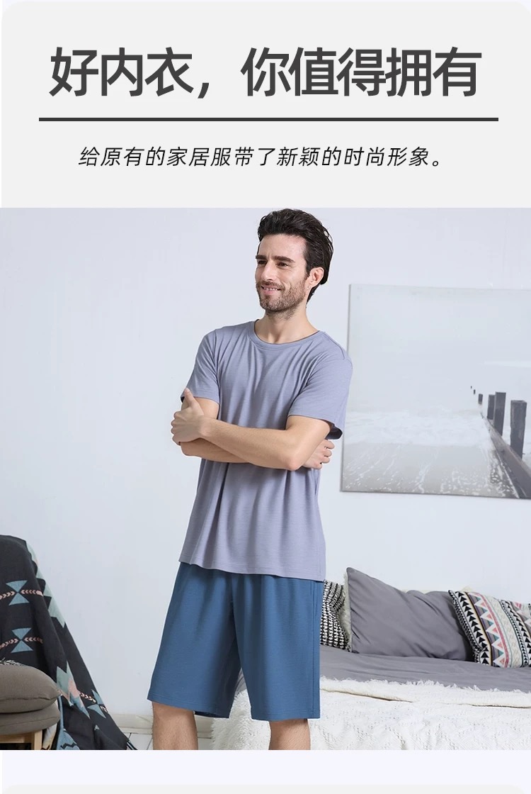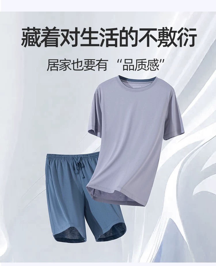 【提花棉莫代尔系列】舒雅男士圆领短袖短裤套装 莫代尔+棉 39/27133H