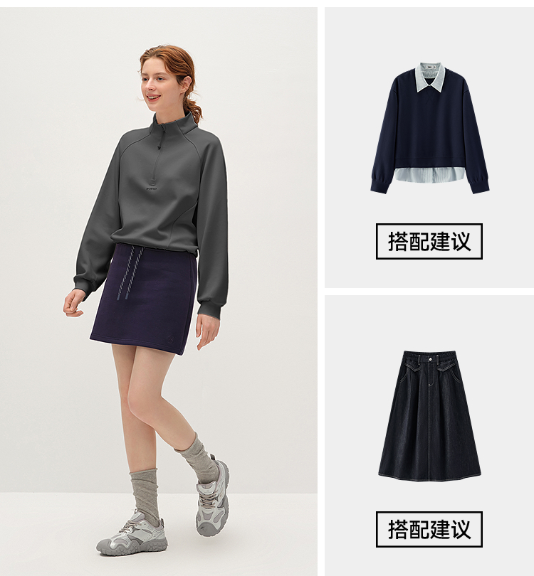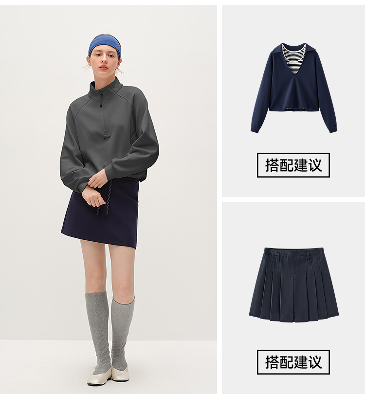 商场同款|森马卫衣女春短款宽松插肩袖2026新款时尚运动风套头衫