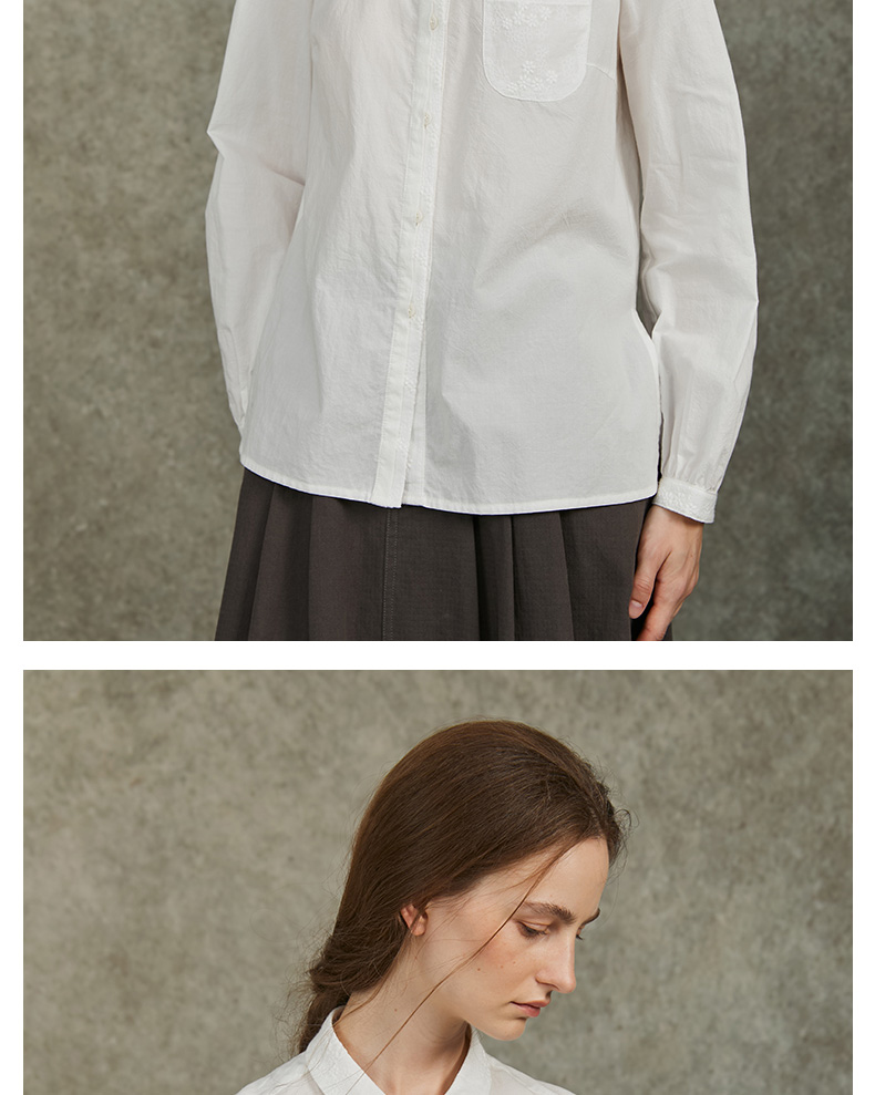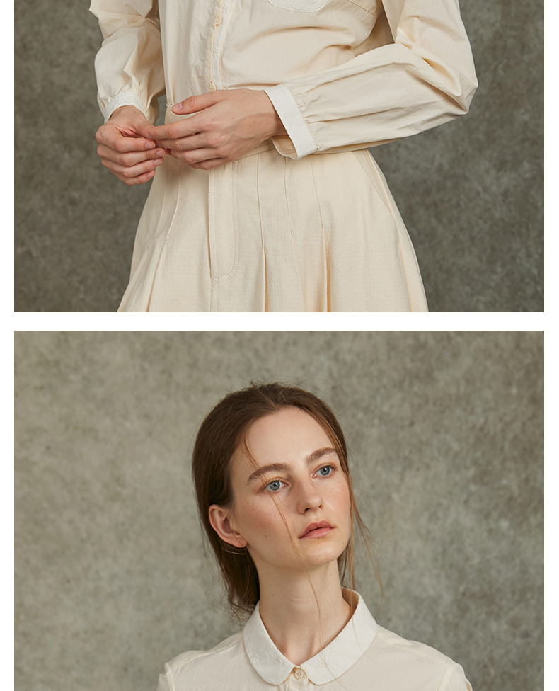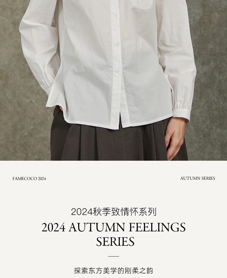 Famecoco范可儿灯笼袖衬衣法式小翻领法式长袖衬衣FAC6BH014