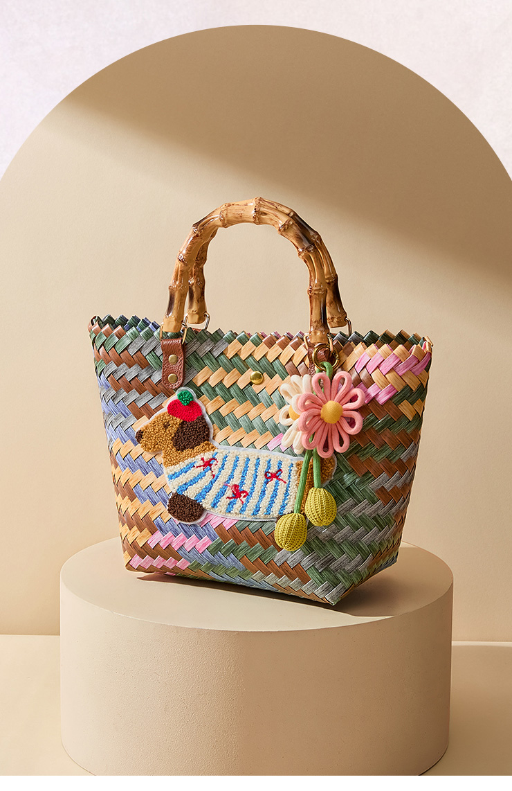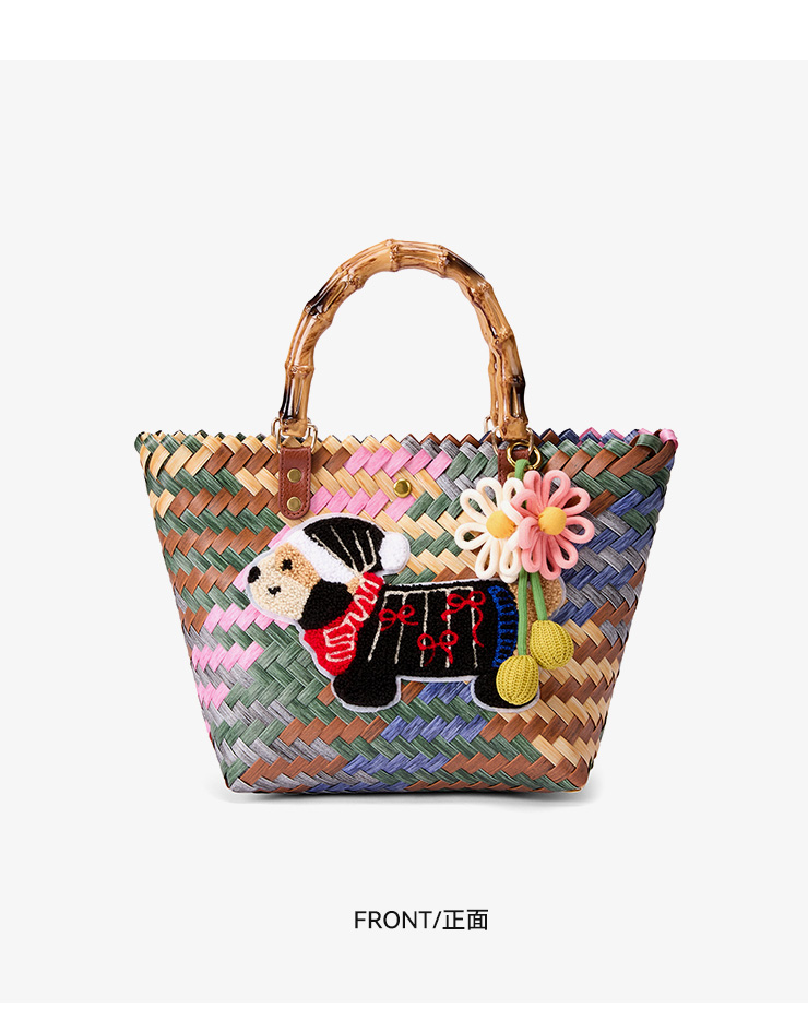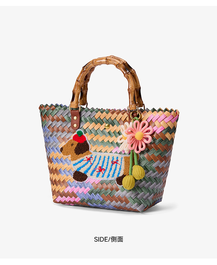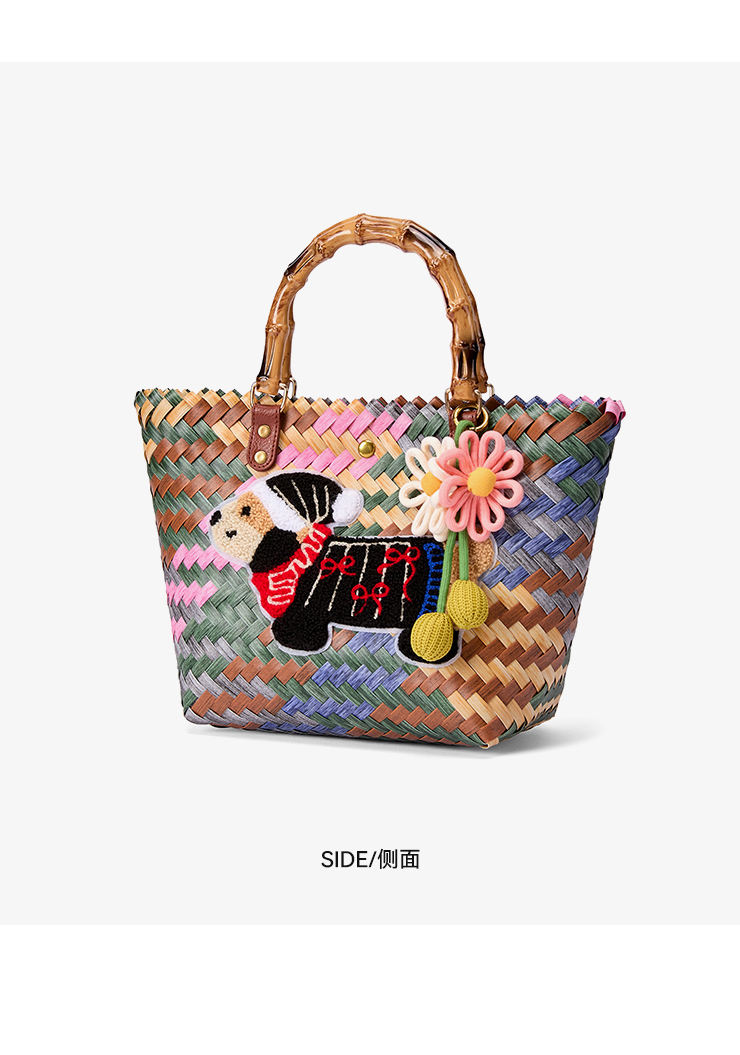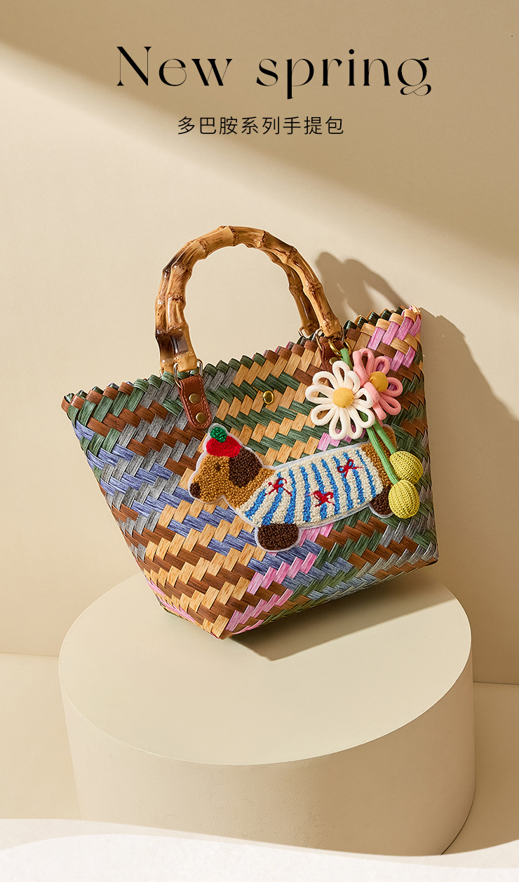 星期六竹节手柄多彩编织托特包SSD521A02Y