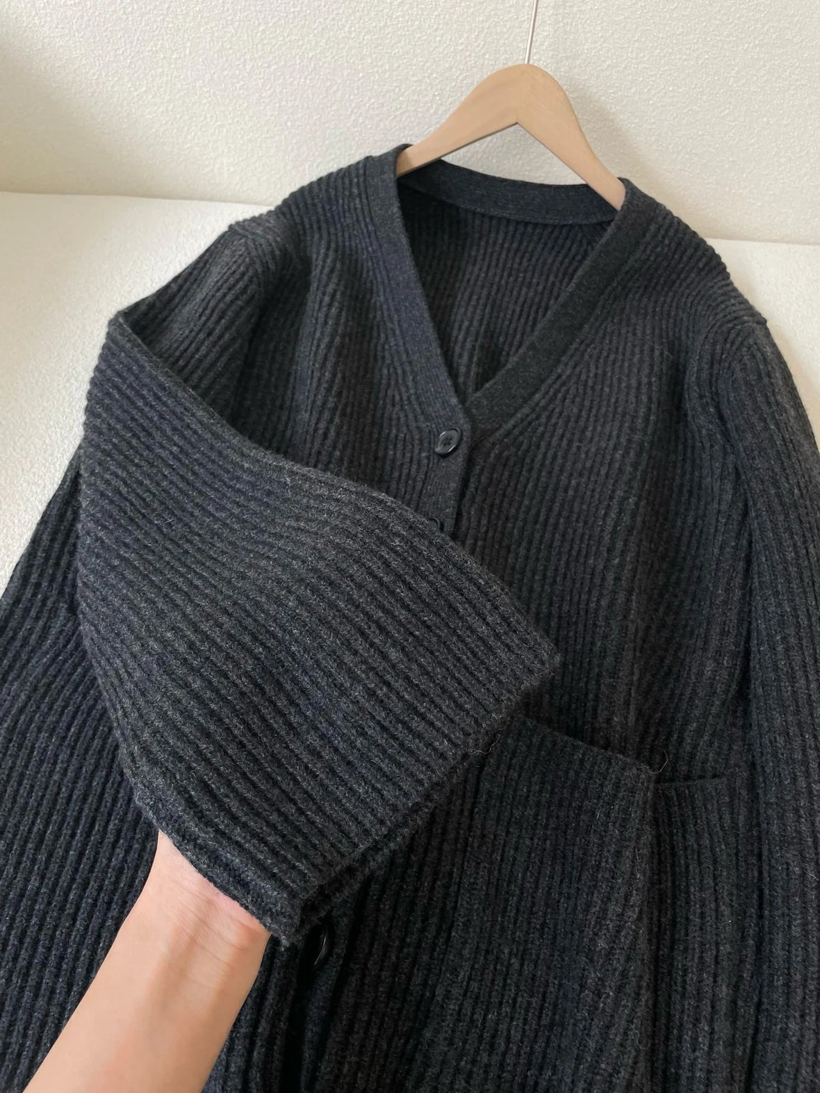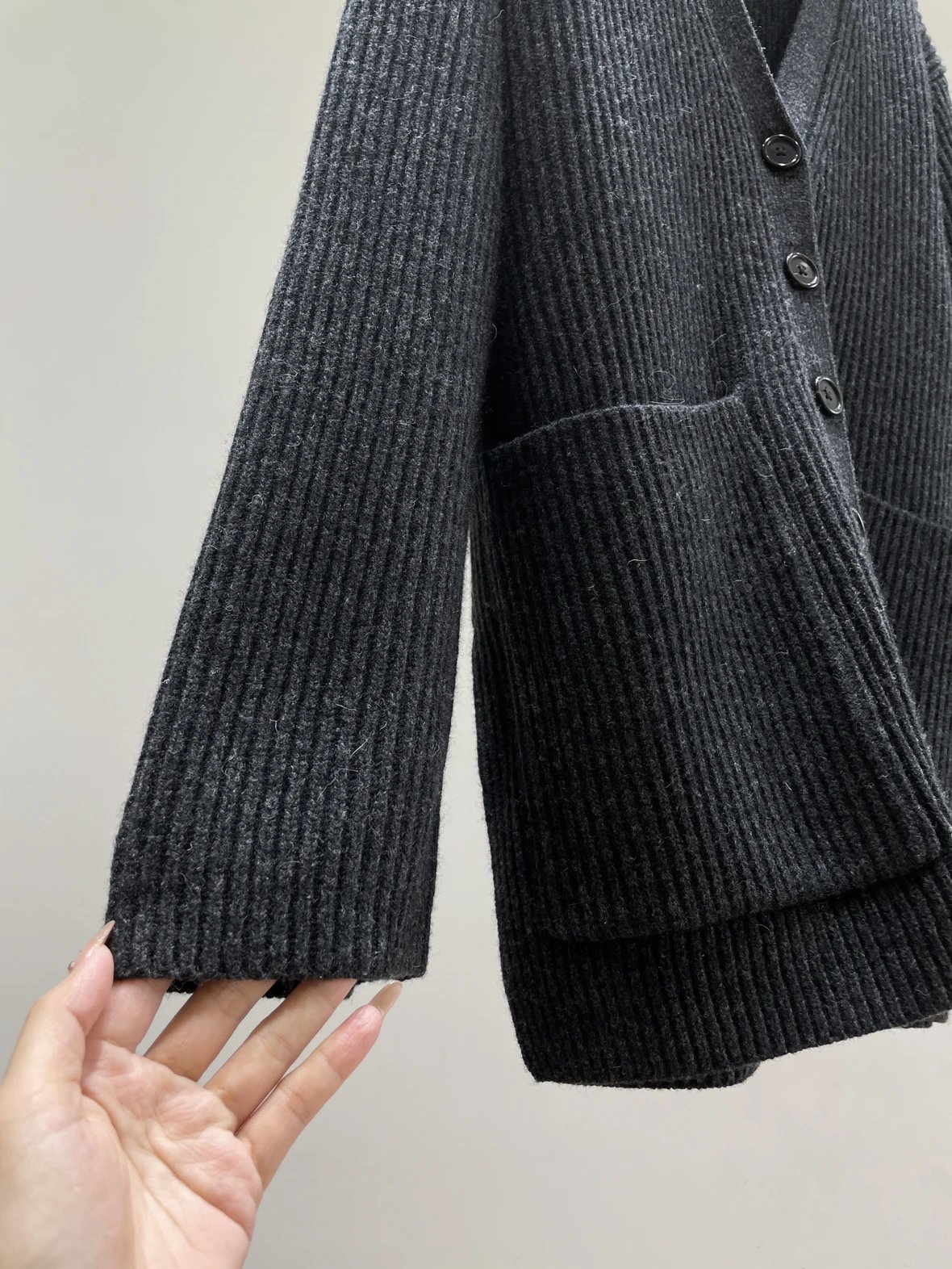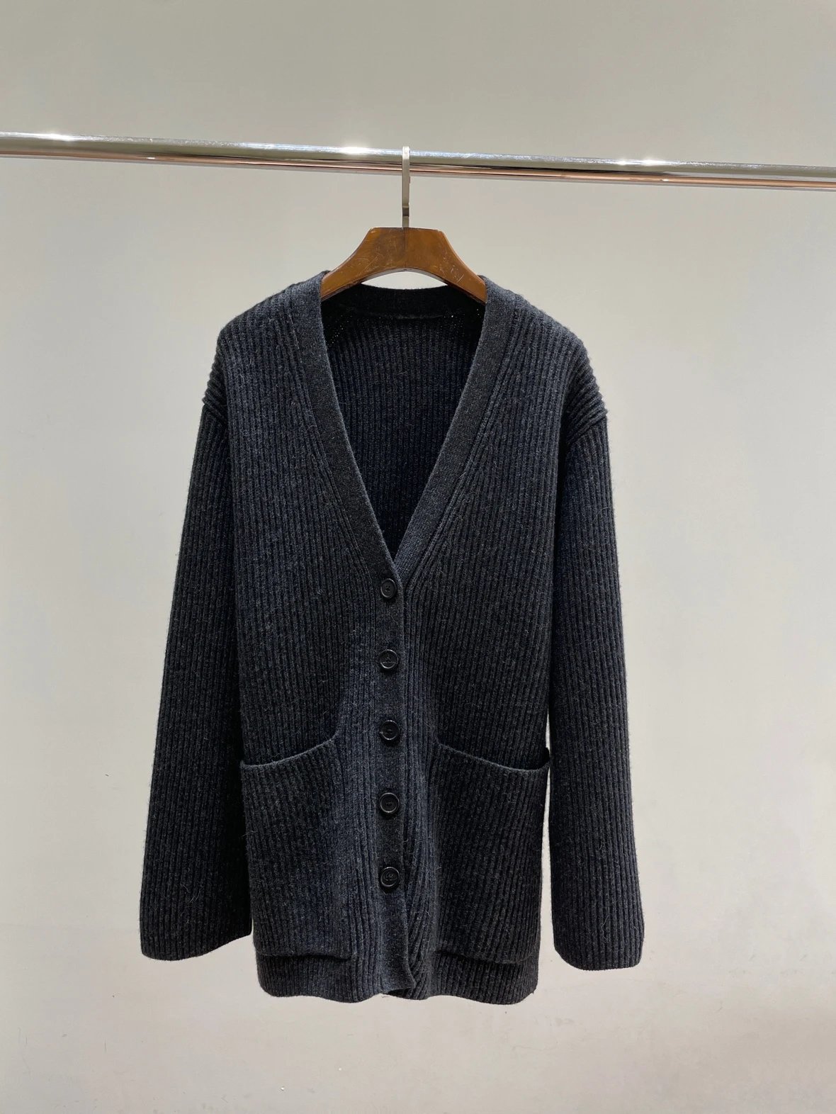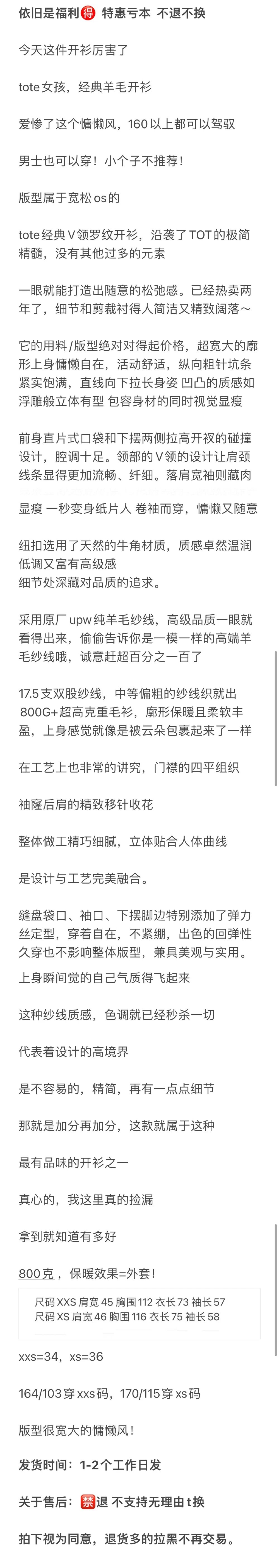 福利特价 不退不换 t廓形针织开衫 剪标 深灰色 800g高克重针织外套