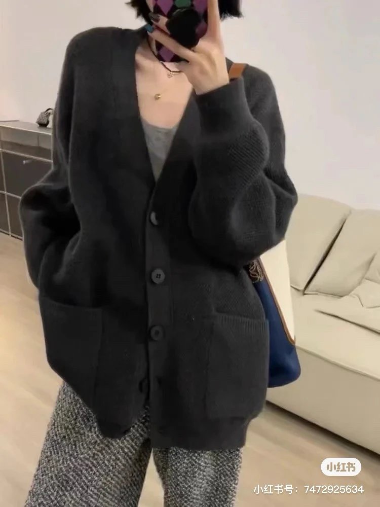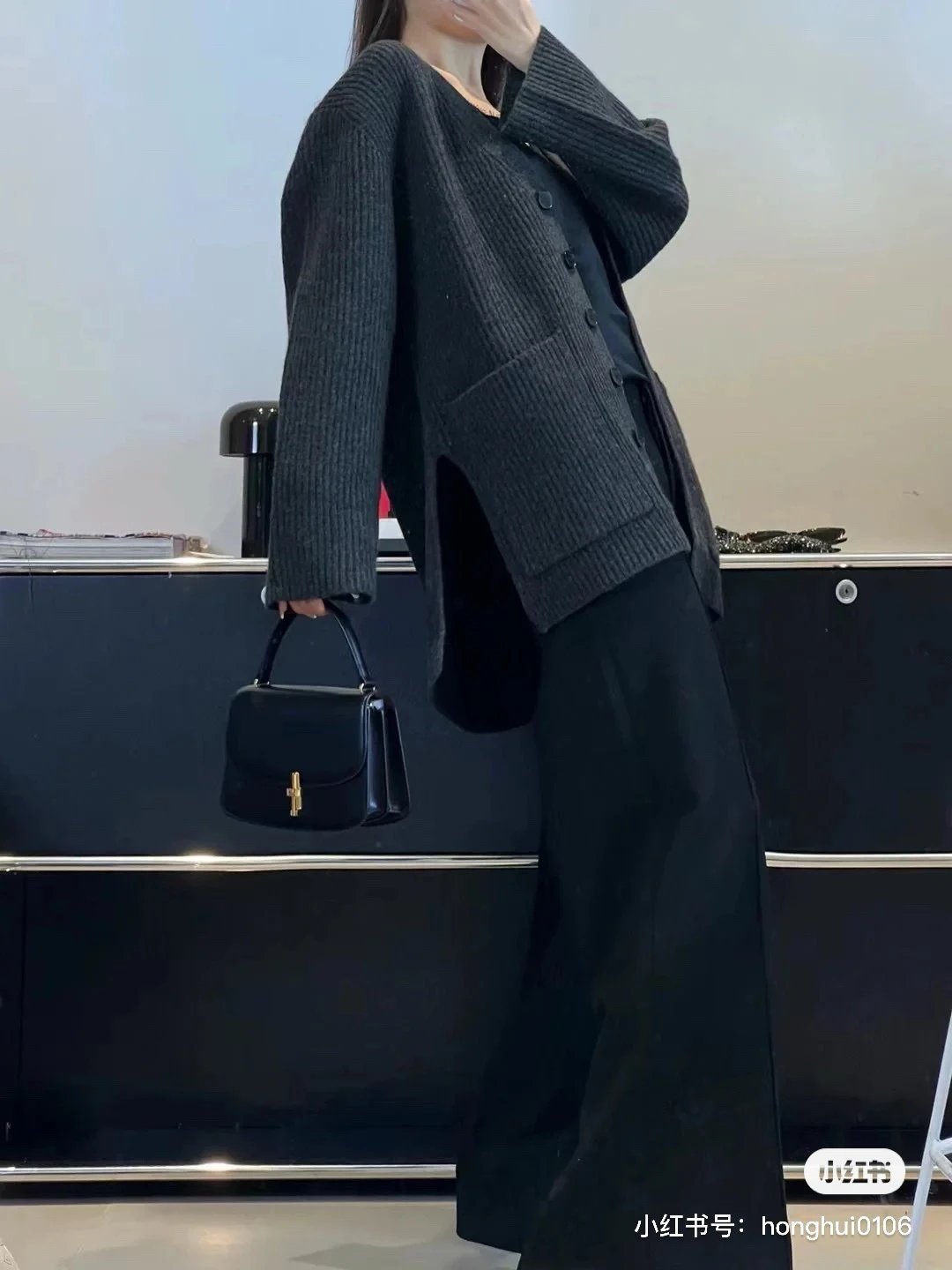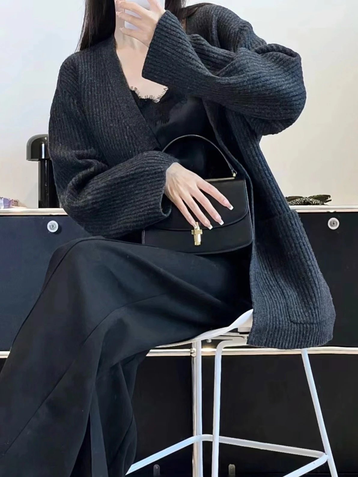 福利特价 不退不换 t廓形针织开衫 剪标 深灰色 800g高克重针织外套