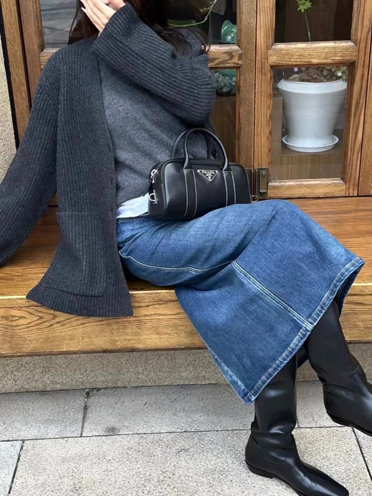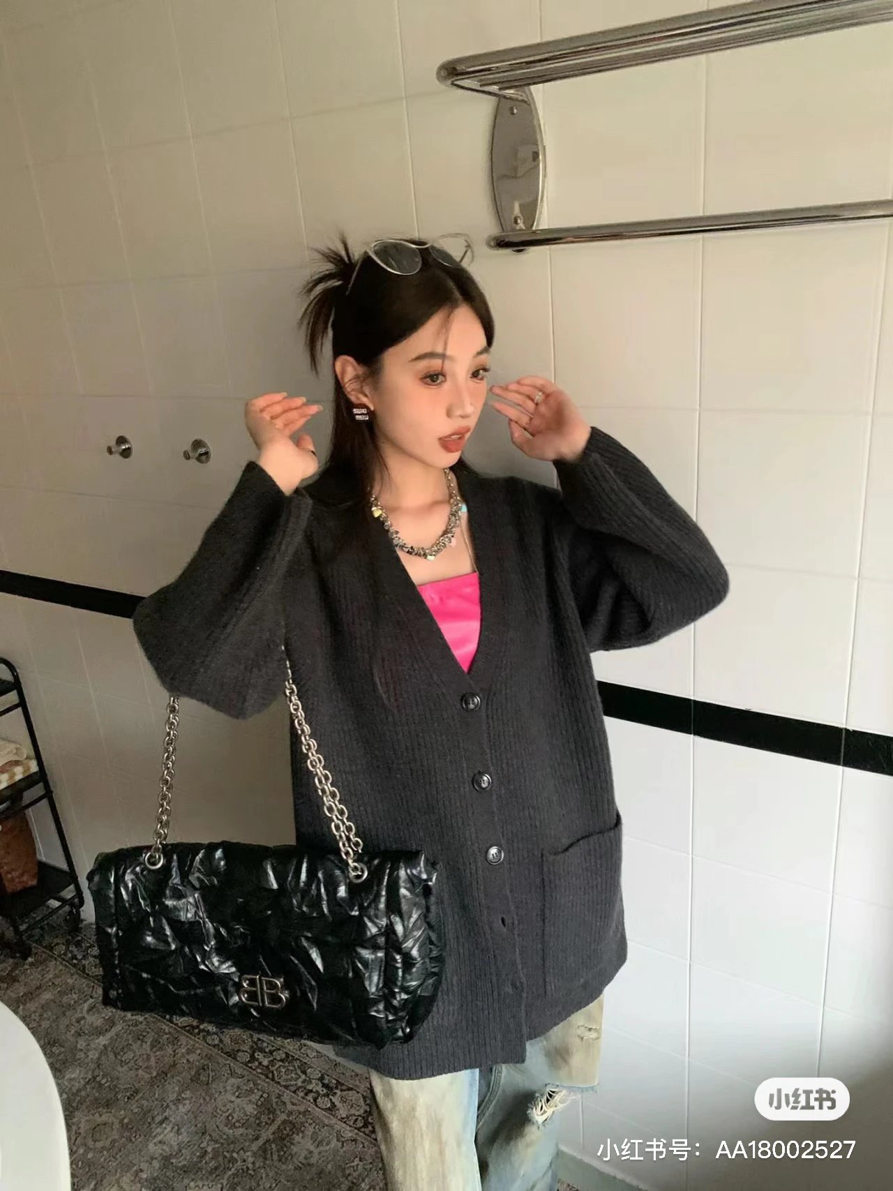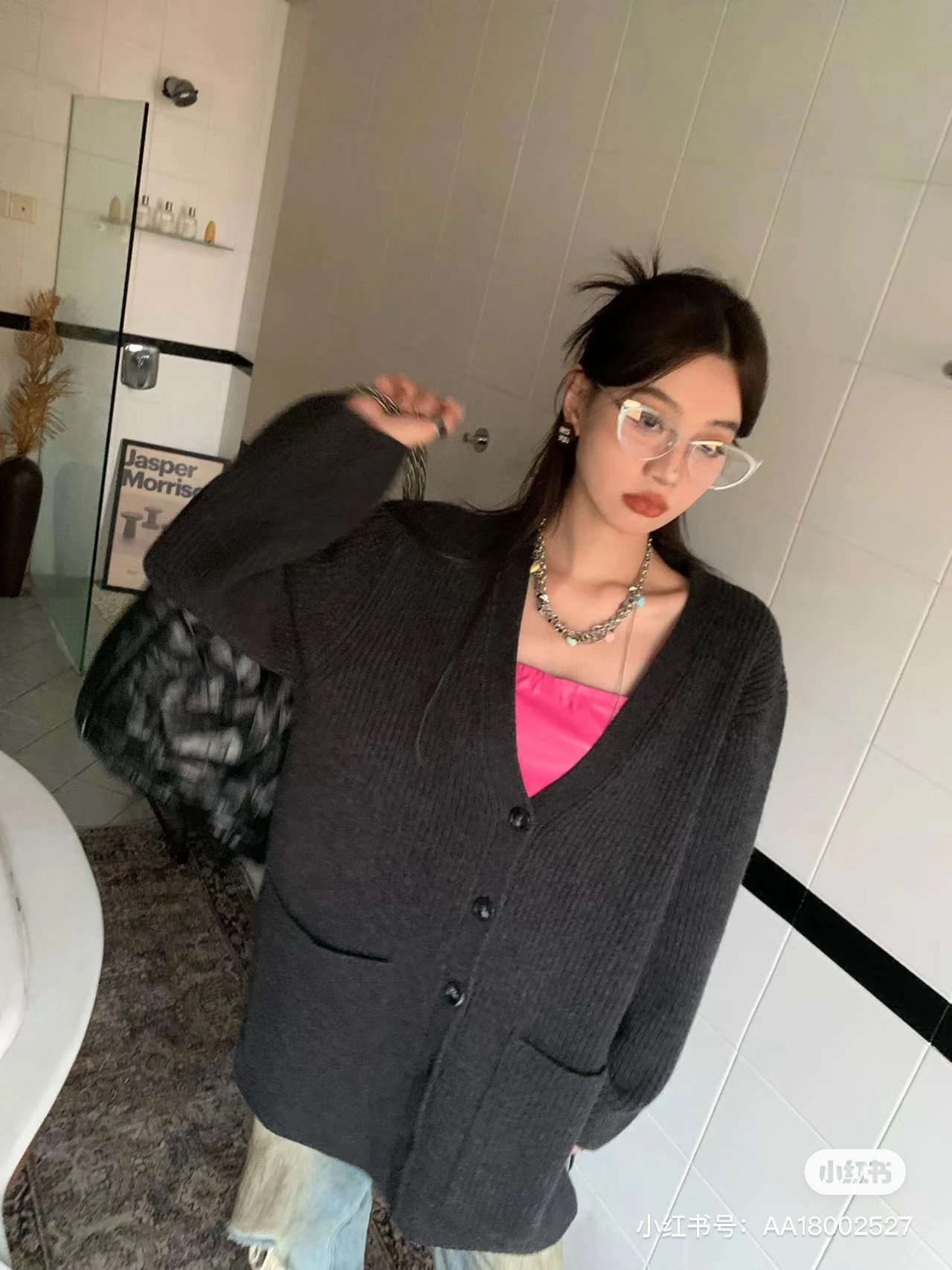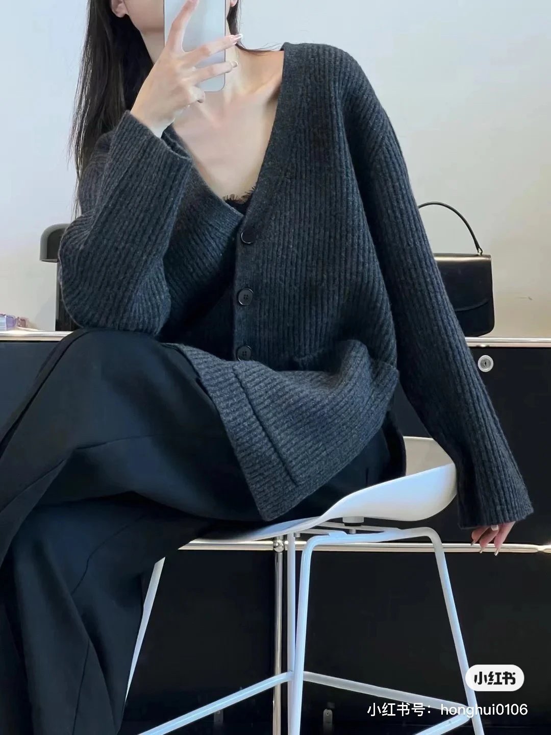 福利特价 不退不换 t廓形针织开衫 剪标 深灰色 800g高克重针织外套
