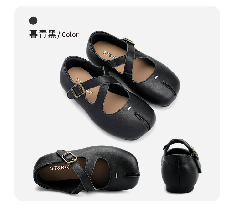 星期六拼色羊皮浅口方跟休闲女鞋SS33111184