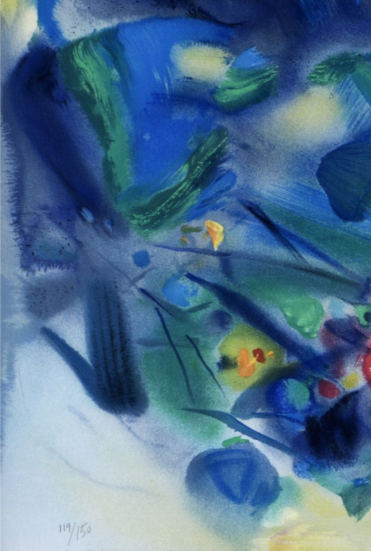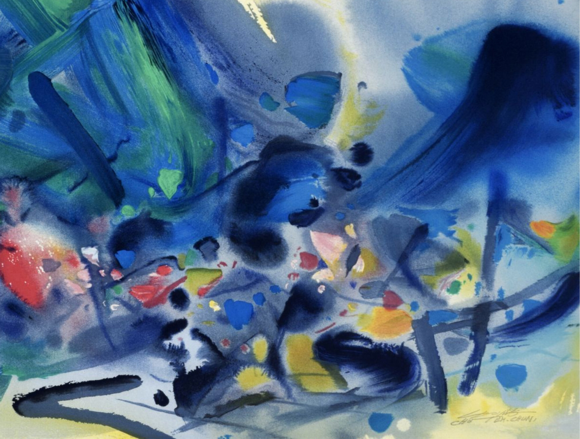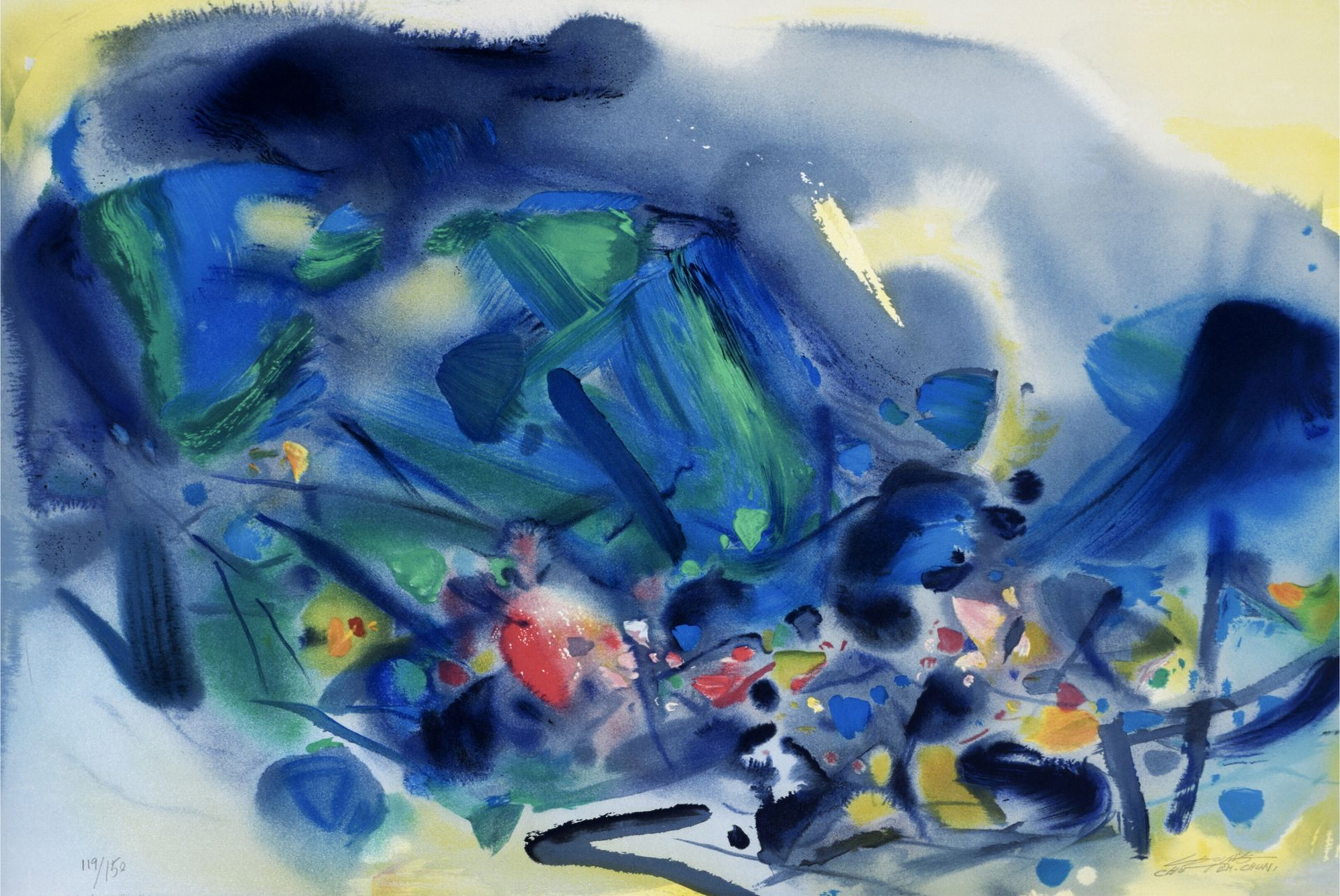 独角鹿西洋古董20世纪后期法国巴黎Frédéric Possot出版艺术大师朱德群亲签限量彩色石版画「构图五(Composition V)」