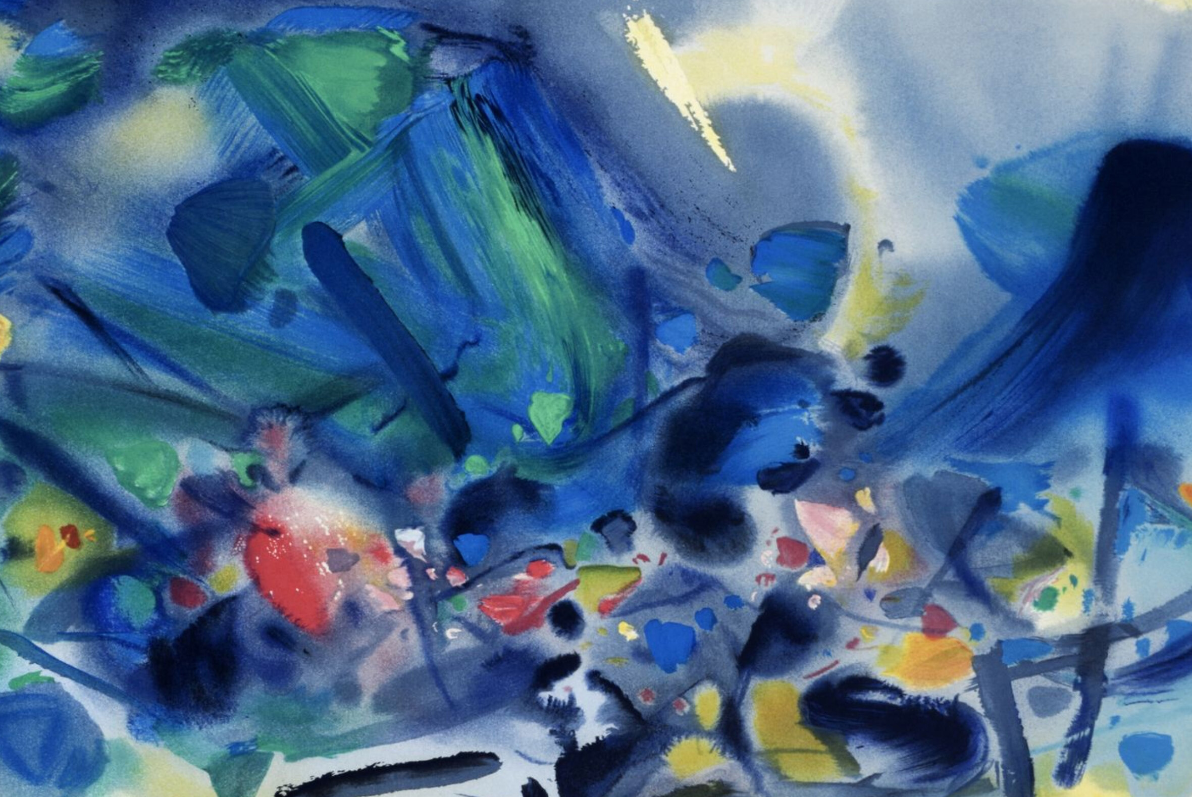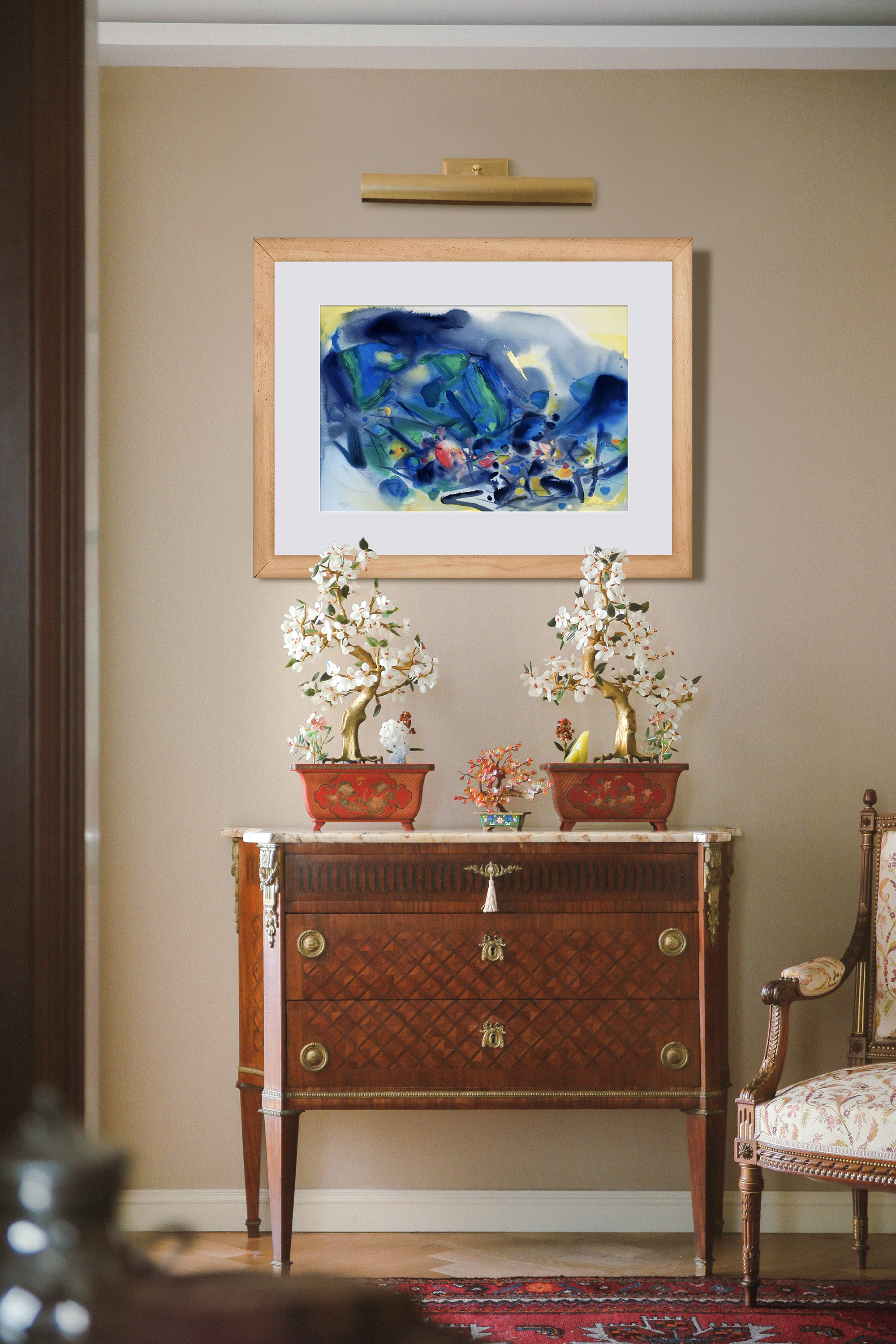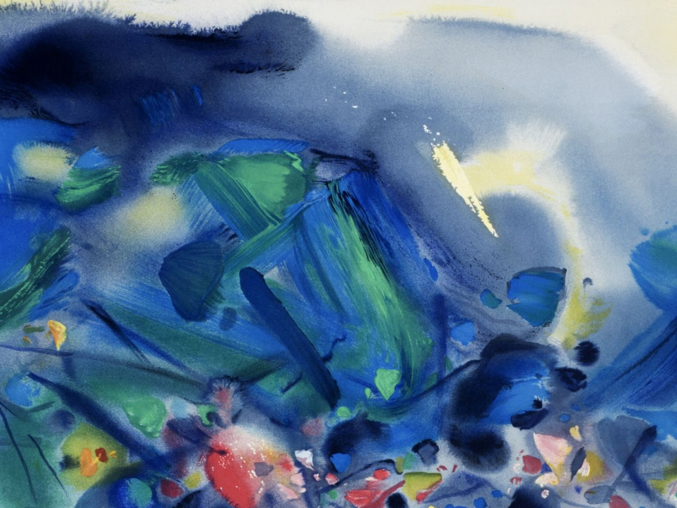 独角鹿西洋古董20世纪后期法国巴黎Frédéric Possot出版艺术大师朱德群亲签限量彩色石版画「构图五(Composition V)」