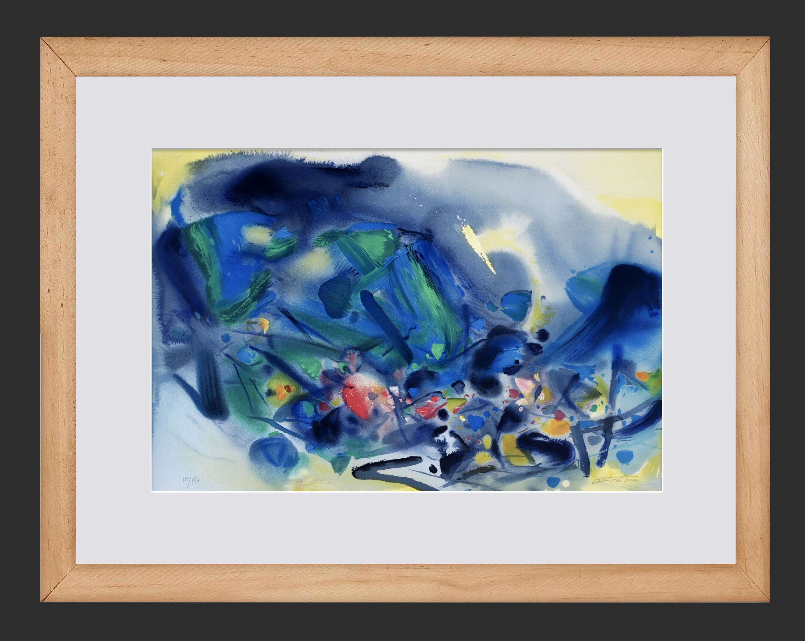 20世纪后期法国巴黎Frédéric Possot出版艺术大师朱德群亲签限量彩色石版画「构图五(Composition V)」