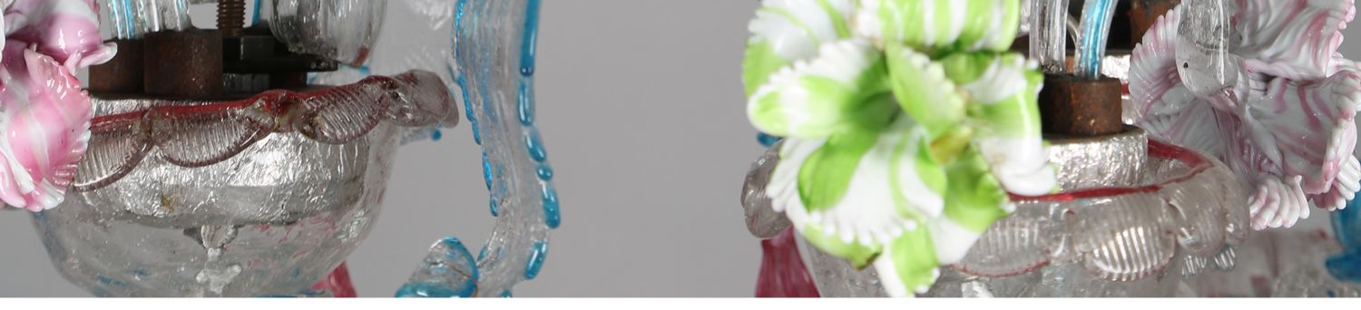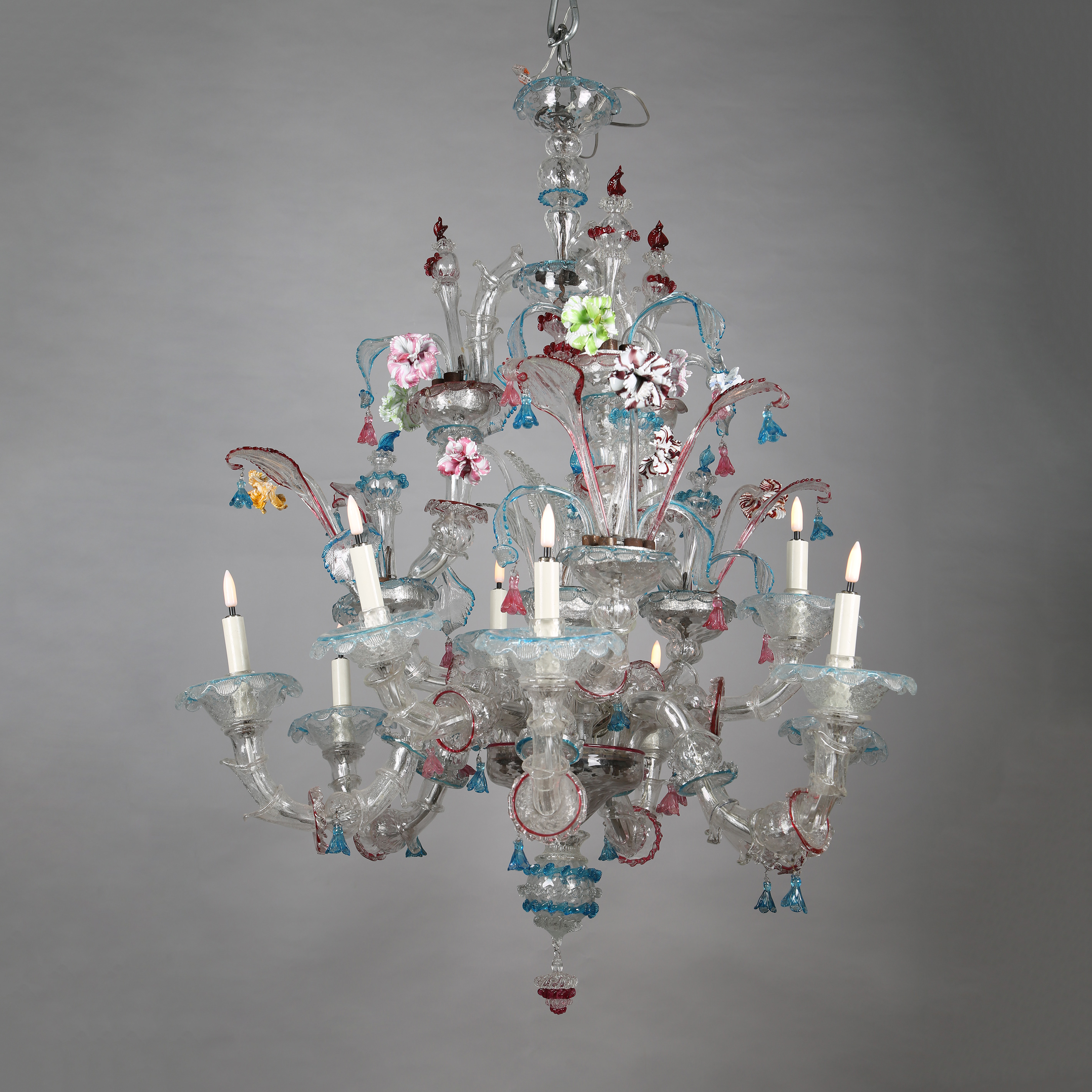 独角鹿西洋古董穆拉诺水晶工坊花叶彩色玻璃九枝头烛台式枝形吊灯