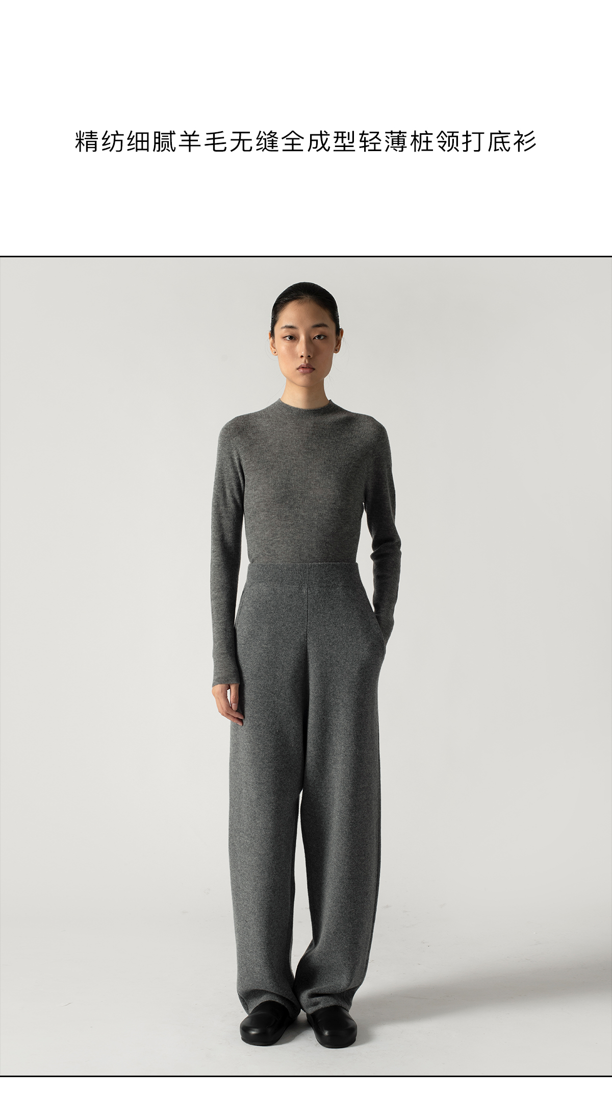 322工房无缝全成型绵羊毛半高领打底衫2022年秋冬纯色针织套头衫