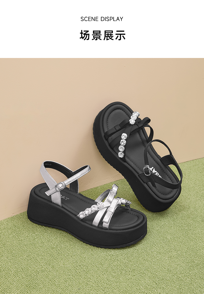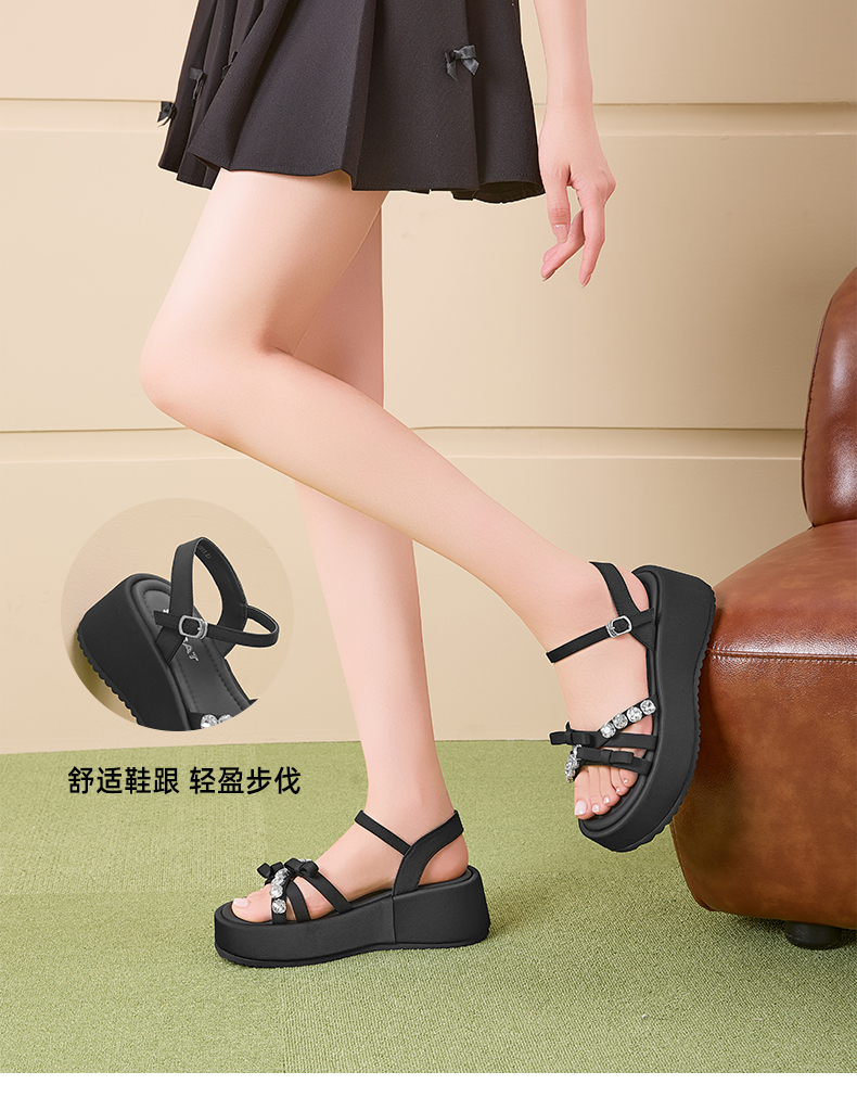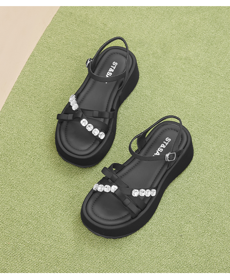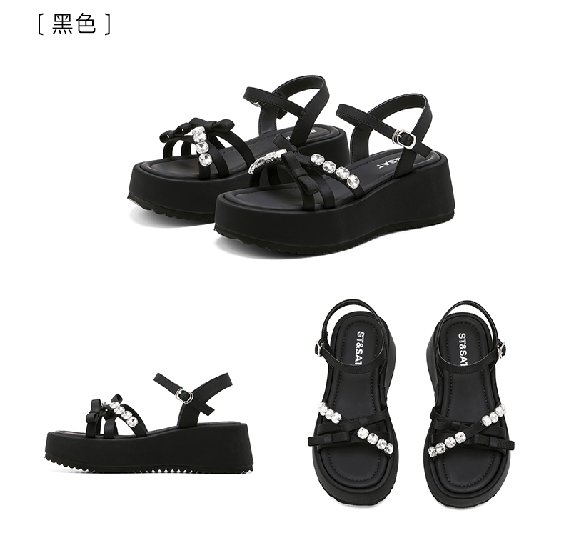 星期六仙女风水钻蝴蝶结一字带沙滩凉鞋SSD2115W4X
