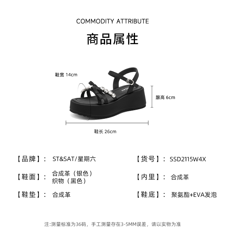 星期六26春新款精致珠花厚底渔夫鞋SSE1111098