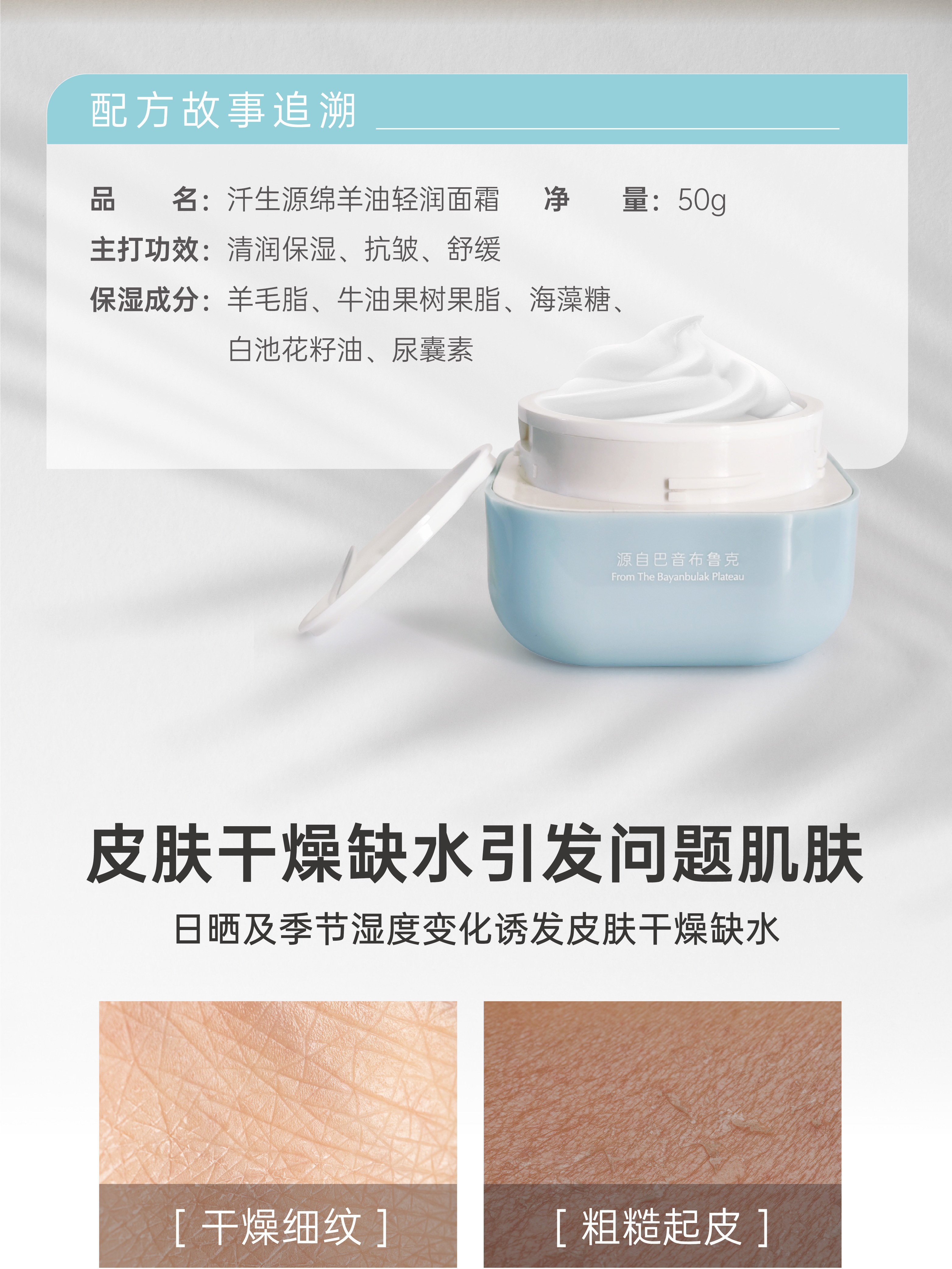 汘生源绵羊油轻润面霜保湿滋润深层补水