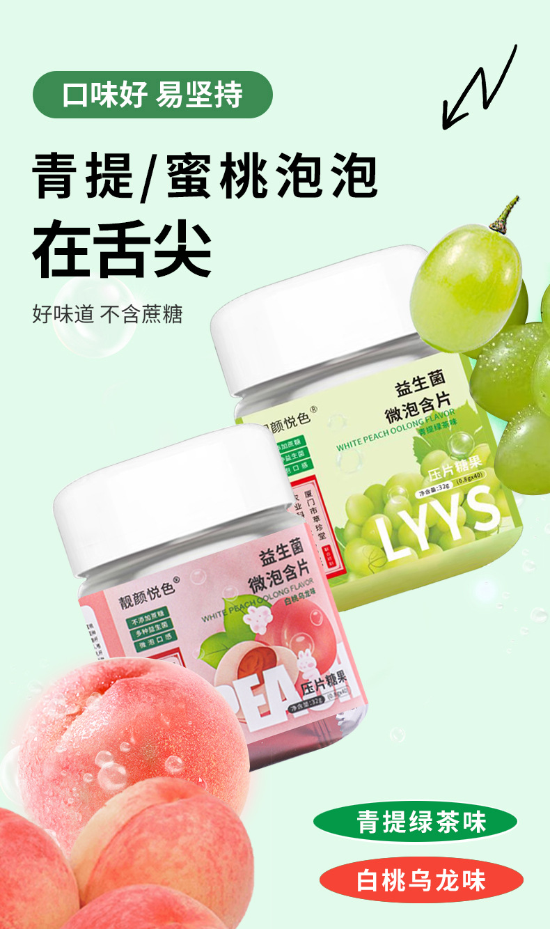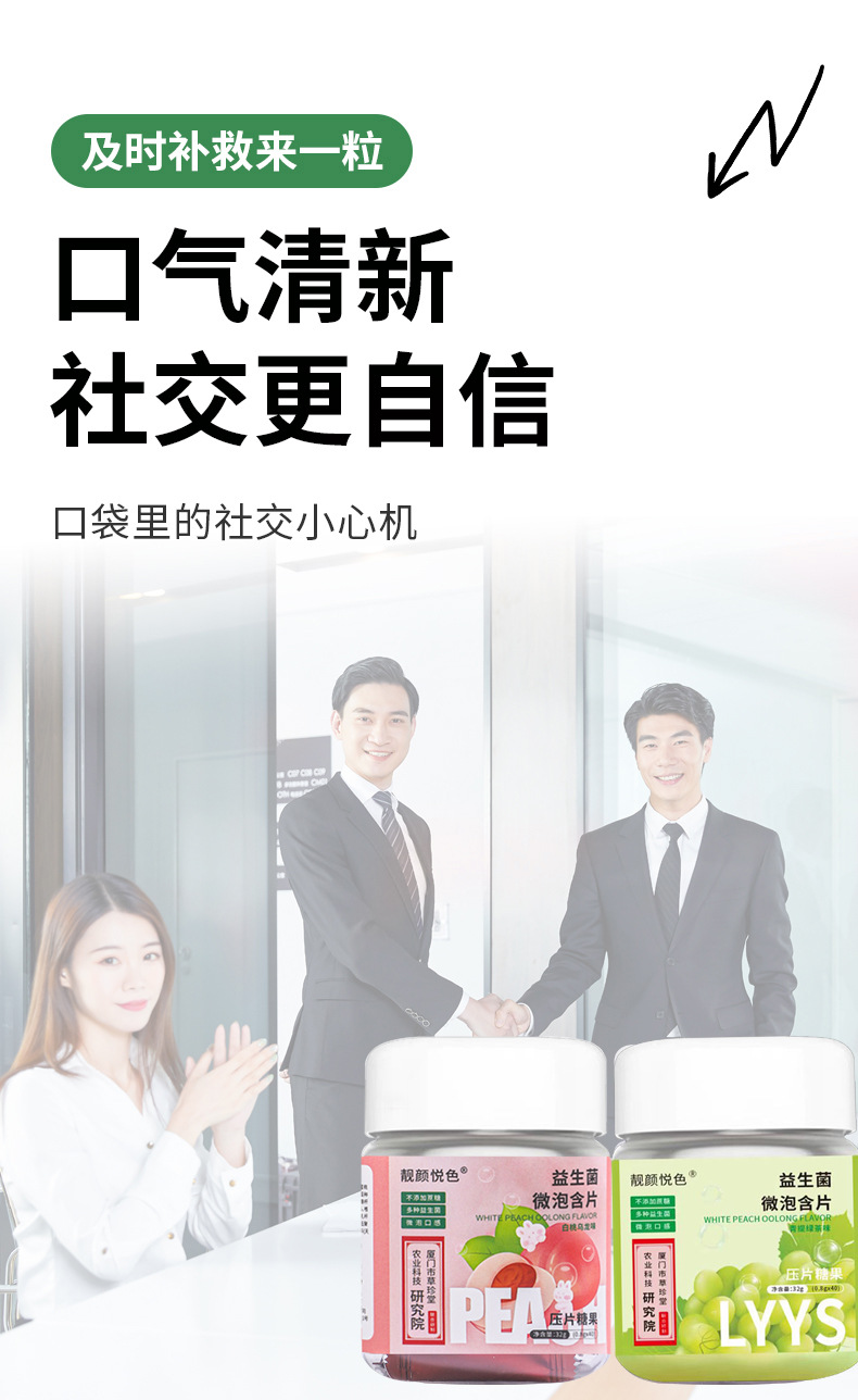 【清新常伴❗️益生菌微泡含片】一片清新“还你底气” 口气清新,社交更自信,约会神器口臭留香,白桃青提味益生菌微含片,清新益生菌微泡含片L