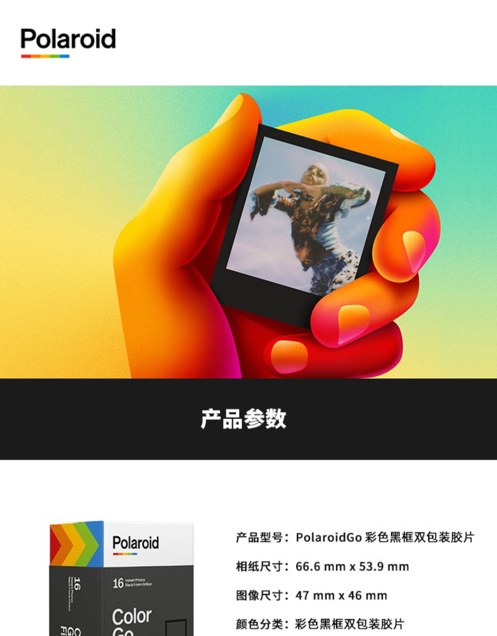 Polaroid/宝丽来 拍立得相纸 GO 16张 黑框【仅限PolaroidGo相机可用】