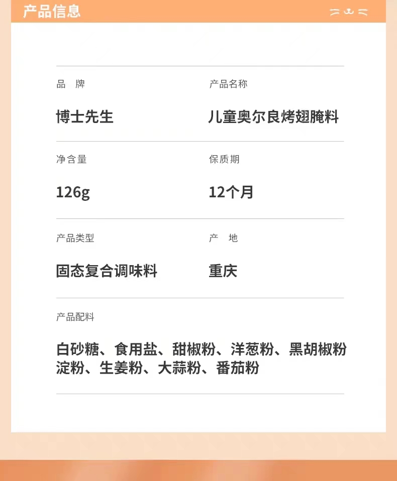 博士先生 儿童新奥尔良烤翅腌料 126g