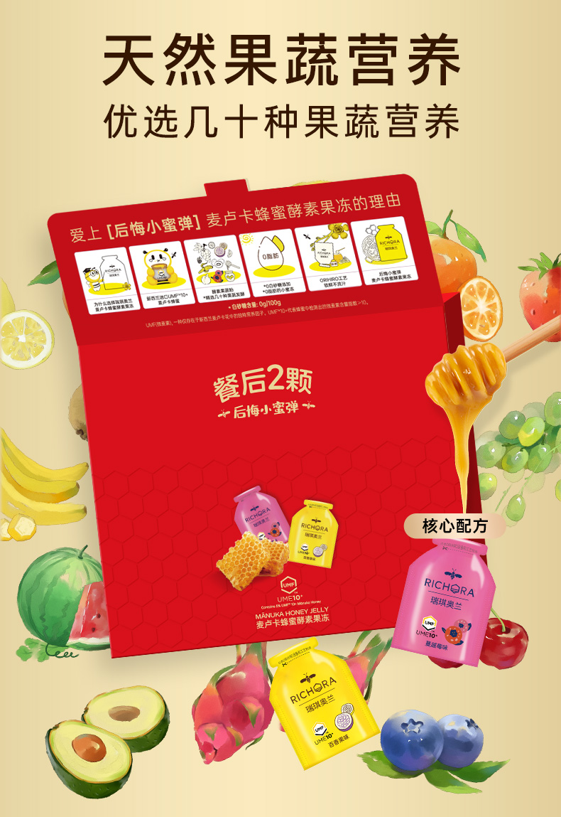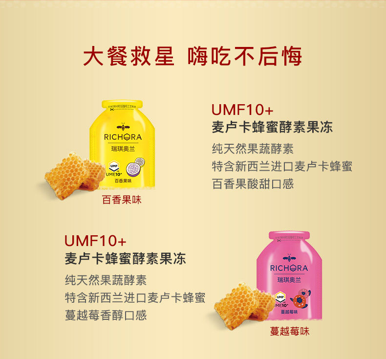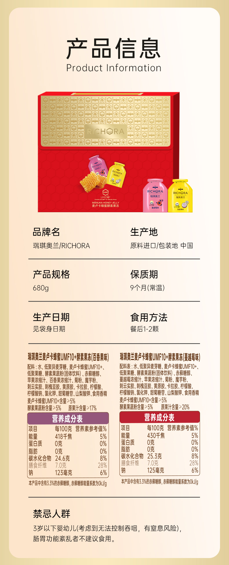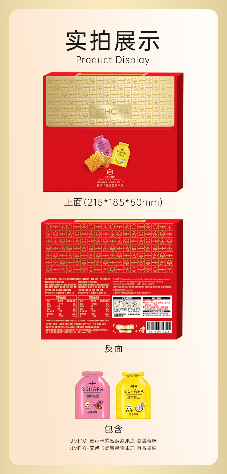 瑞琪奥兰麦卢卡蜂蜜UMF10+蜂蜜酵素果冻(百香果味&蔓越莓味)
