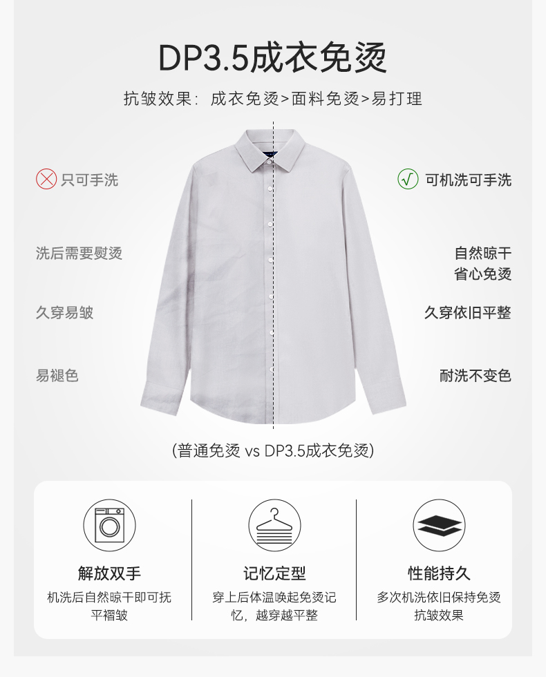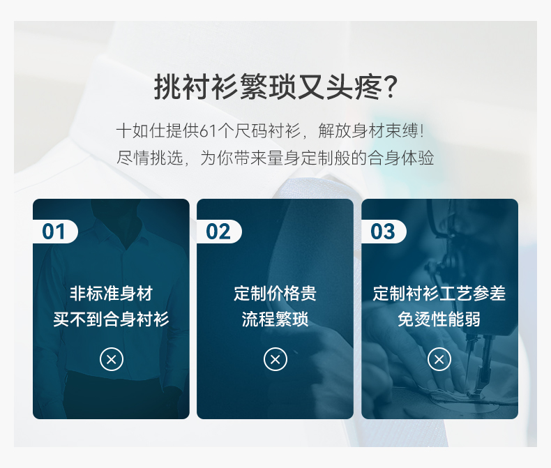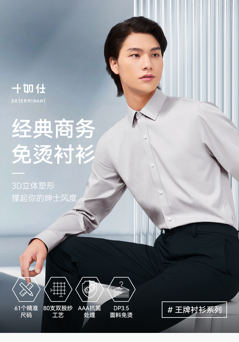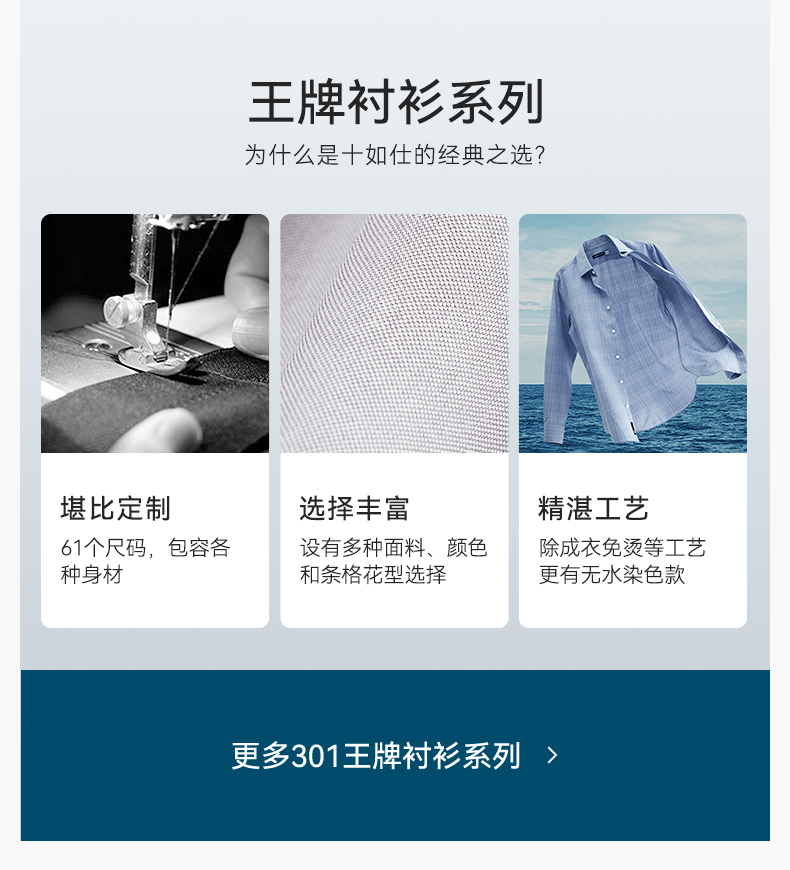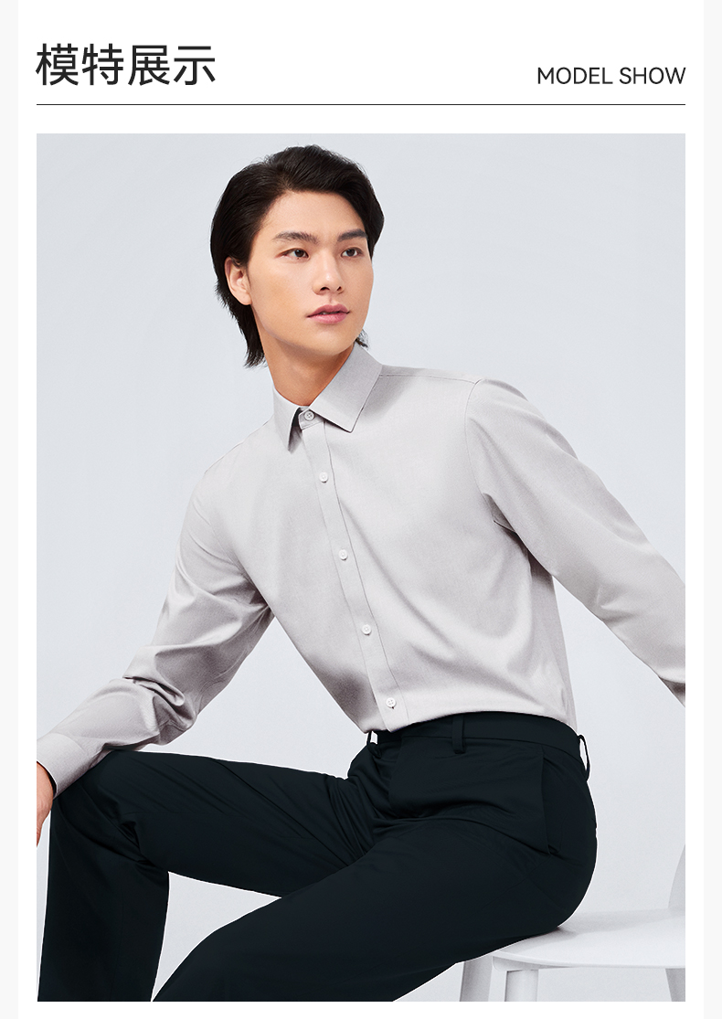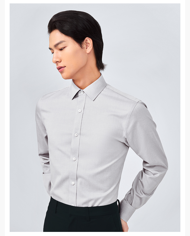 十如仕301微定制免烫牛津纺纯色商务休闲长袖衬衫