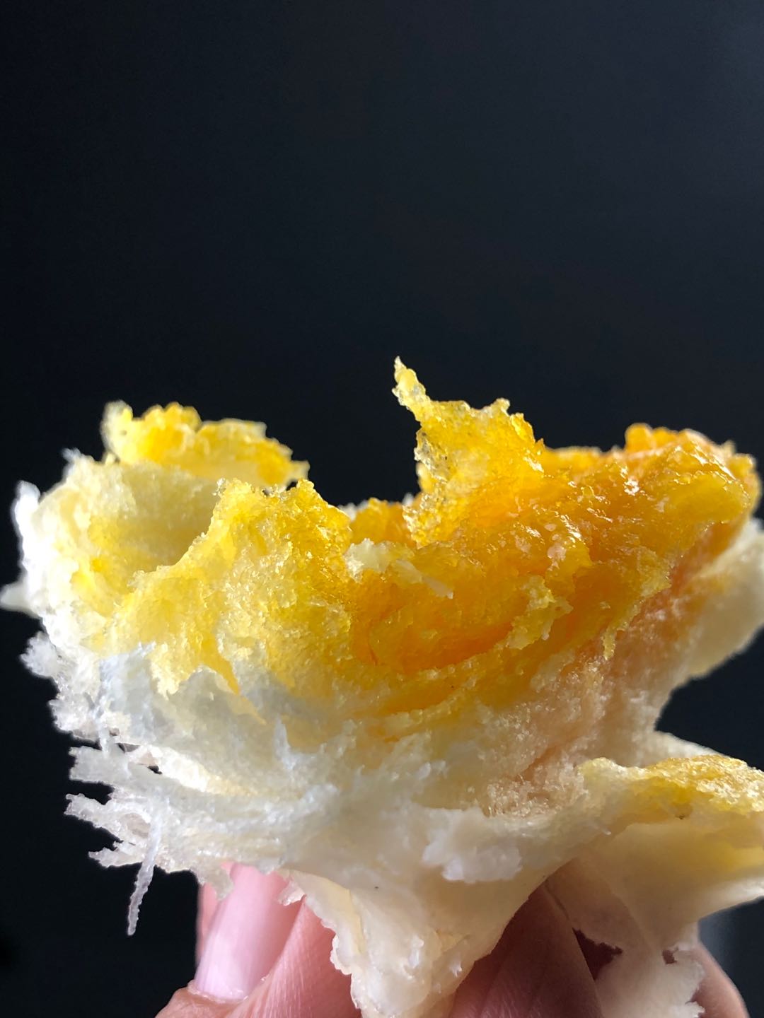制作的时候需要经过发酵、揉面、擀面,抹猪油等多道工序才能成为酥皮,外形层层叠叠,吃起来轻盈蓬松。
