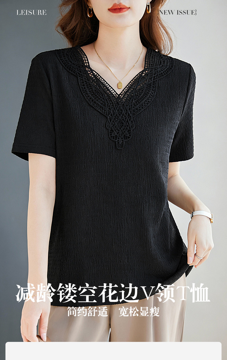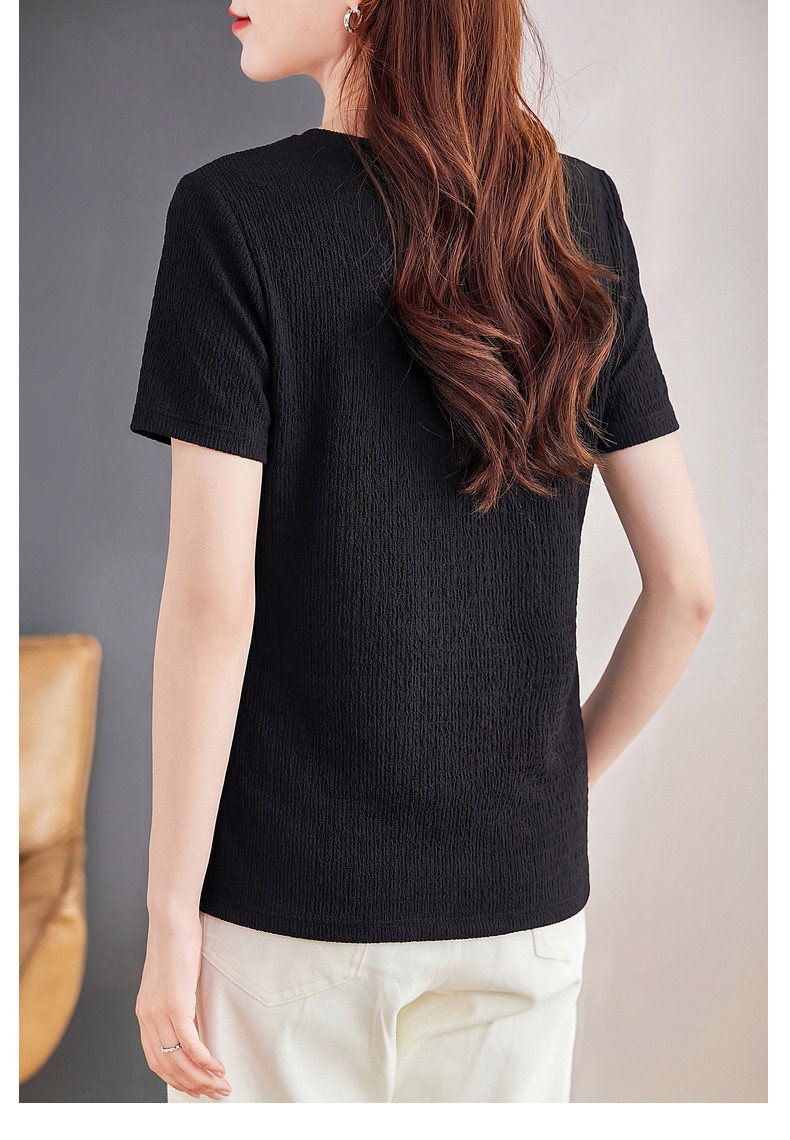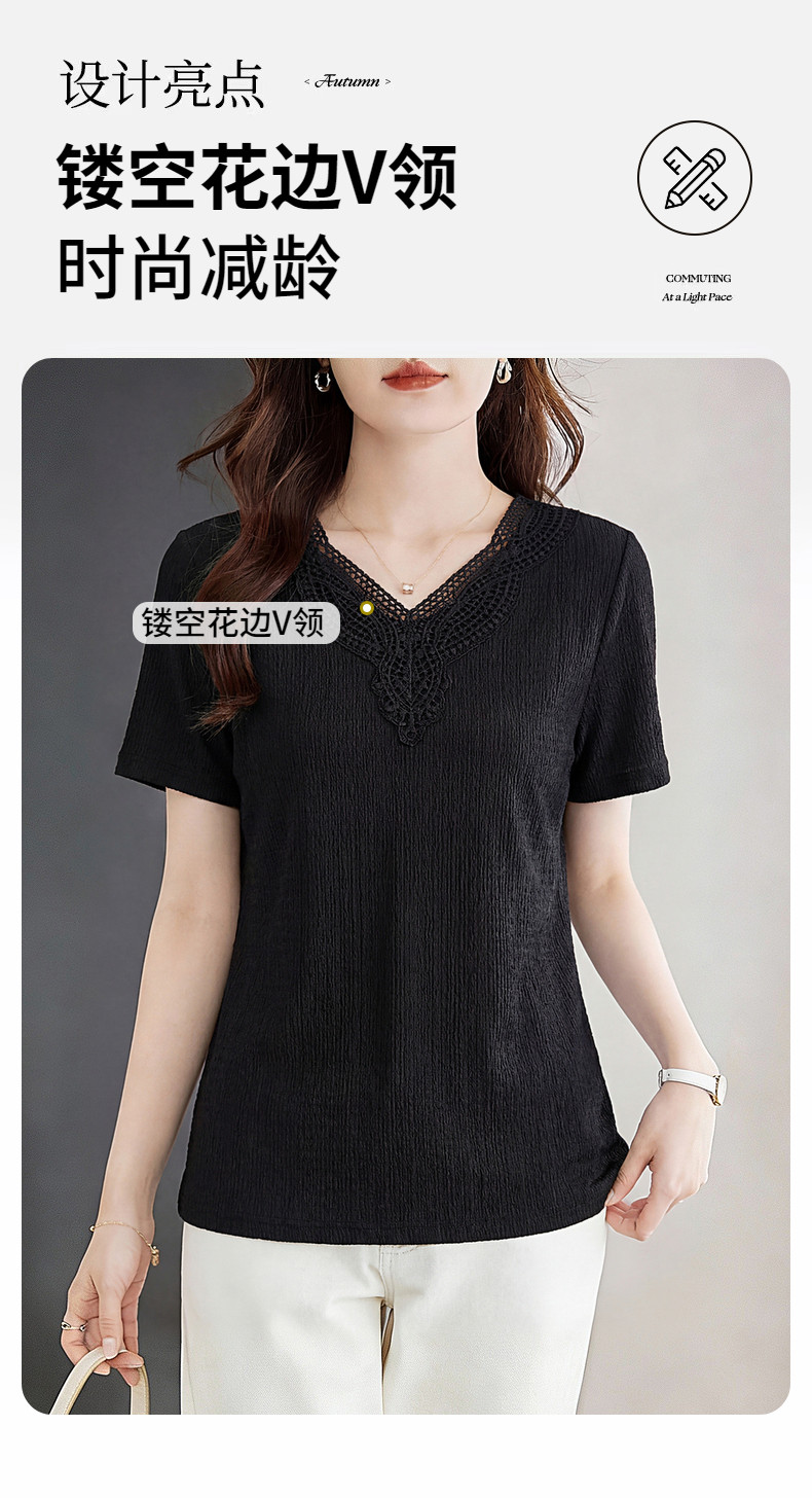 黑色v领短袖t恤女2026新款夏季爆款衣服女装正肩简约上衣半袖体恤