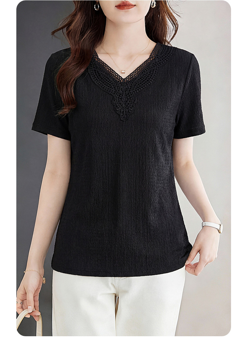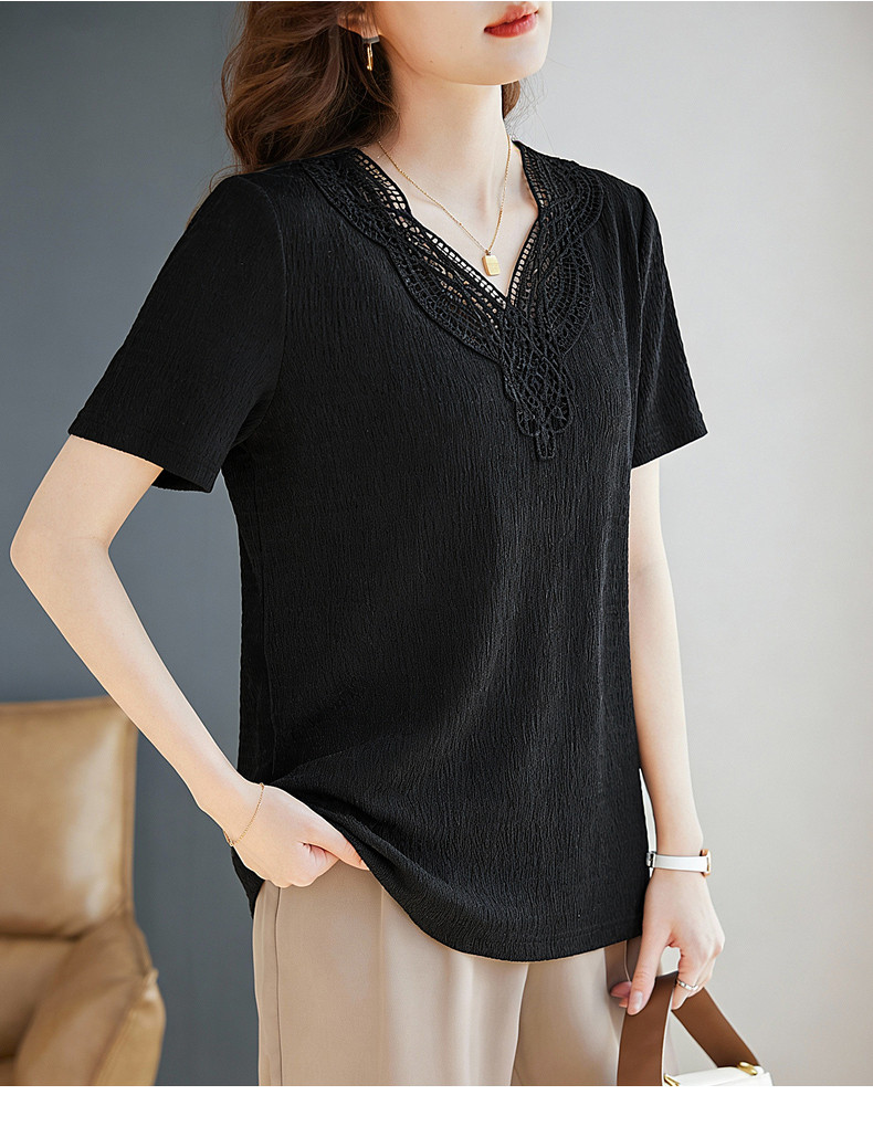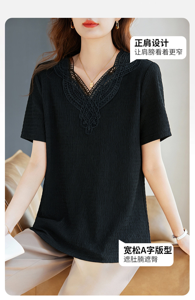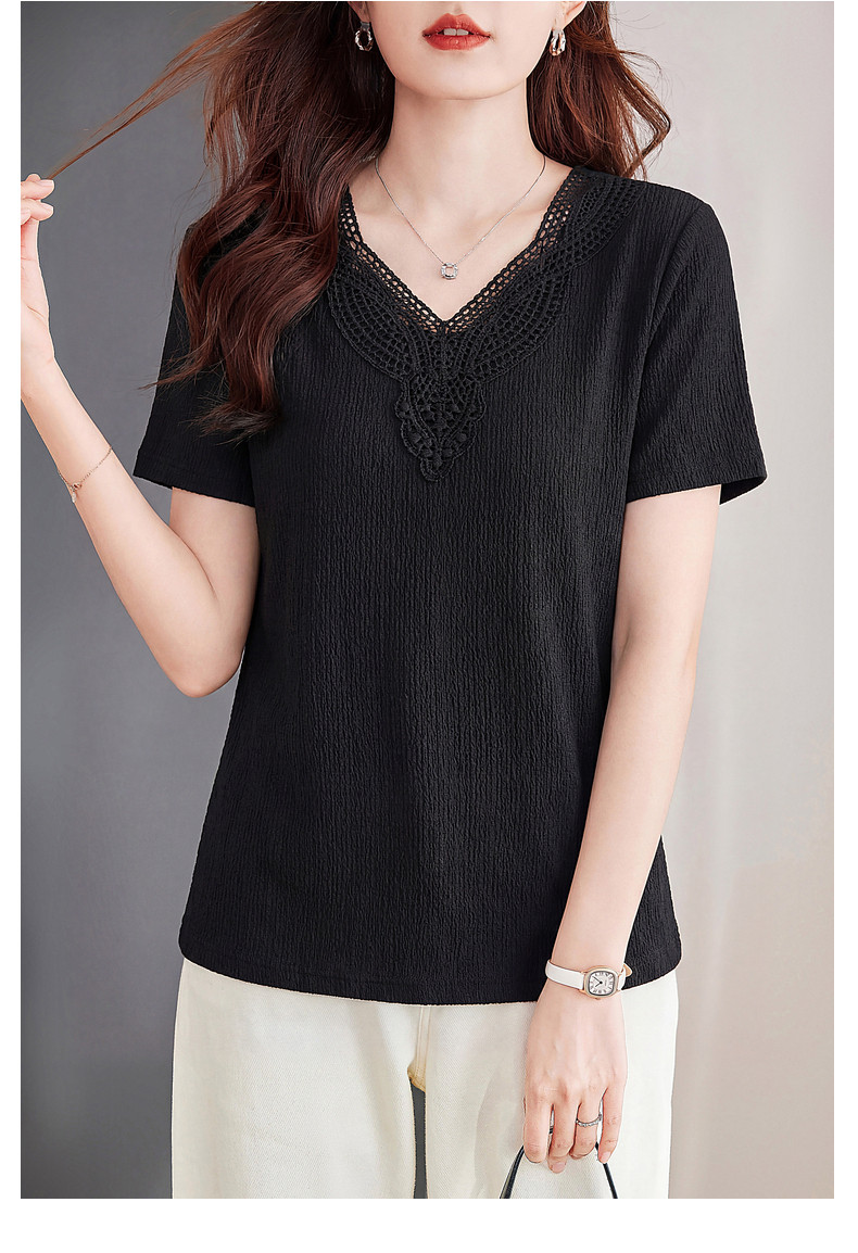 黑色v领短袖t恤女2026新款夏季爆款衣服女装正肩简约上衣半袖体恤