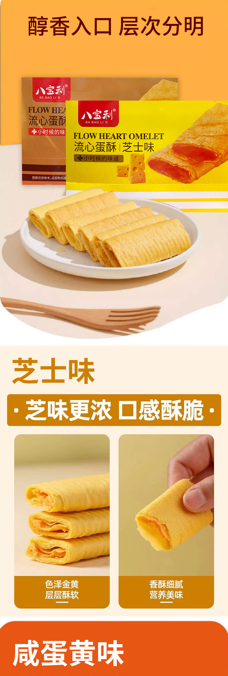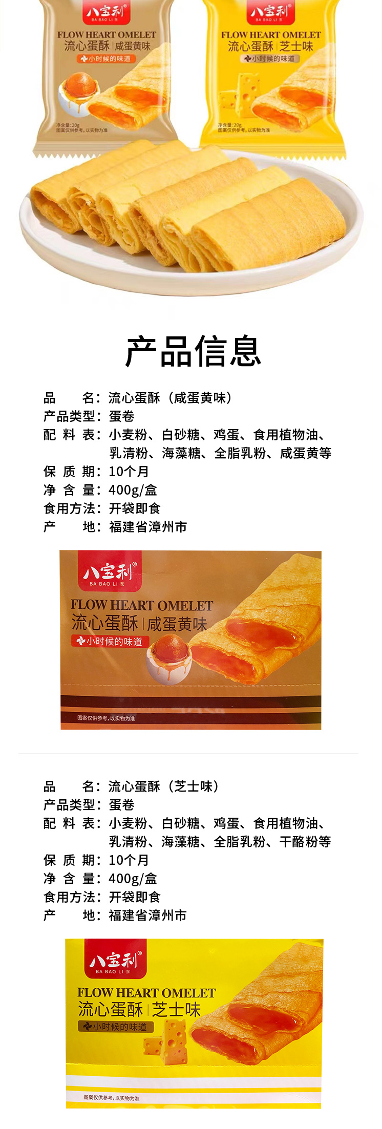 八宝利咸蛋黄味|芝士味流心蛋酥400g